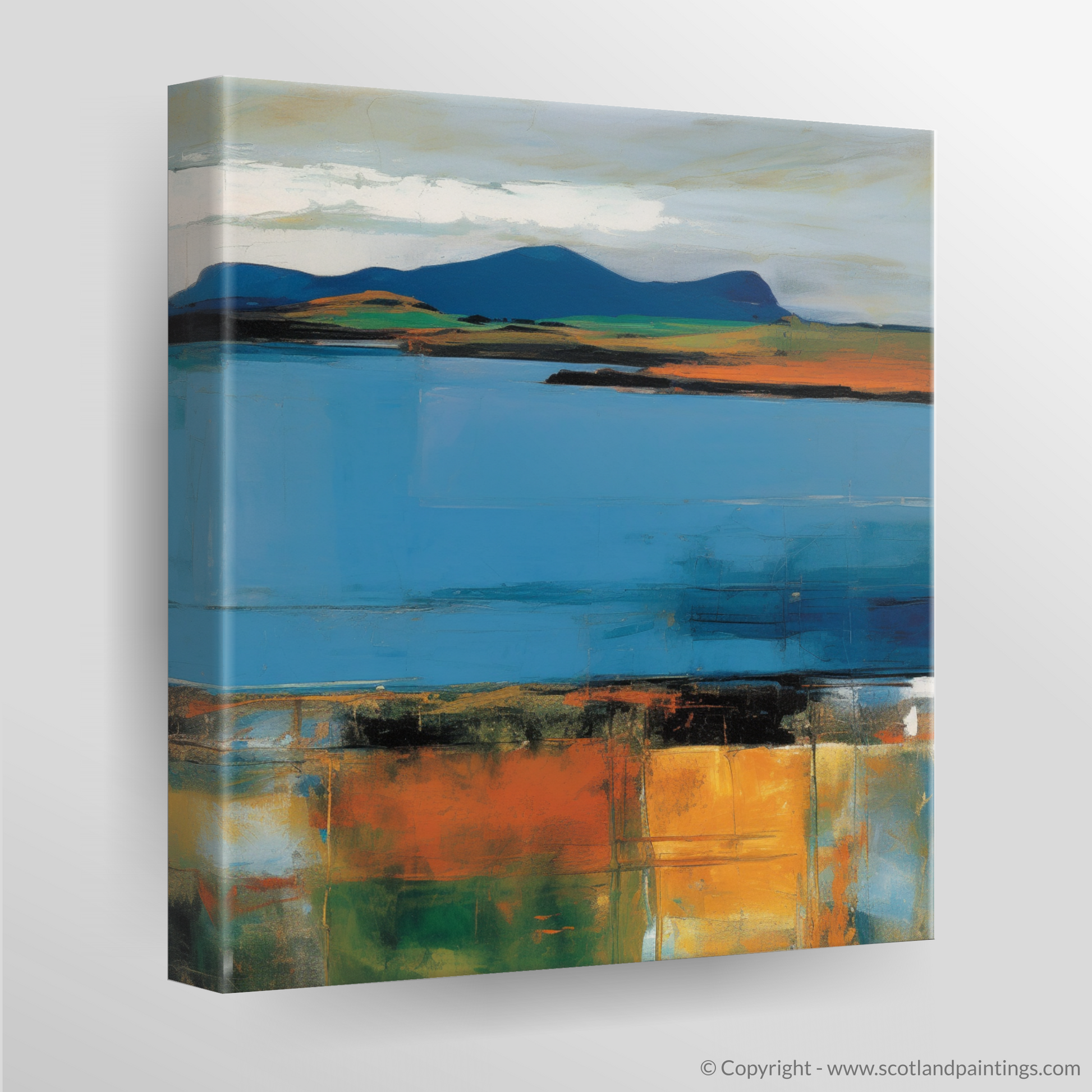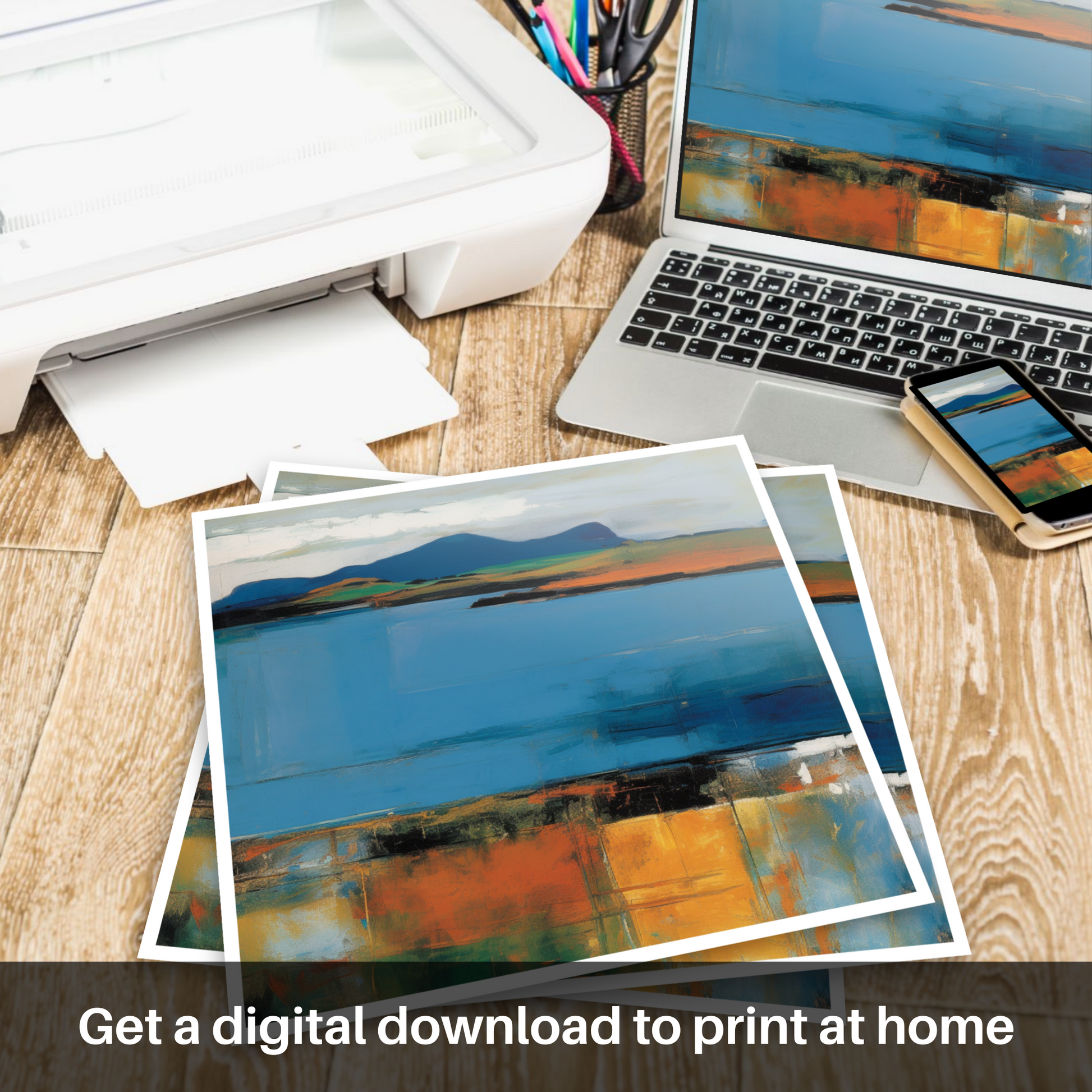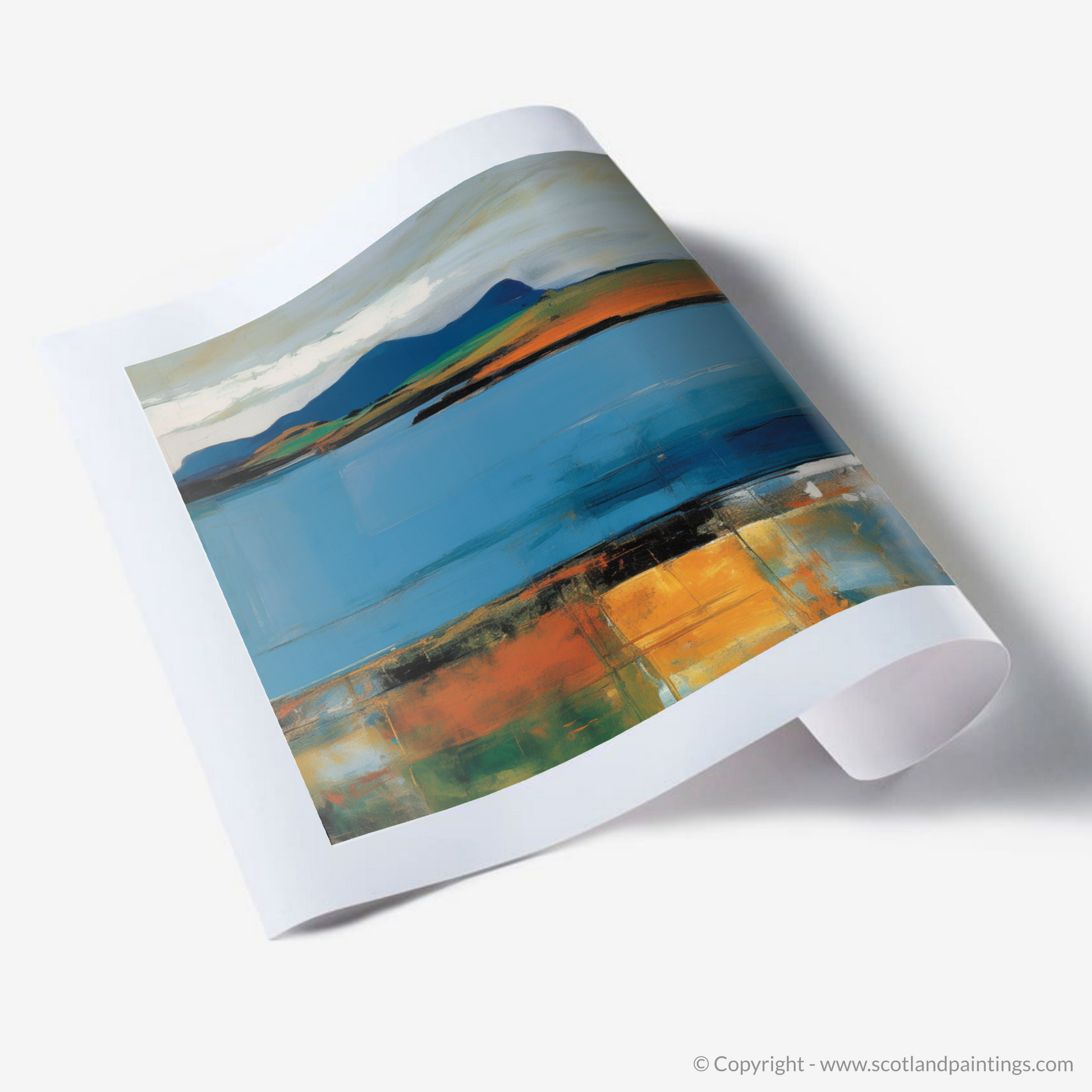 Steeped in the hues of a serene Scottish seascape, this evocative print captures the ethereal beauty of Castle Stalker Bay, Argyll and Bute, through the lens of Abstract Impressionism. The artwork transports viewers to the Western Scottish coastline, where land, sky, and water converge in a captivating dance of colour and light.