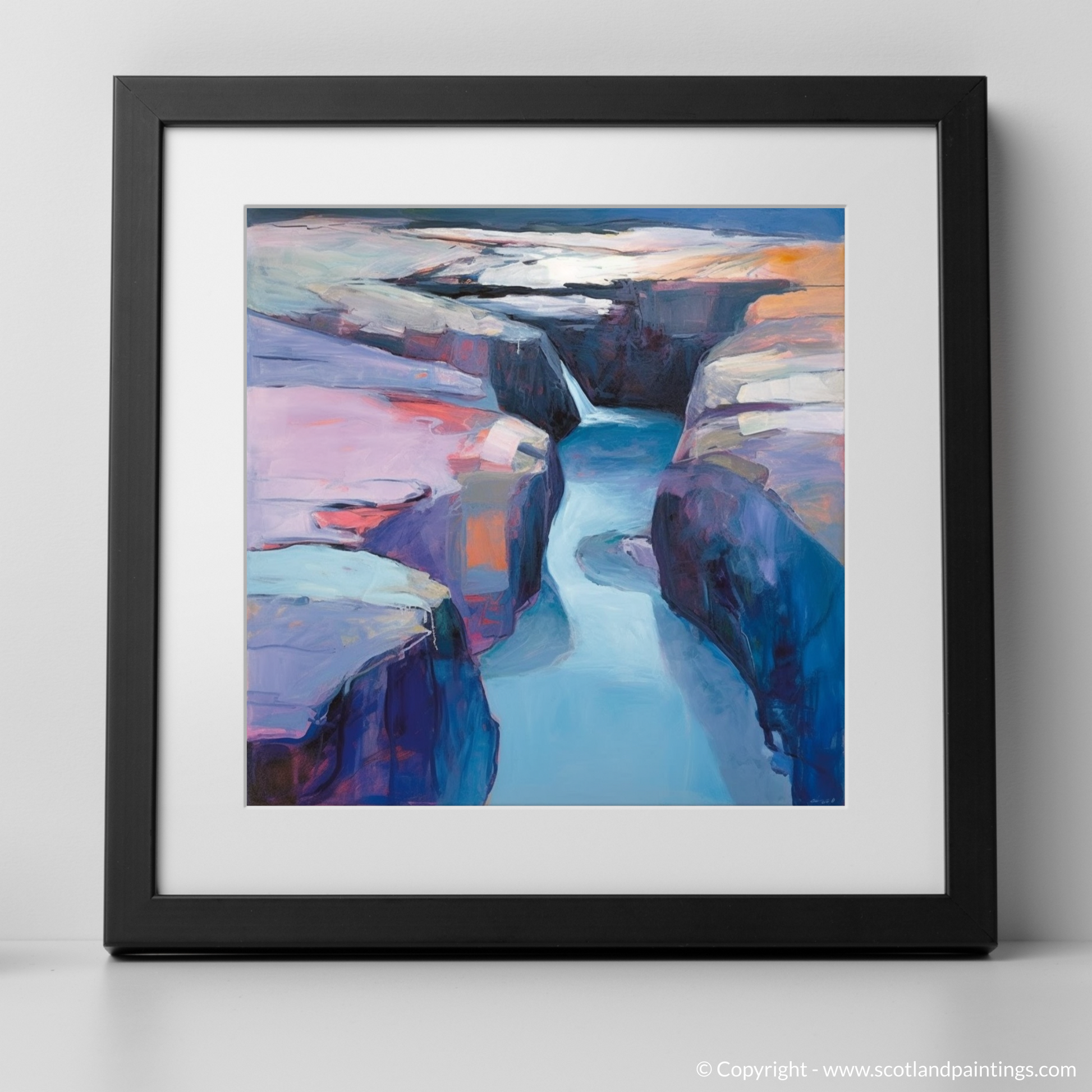 This print captures a fleeting moment in nature where light and landscape bend and blur, inviting the viewer to explore a Scottish Cove through the eyes of abstraction. The flowing composition draws the eye inward, suggesting the hidden secrets and stories that lie within the clefts of the highland's geological tapestry.
