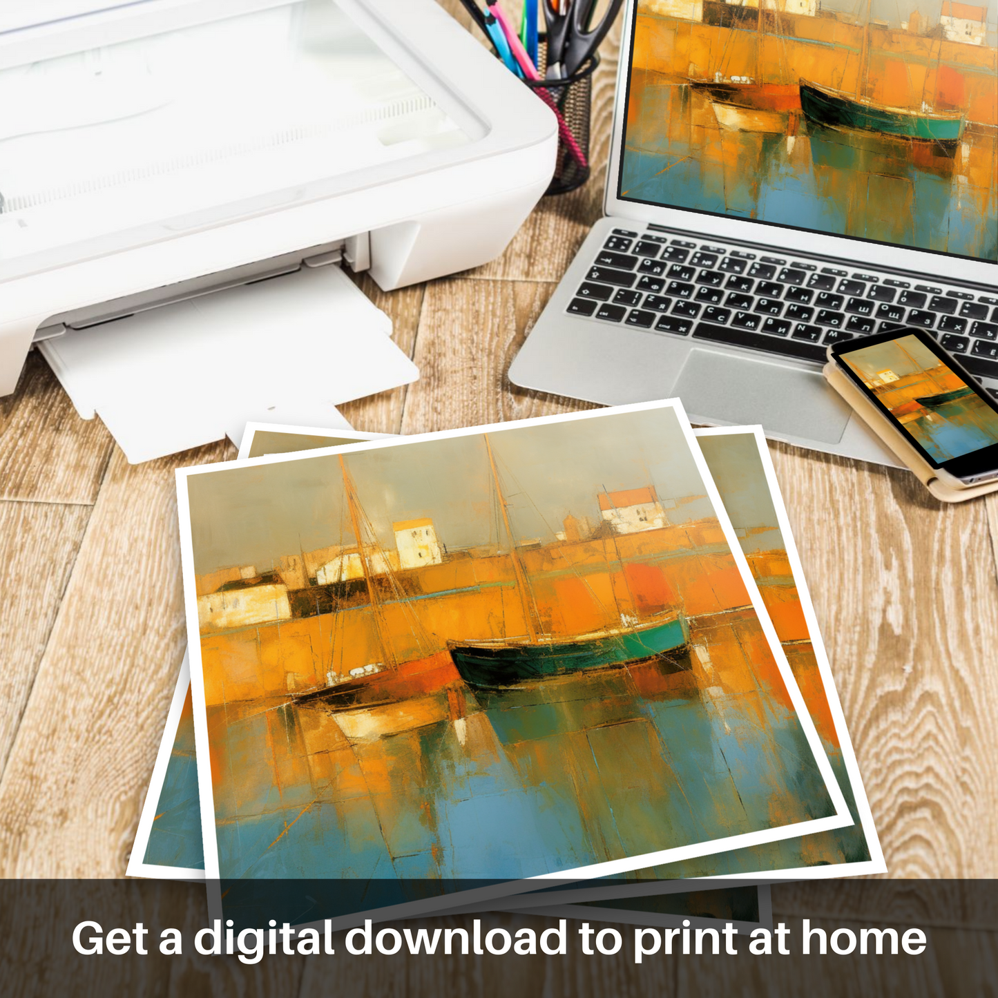 Golden Hour at Port Ellen Harbour: An Abstract Impressionist Homage to Scottish Coastal Charm