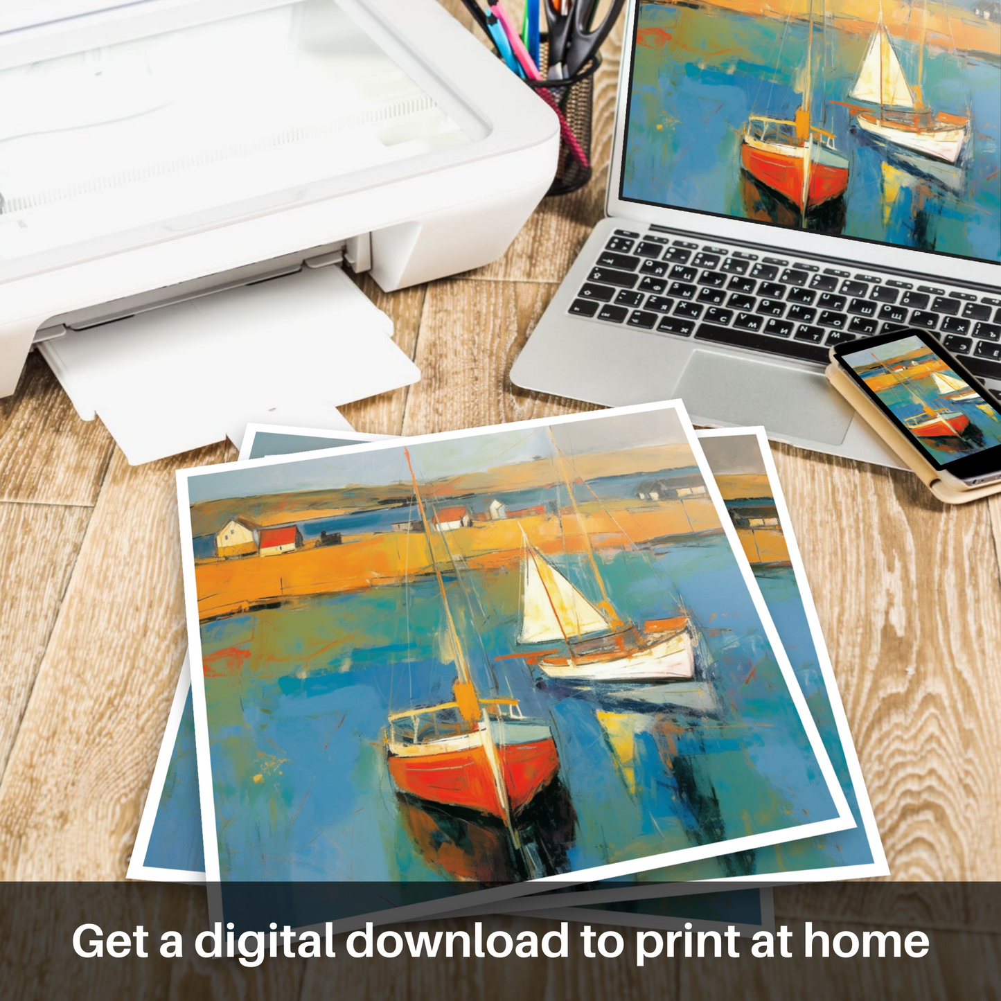 The 'Scottish Harbours' collection proudly presents this print as a celebration of Scotland's coastal beauty and as a homage to the free-spirited artistry of Abstract Impressionism. Add a touch of Scottish elegance and a whisper of sea-salted air to your surroundings with this mesmerising print.