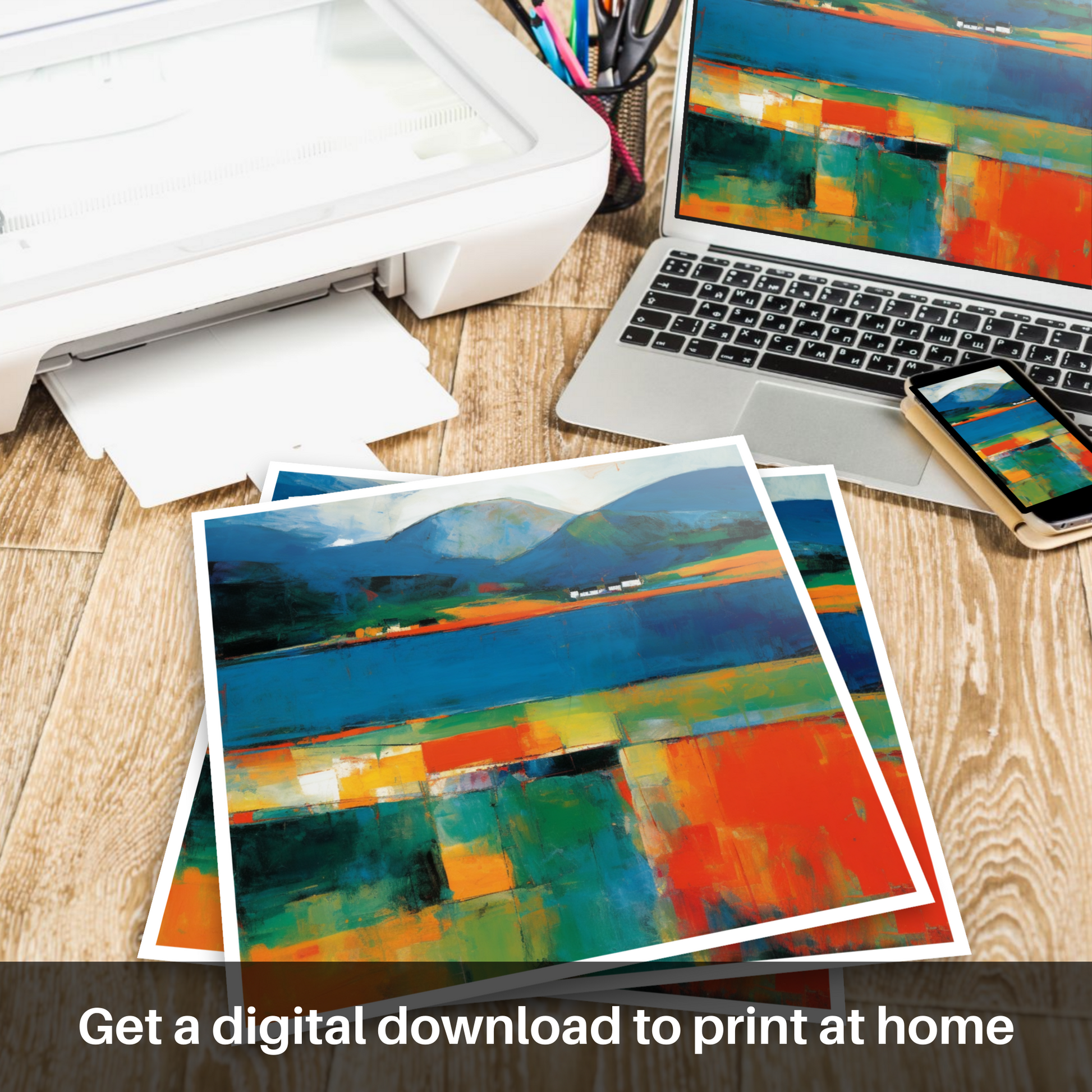 Through skilful abstraction, this piece strays from literal representation, inviting the imagination to wander and interpret the scene personally. The print offers more than mere decoration; it is an immersive experience that captures the spirit of the Scottish loch, transforming it into a stunning visual feast that will invigorate any space, enticing conversation and contemplation alike.