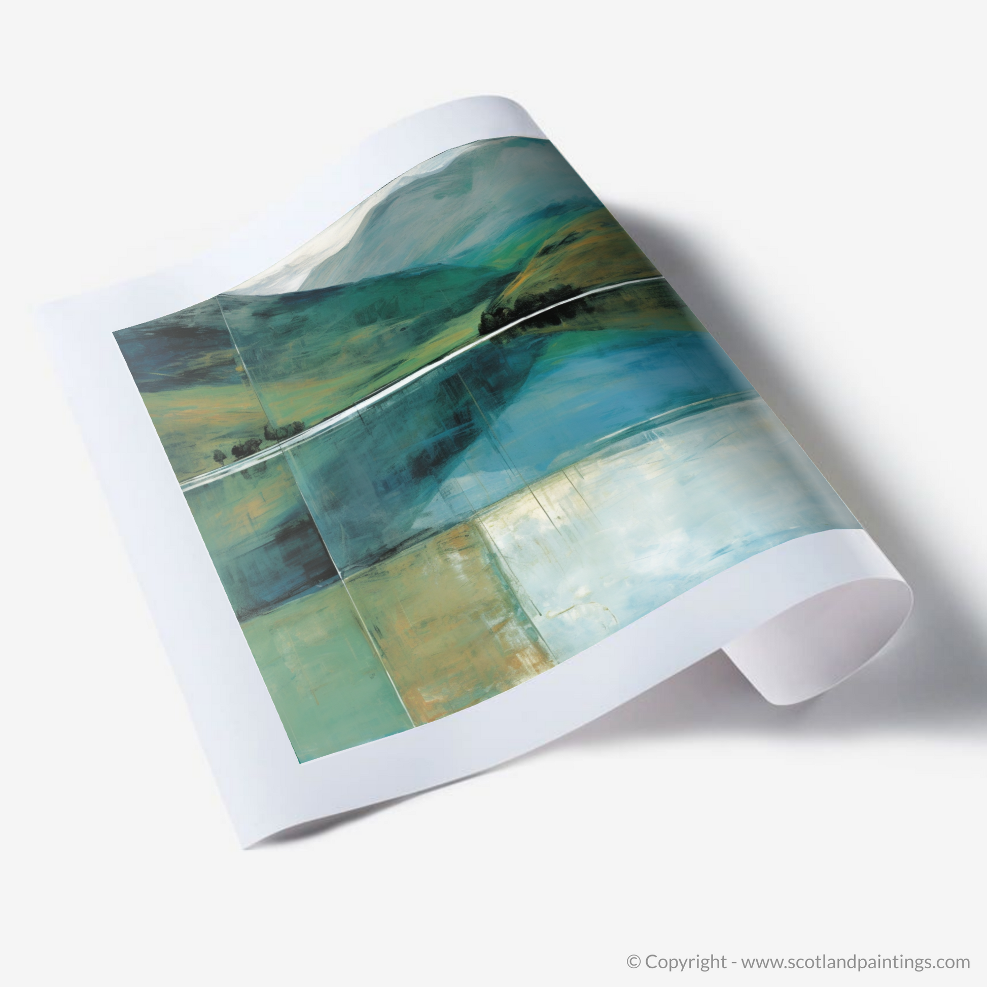Embark upon an immersive journey into the sublime Scottish Highlands with this exquisite print, a tribute to the serene majesty of Loch Shiel. The deep, mystical waters and rolling hillsides are rendered in sweeping abstractions, capturing an essence of wilderness that speaks more to the soul than the simple visual cortex.