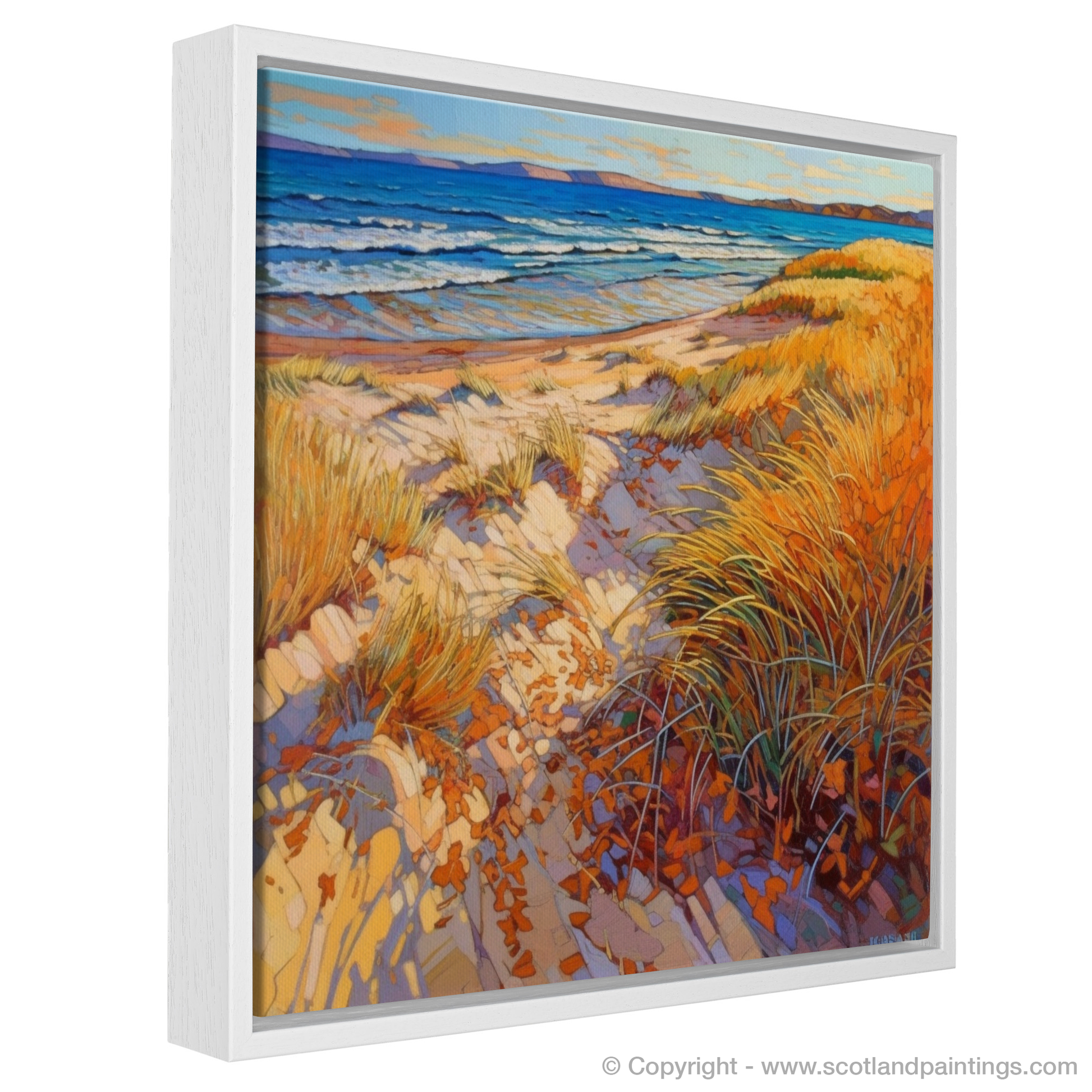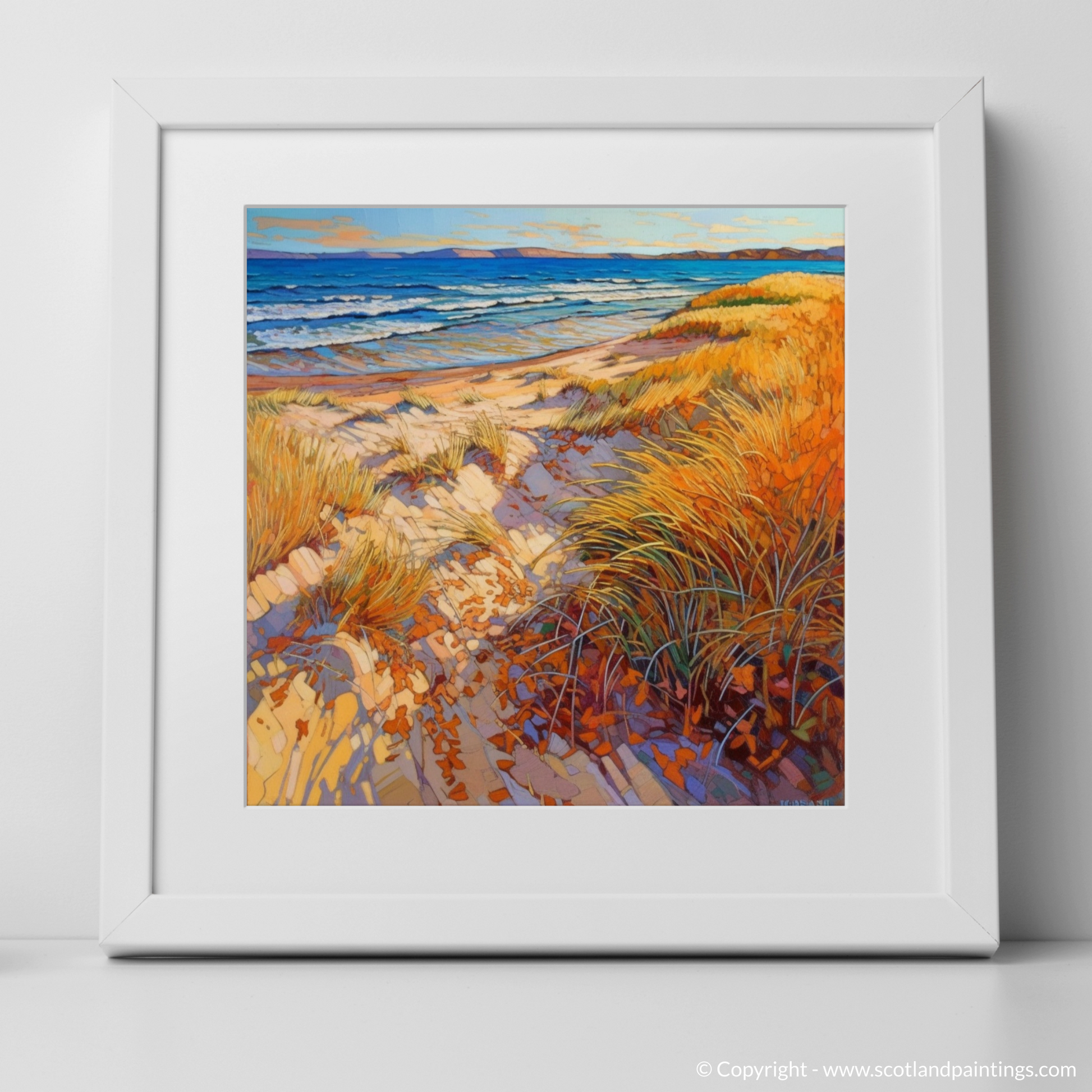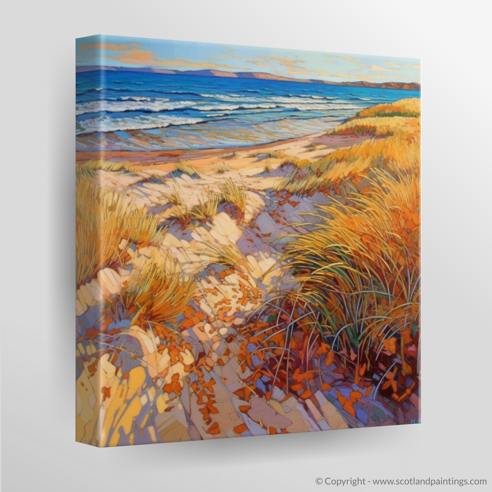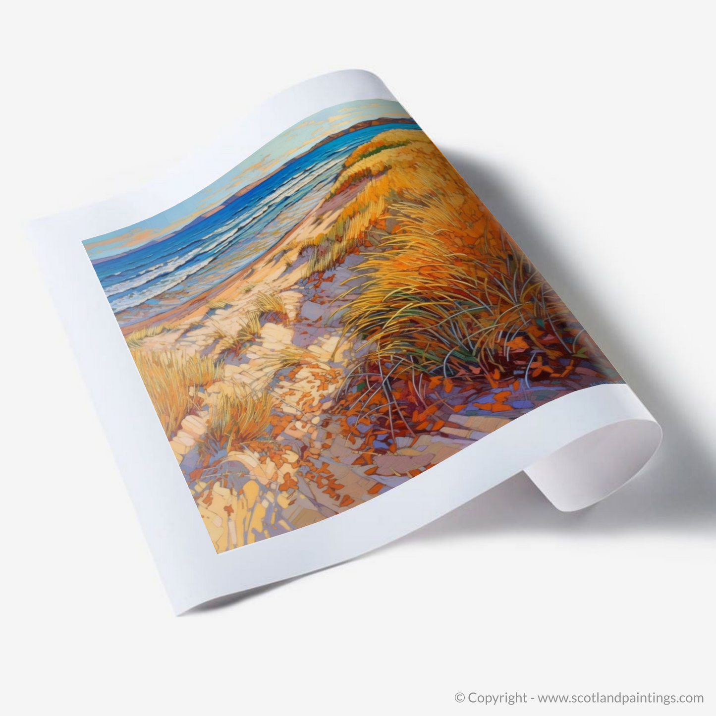 Captivating the viewer with a colourful tapestry of nature's splendour, this piece inspired by Longniddry Beach in East Lothian is a celebration of the Scottish coastline's untamed beauty. Through a dynamic play of colour and texture that typifies Modern Impressionism, the artwork invites onlookers into a serene, windswept scene shrouded in the golden light of a declining sun.
