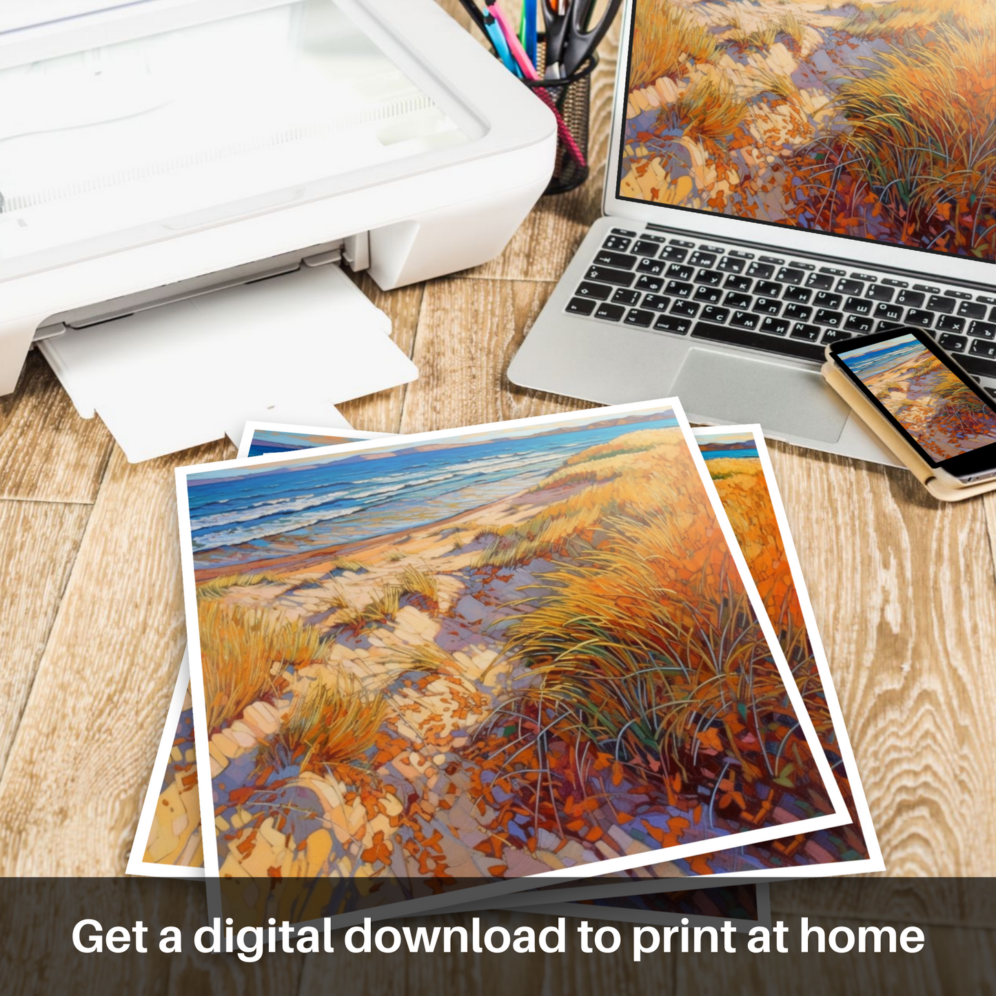 This art print evokes the refreshing breeze and timeless enchantment of Longniddry's sandy expanses, making it a perfect addition to any space that seeks to bring the essence of the Scottish beaches into the home. Whether displayed in a living area or a private escape, it serves as a window to the restorative power of Scotland's natural coastline, promising a sense of serenity and an appreciation for the abiding dialogue between light, land, and sea.