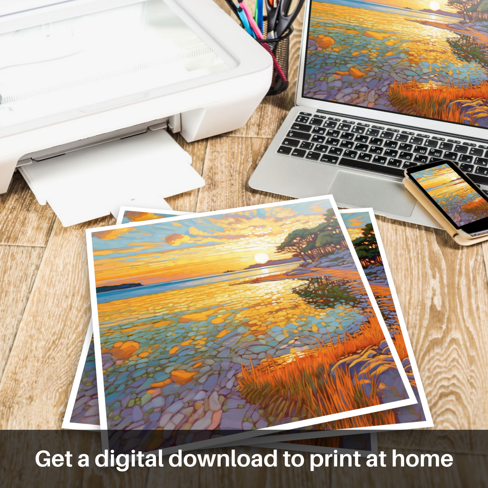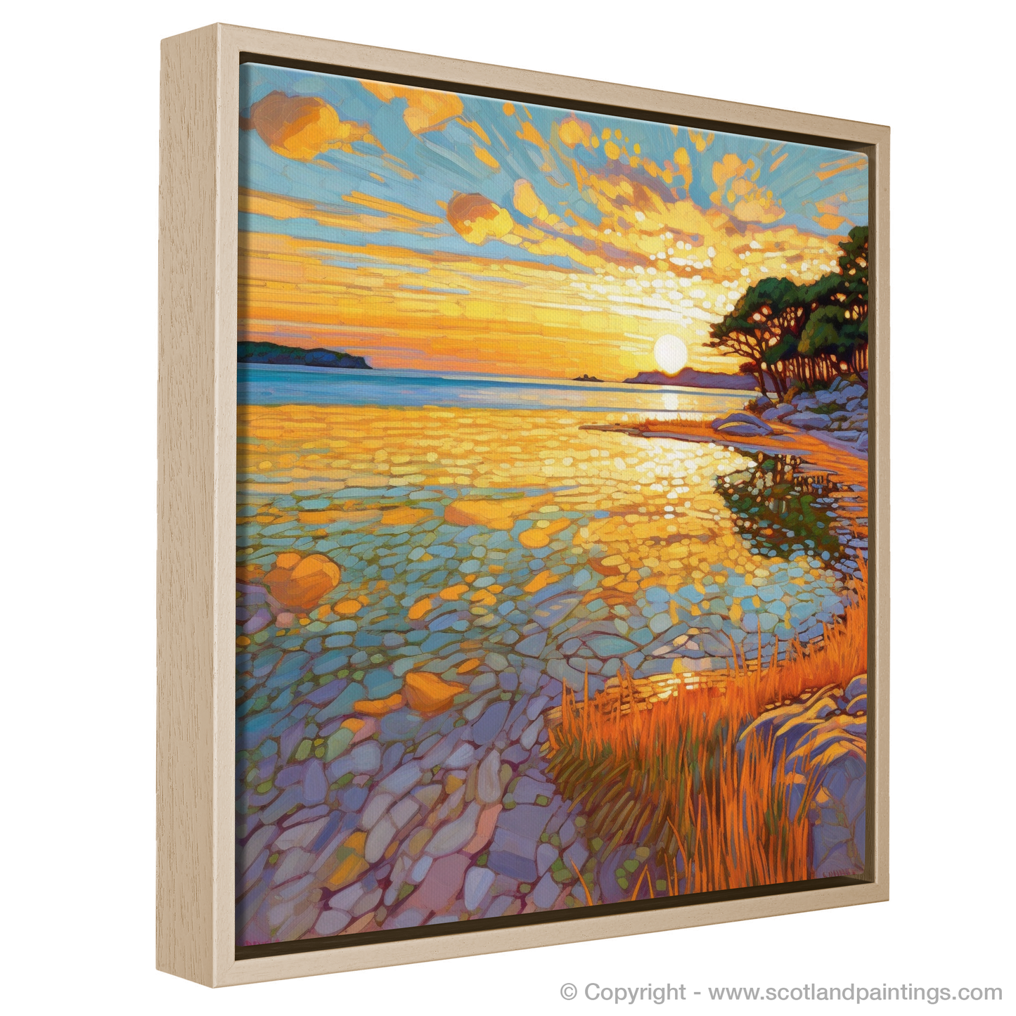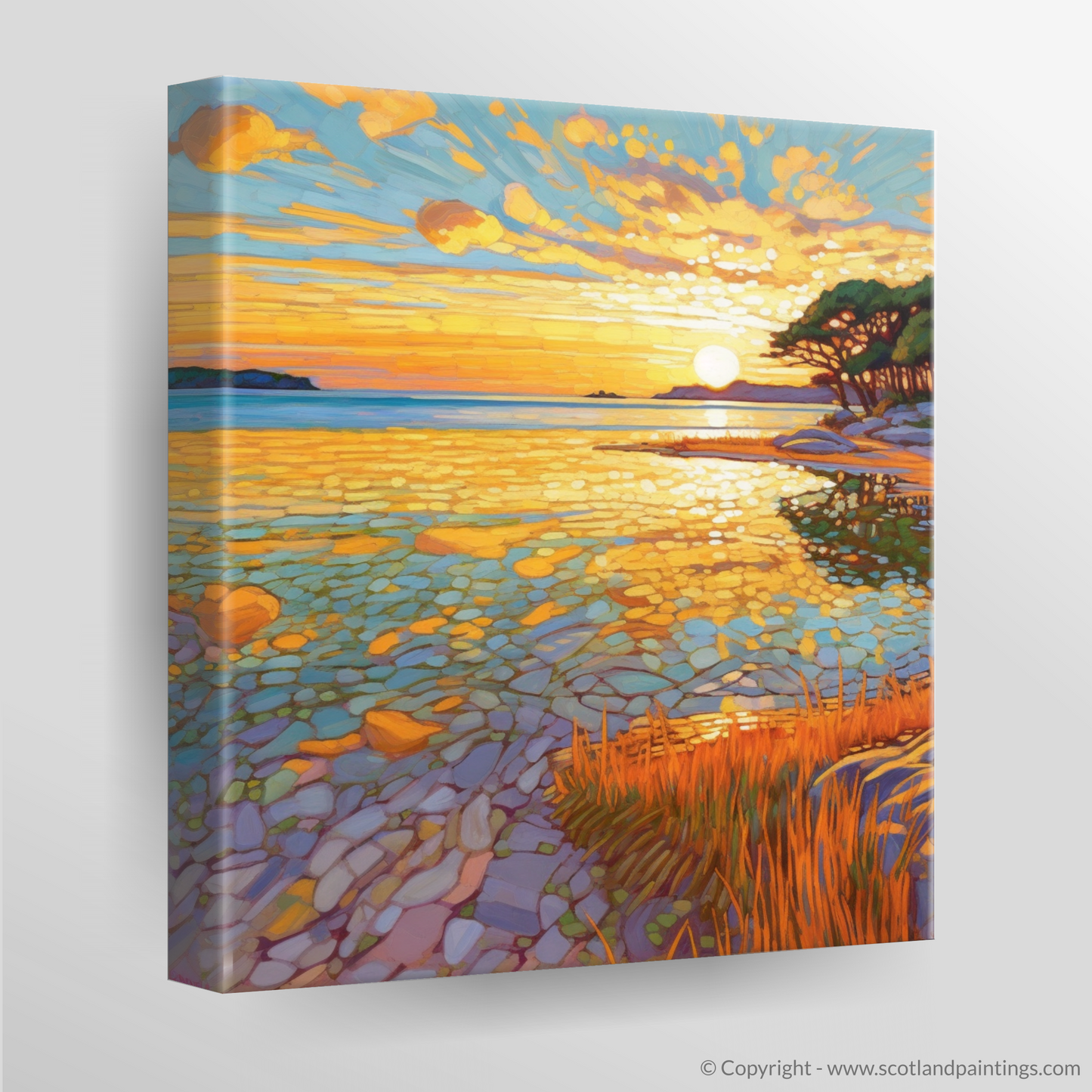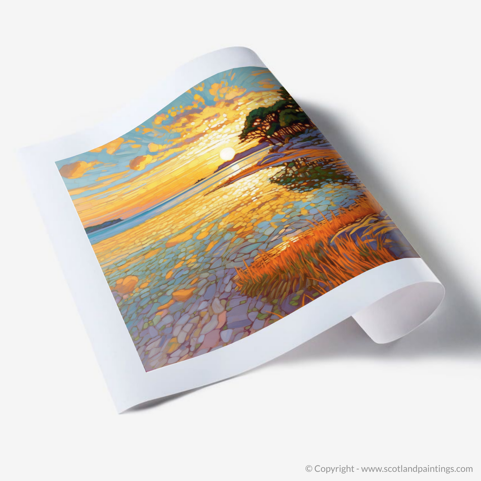 This exquisite scene of Modern Impressionism is a tribute to the profound beauty of Scottish beaches, a testament to the moments of tranquility and splendour that nature gifts to us. It is an invitation to bring the essence of the calm and inspirational Scottish shoreline into your space, offering a window to a moment of pure, untouched beauty, to be cherished and admired day after day.