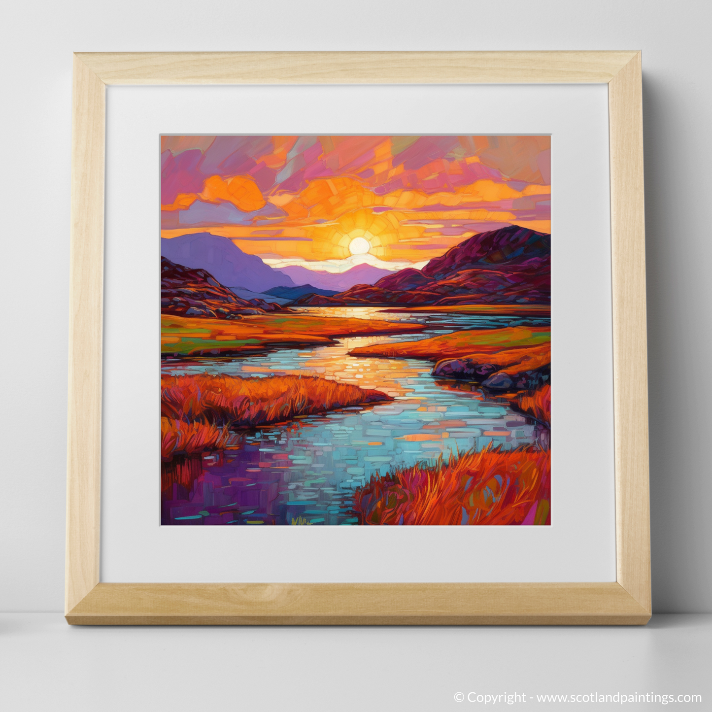 Immerse yourself in the vibrant hues and evocative brushstrokes of this striking Modern Impressionist piece, capturing the serene beauty of Loch Spelve at the enchanted hour of sunset. This exquisite print, a part of our 'Scottish Coves' collection, brings the wild and untamed charm of the Scottish Highlands into your living space.