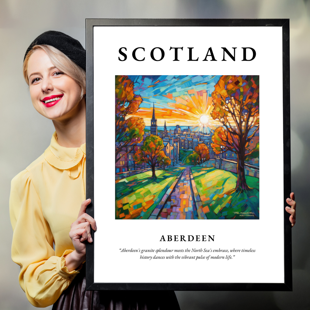 Whether you are an art enthusiast or hold a special place in your heart for Aberdeen, this poster print offers a window into a city that gracefully embraces both its heritage and its modern pulse. With its elegant presence, it serves as a daily reminder of Scotland's proud charm.