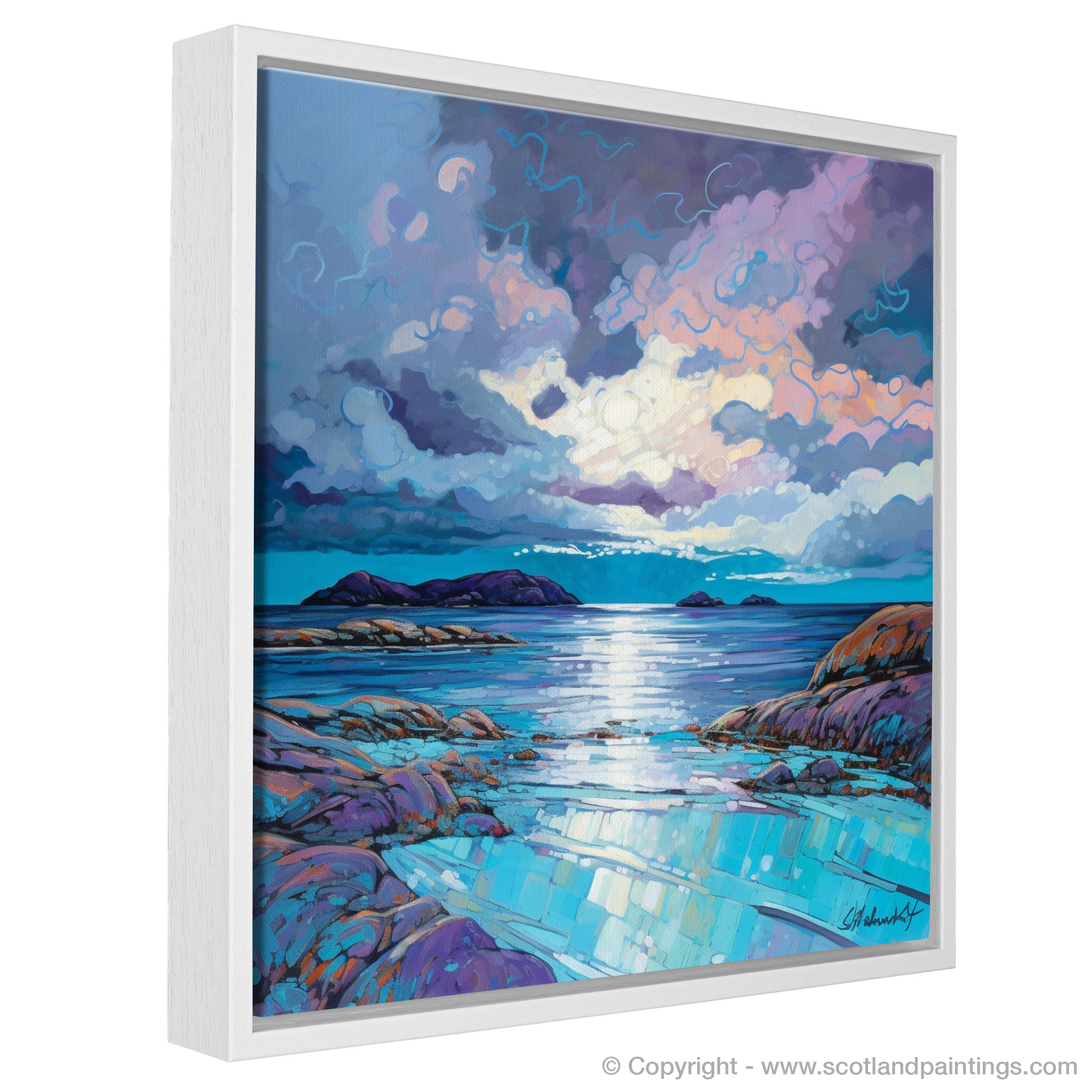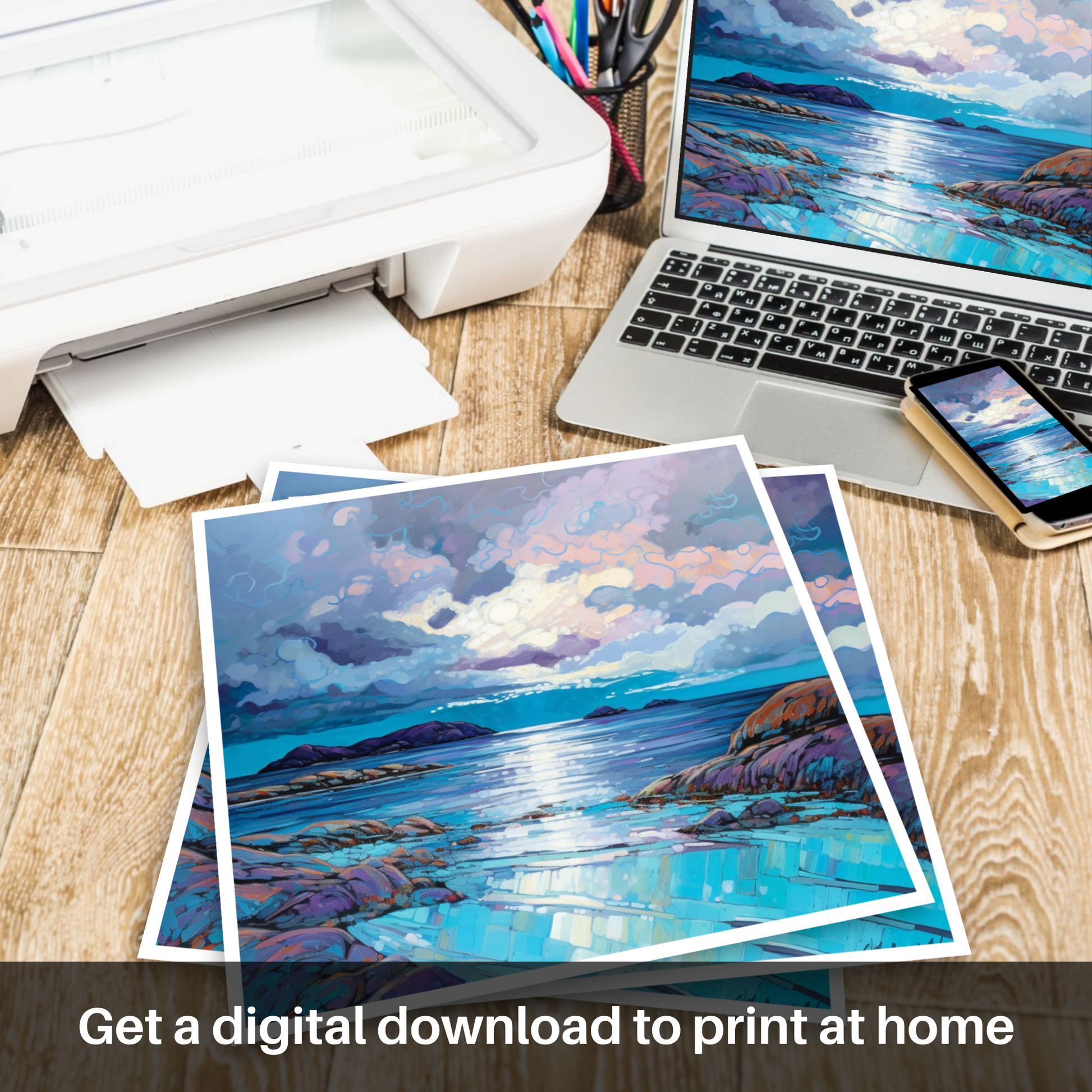 Gaze upon this evocative piece, where the untamed beauty of Achmelvich Bay is captured amidst a tumultuous storm. The vibrant colours and brisk brushstrokes of this Modern Impressionist interpretation breathe life into the cove's natural drama.
