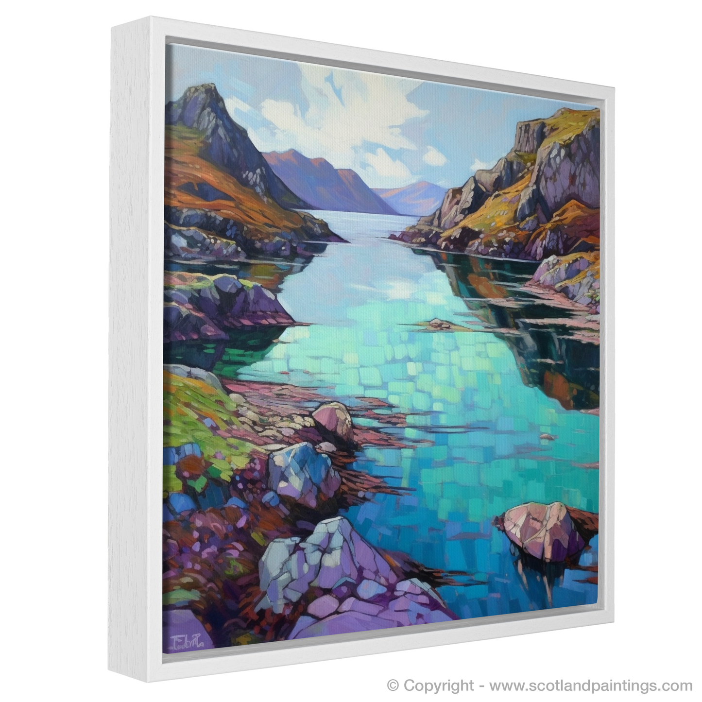 Immerse yourself in the serene beauty of the Scottish Isles with this splendid print, a celebration of nature's magnificence melded exquisitely with the unique flair of Modern Impressionism. The artwork captures the tranquil yet rugged essence of the Isle of Skye's enchanting smaller isles in the Inner Hebrides, transporting viewers to a realm of profound peace and untouched wilderness.