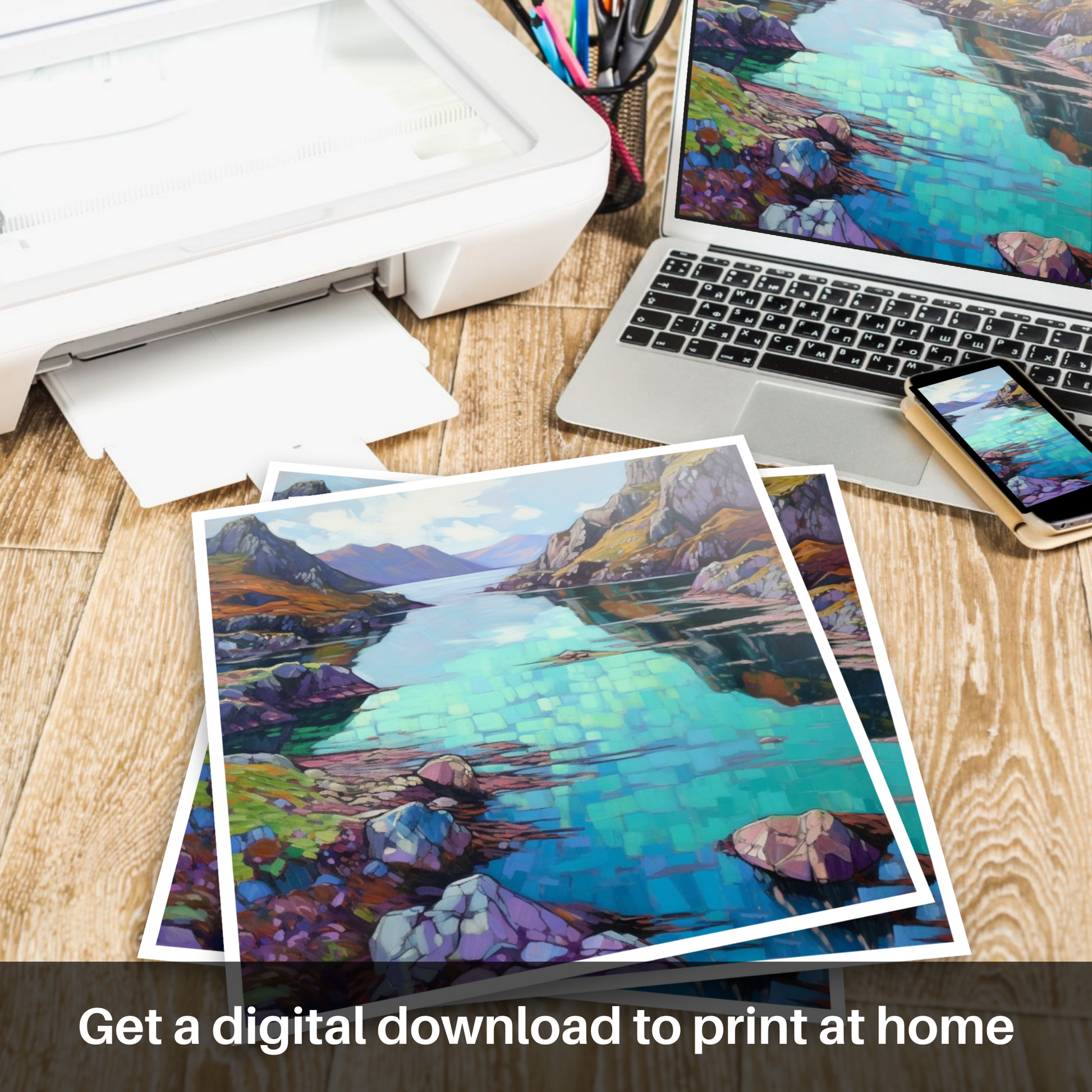 This print from our 'Scottish Islands' collection promises more than just a visual experience; it is an emotional journey into the heart of one of Scotland’s most beloved wild spaces, promising to beckon onlookers to its artful embrace, time and time again. Whether you're a lover of Scottish landscapes, an admirer of Impressionist art, or simply seeking a piece that exudes tranquillity, this print is a perfect addition to any space that calls for reflection and beauty.