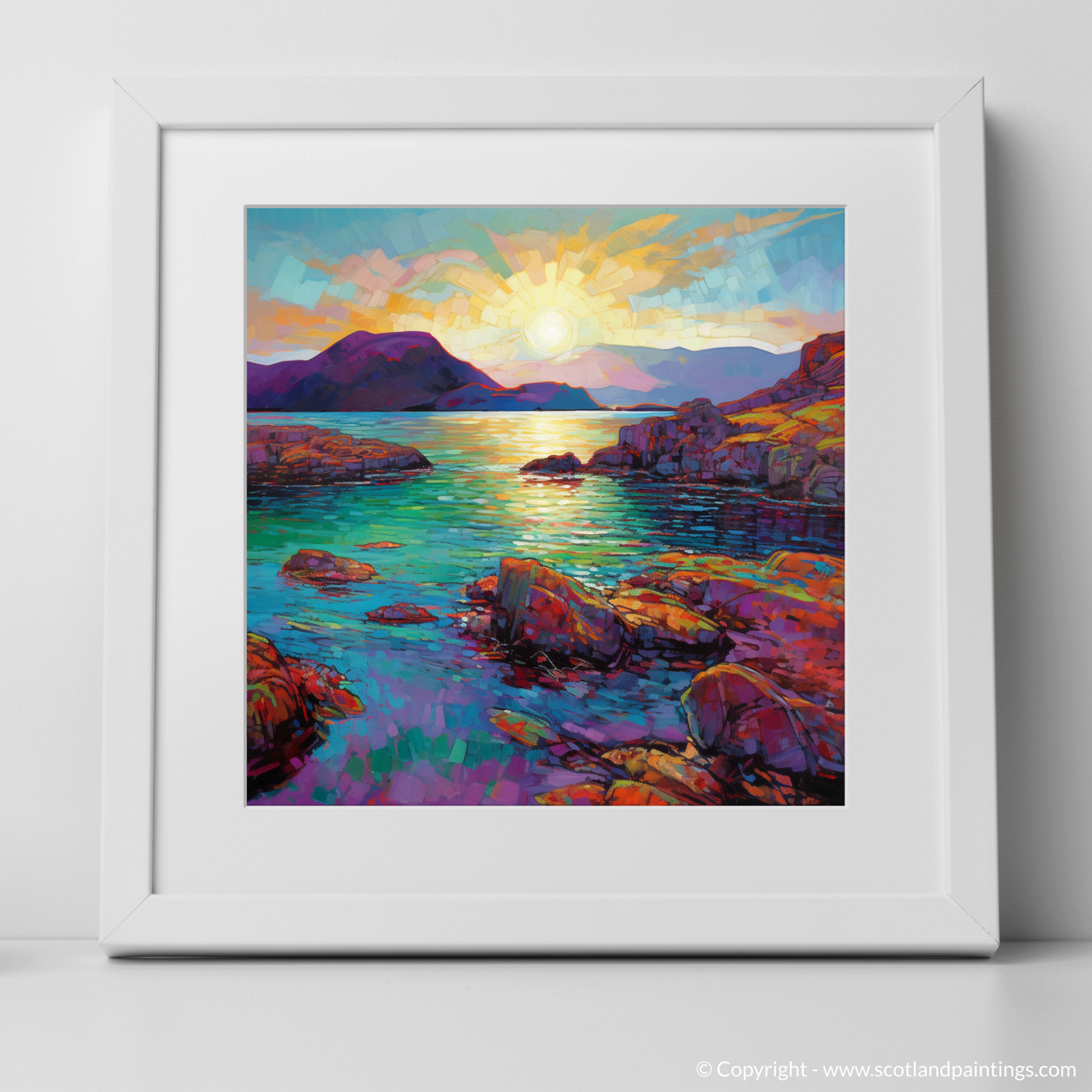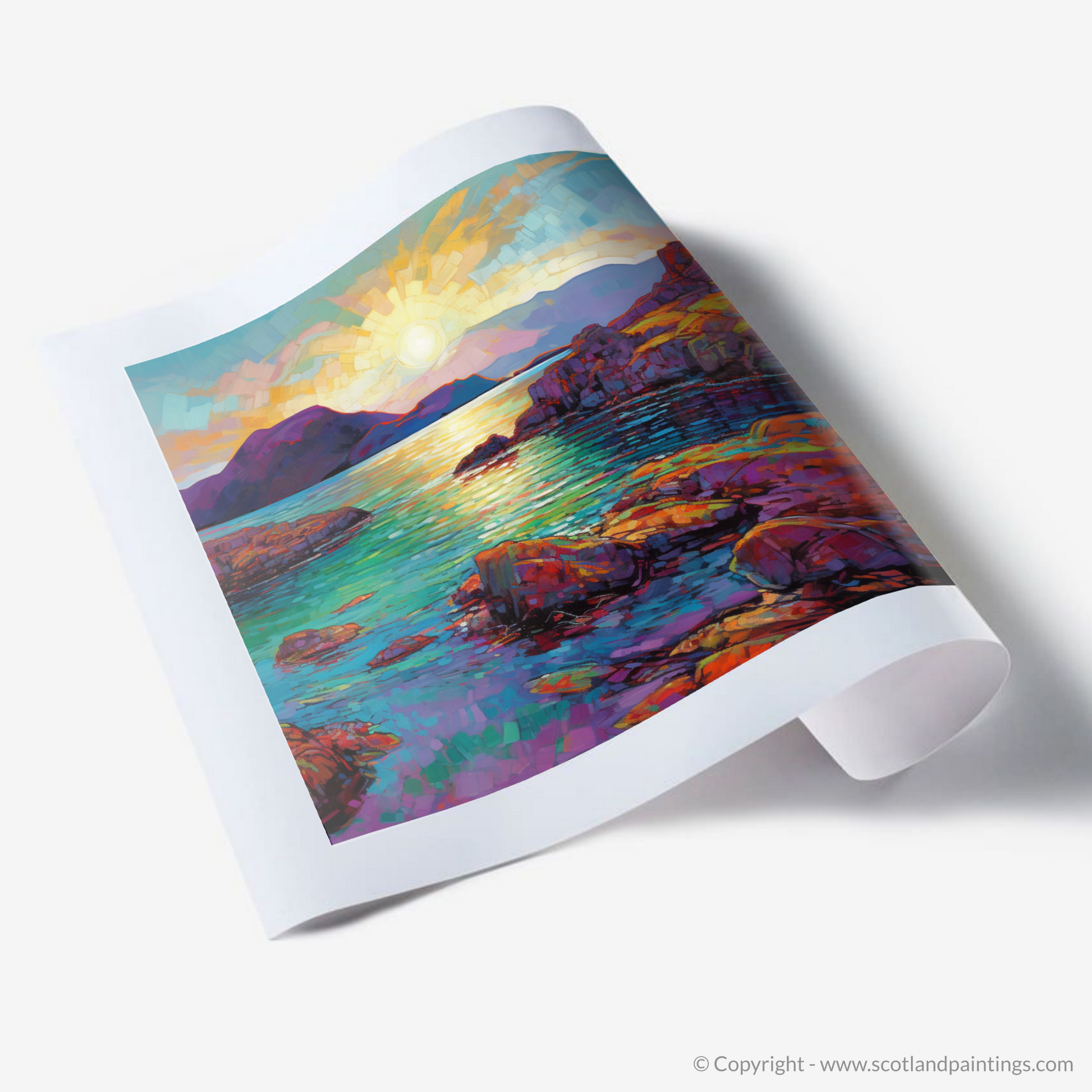 This print is a testament to the enduring allure of the Scottish landscapes, offering art lovers and dreamers alike a chance to bring the resplendent charm of the Isles into their own space. Whether displayed in a home, office, or gallery, it promises to captivate and inspire with its luminous interpretation of one of Scotland's most cherished regions.