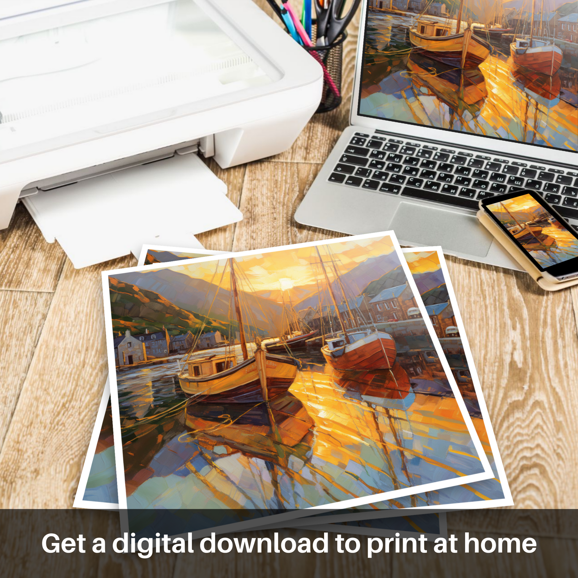 Golden Hour at Ullapool Harbour: A Modern Impressionist Masterpiece