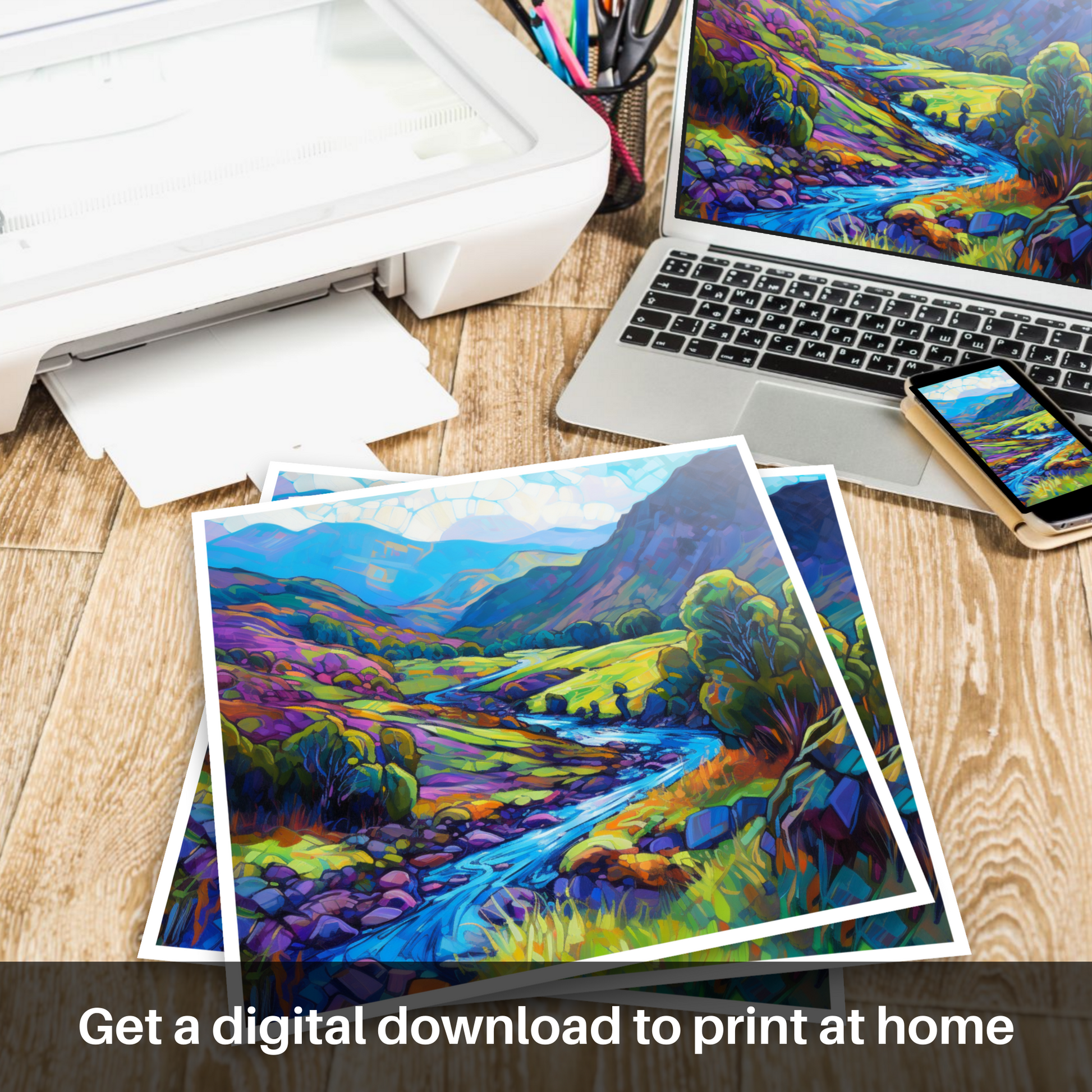 Immerse yourself in the vibrant hues and dynamic brushstrokes of our exclusive print inspired by the enchanting Glen Sannox on the Isle of Arran. A stunning visual journey beckons, embracing the valley's lush tranquillity and its effervescent spirit captured through the beguiling lens of Modern Impressionism.