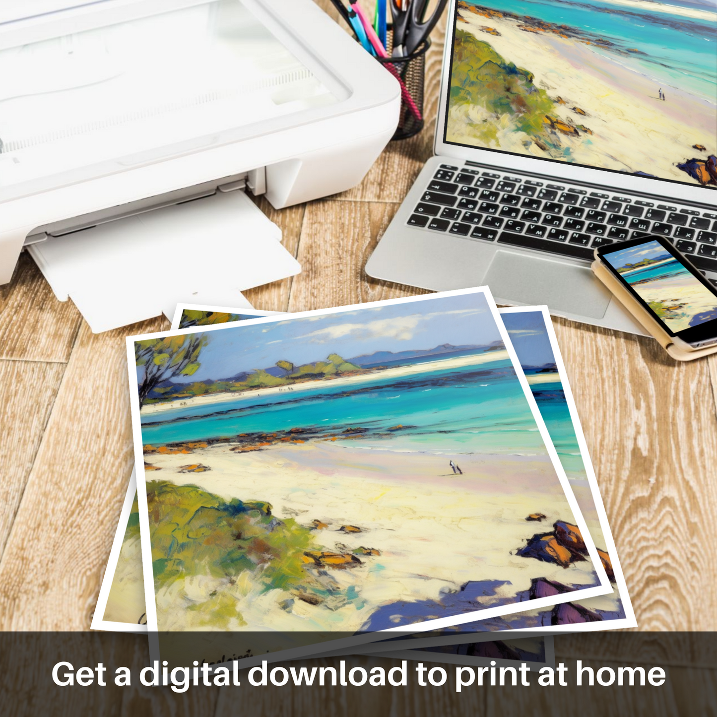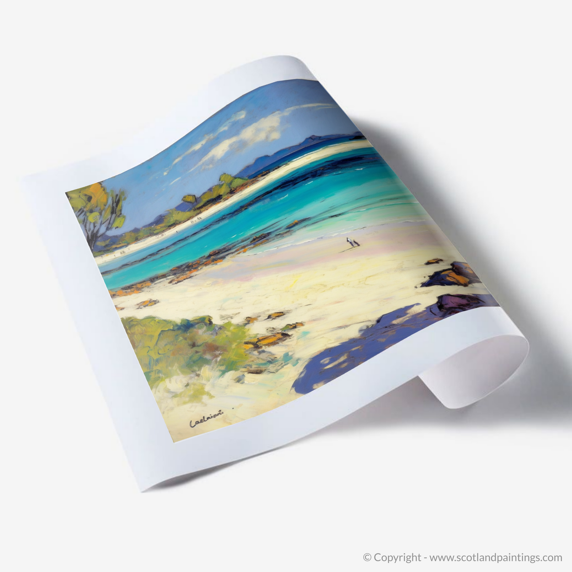 This print beautifully conveys the essence of Camusdarach Beach through Fauvist eyes, with color that is not just seen but felt, breathing life and emotional resonance into this coastal landscape. It's a captivating piece that will add a splash of colour and a sense of wild, natural freedom to any space it inhabits.