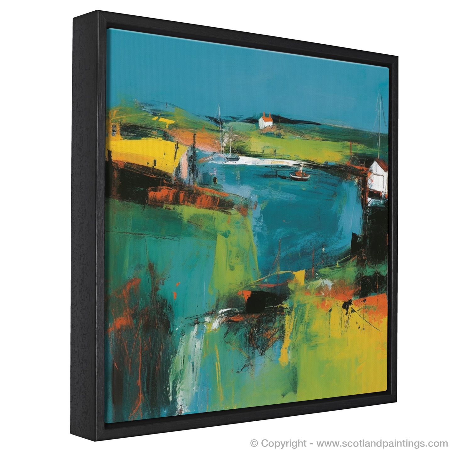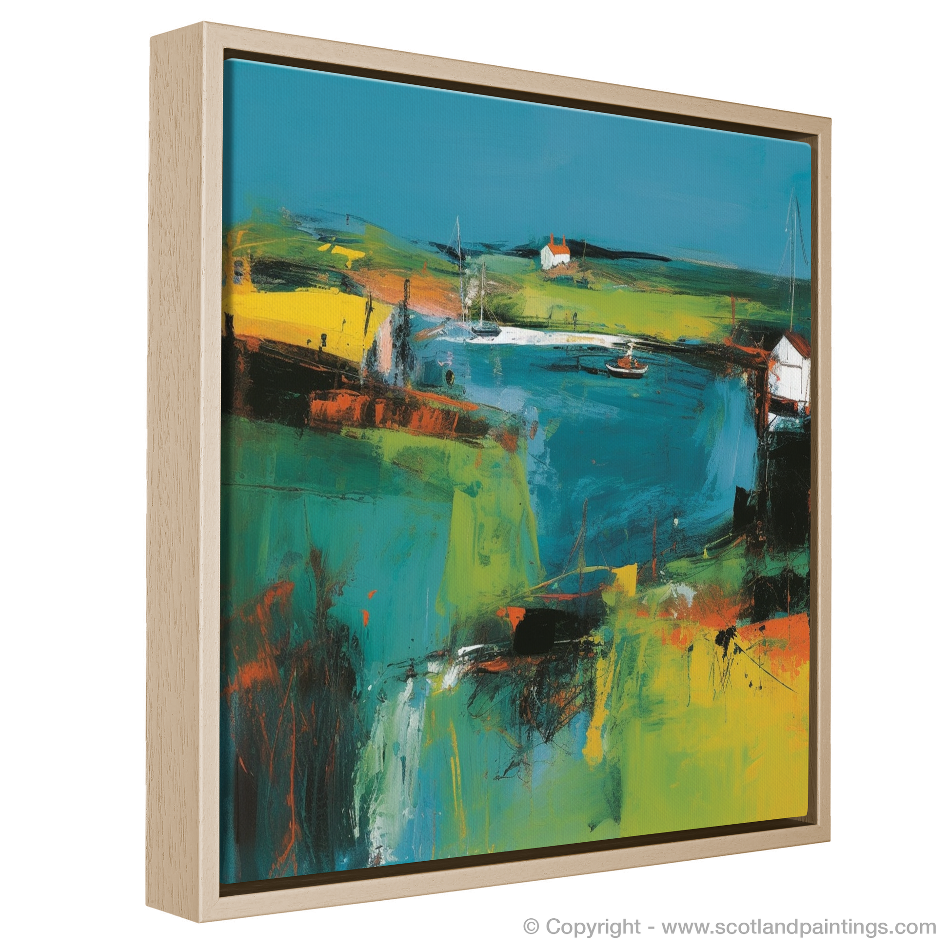The azure and cerulean hues of the water blend harmoniously with verdant greens and splashes of bright yellow, hinting at the sun-kissed hills and grasses that embrace the harbour. The calming expanse of blue simulates the gentle ebb and flow of the tides, while the subtler tones seem to echo the whispers of the Scottish breeze.
