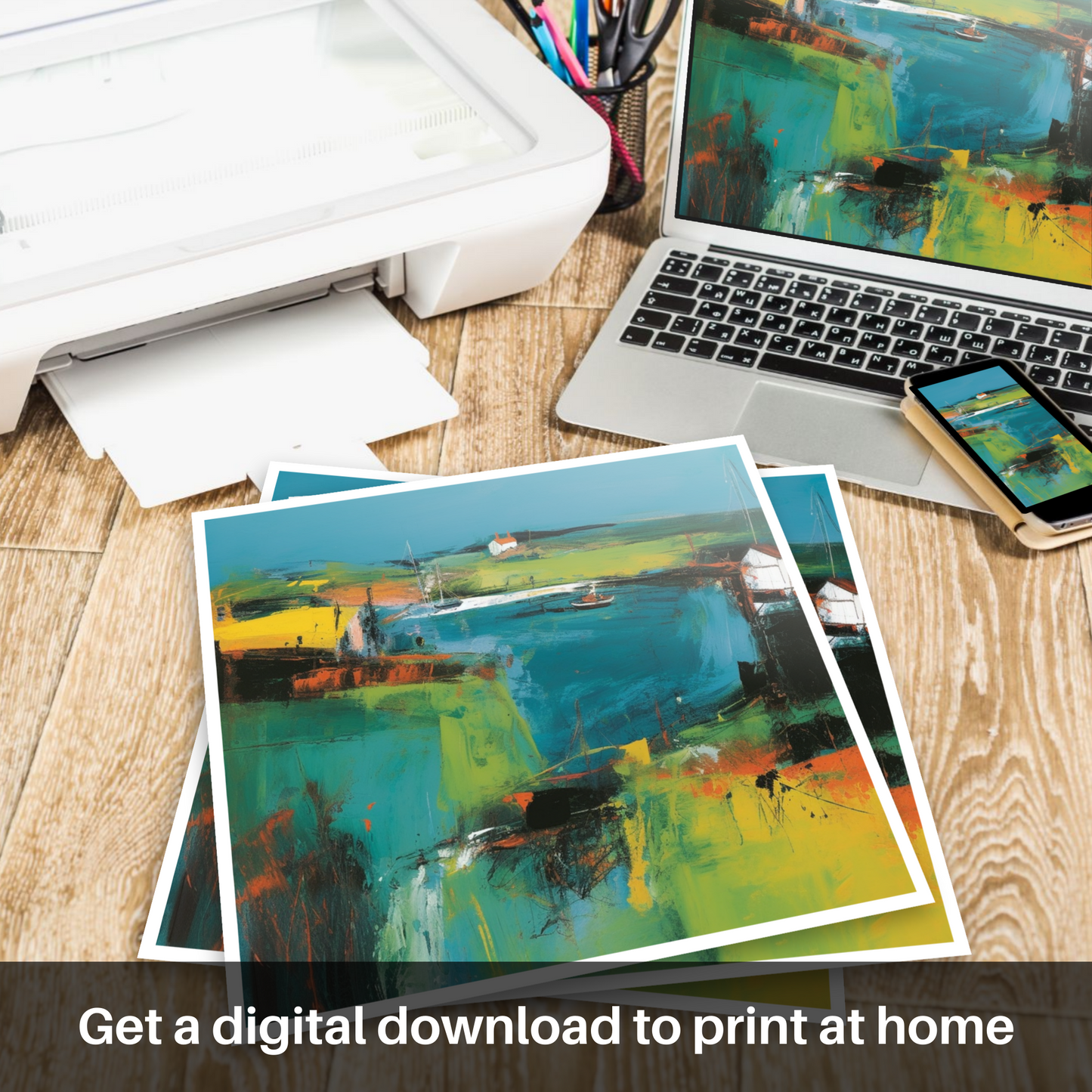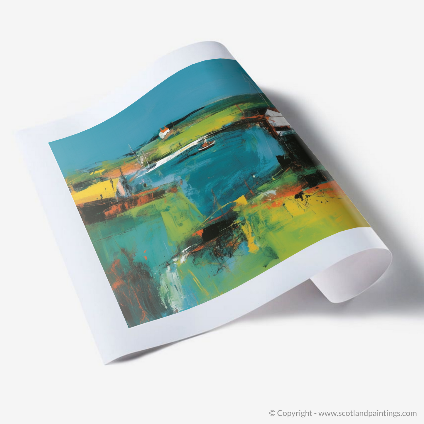 Embark upon a visual journey to the serene St Abba's Harbour, as this exquisite print captures the quintessence of the Scottish Borders with a vivid and expressive palette. The composition, inspired by the Color Field movement, envelops the viewer in broad swathes of enchanting colour, evoking the atmospheric beauty of this coastal scene.