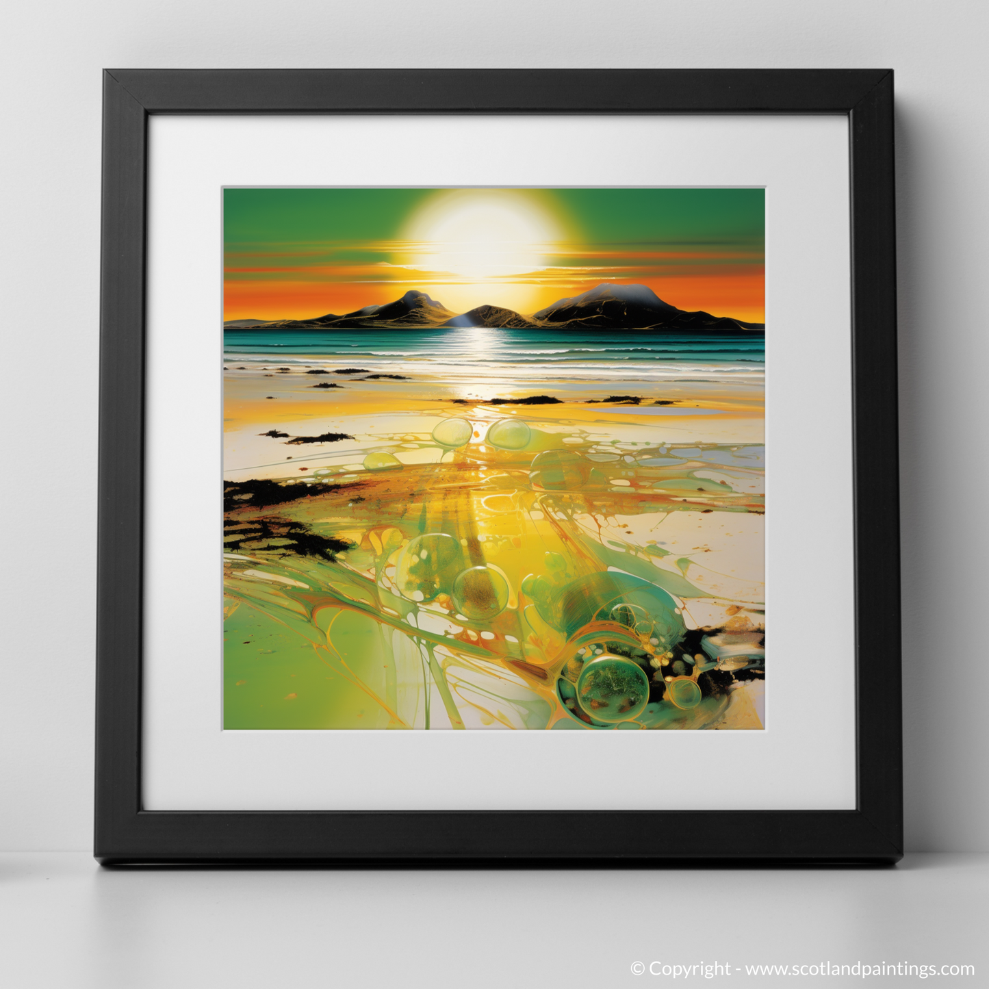 Indulge in the fantastical interplay of light and shadow, where amber sunlight pools like liquid gold, mingling with the essence of the ocean's edge. This print from our 'Scottish Coves' collection promises not just a visual feast, but an invitation to ponder the mysteries that lie where the sea kisses the sky at the close of day.