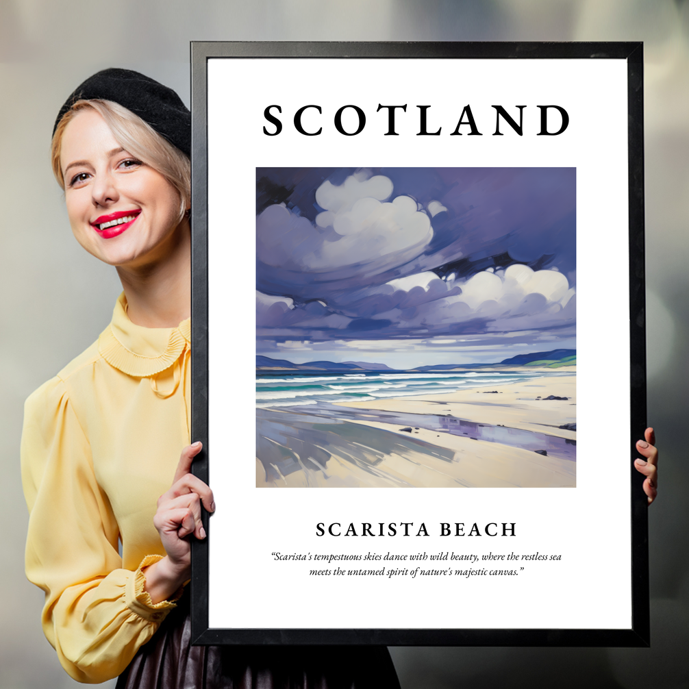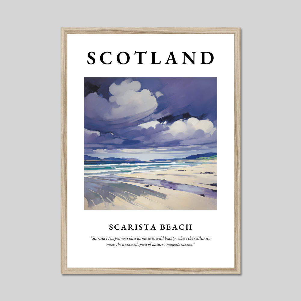 Embrace the wild beauty of Scotland with this stunning 50cm x 70cm framed poster print, elegantly capturing the enchanting essence of Scarista Beach. The bold lettering spelling “SCOTLAND” instantly transports you to this mesmerising land, where the painting of Scarista Beach below unfolds a vibrant tale of tempestuous skies and a restless sea. In the Fauvism style, the artwork bursts forth with vivid colour and dynamic brushstrokes, bringing the untamed spirit of nature's majestic canvas to life.