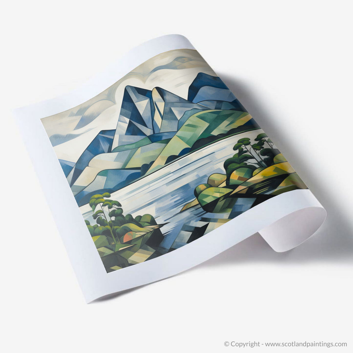 Taking its rightful place within the 'Scottish Mountains' collection, this piece not only celebrates the iconic silhouette of Ben Lomond but does so through the avant-garde lens of Cubism. It deftly captures the raw beauty of Scotland's landscapes, making it a compelling acquisition for admirers of both natural splendor and modernist art. Enrich your space with this arresting print, a contemporary homage to the timeless allure of Scotland's rugged terrain.