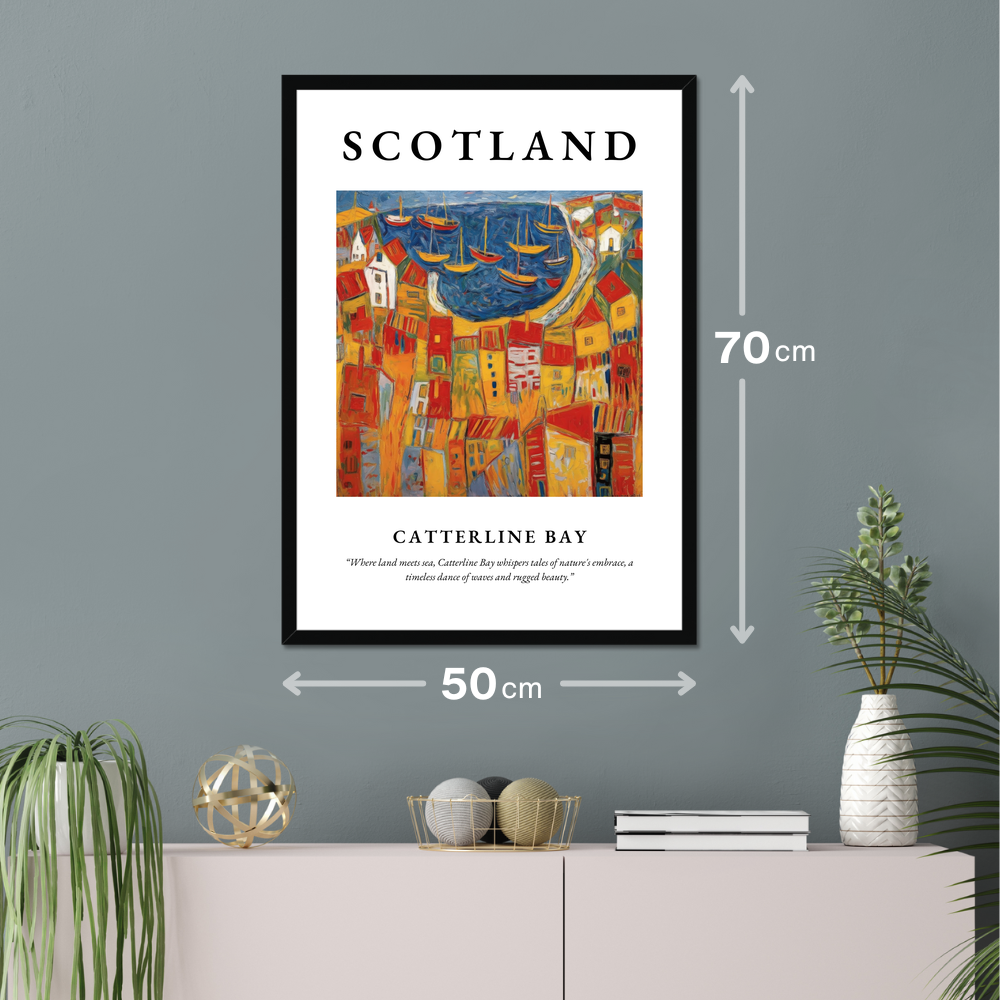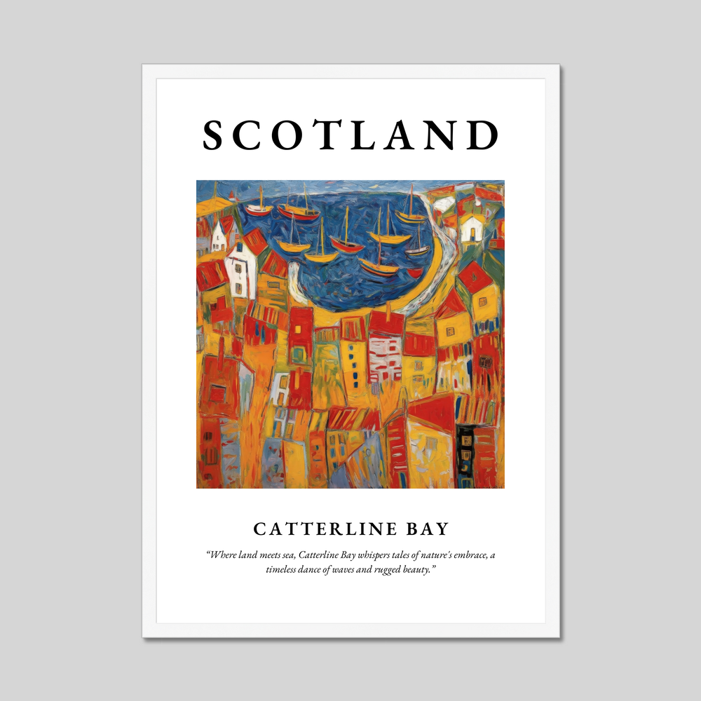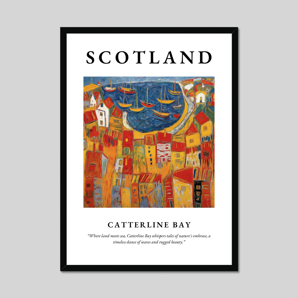 The character and charm of Catterline Bay, as captured in this poster, convey more than just a visual experience; they offer a moment of reflection on the harmonious dance between land and sea. Whether you've strolled along its shores, hold fond memories, or dream of visiting, this framed poster is a tribute to the enduring allure of Scotland's breathtaking coastal landscapes.