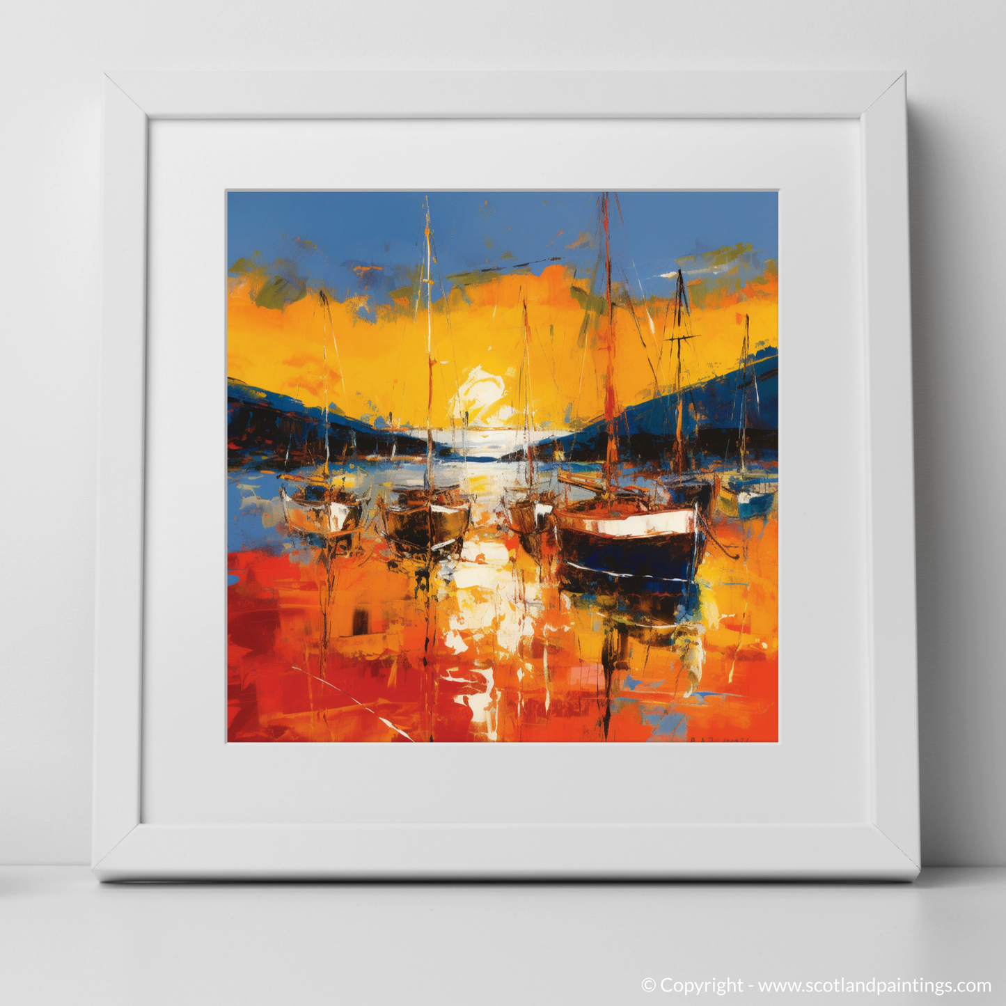 As the daylight wanes into the sublime embrace of golden hour, this exquisite print captures the serene ambience of Cromarty Harbour. This abstract impressionist piece deftly evokes the changing skies and still waters, offering a vivid spectacle of colour and motion that brings the Scottish coastline to life.
