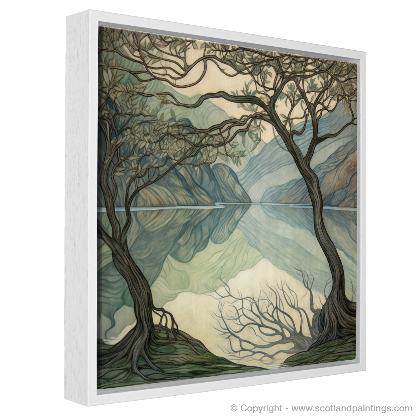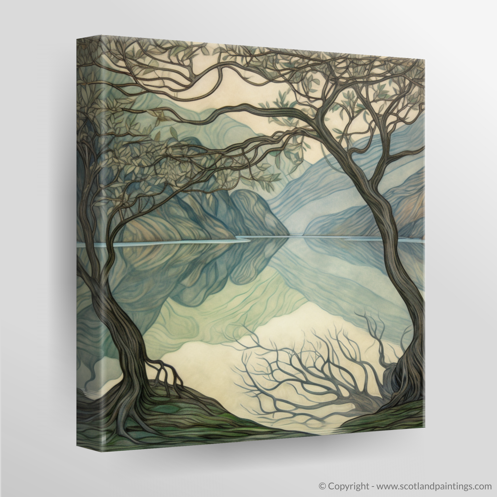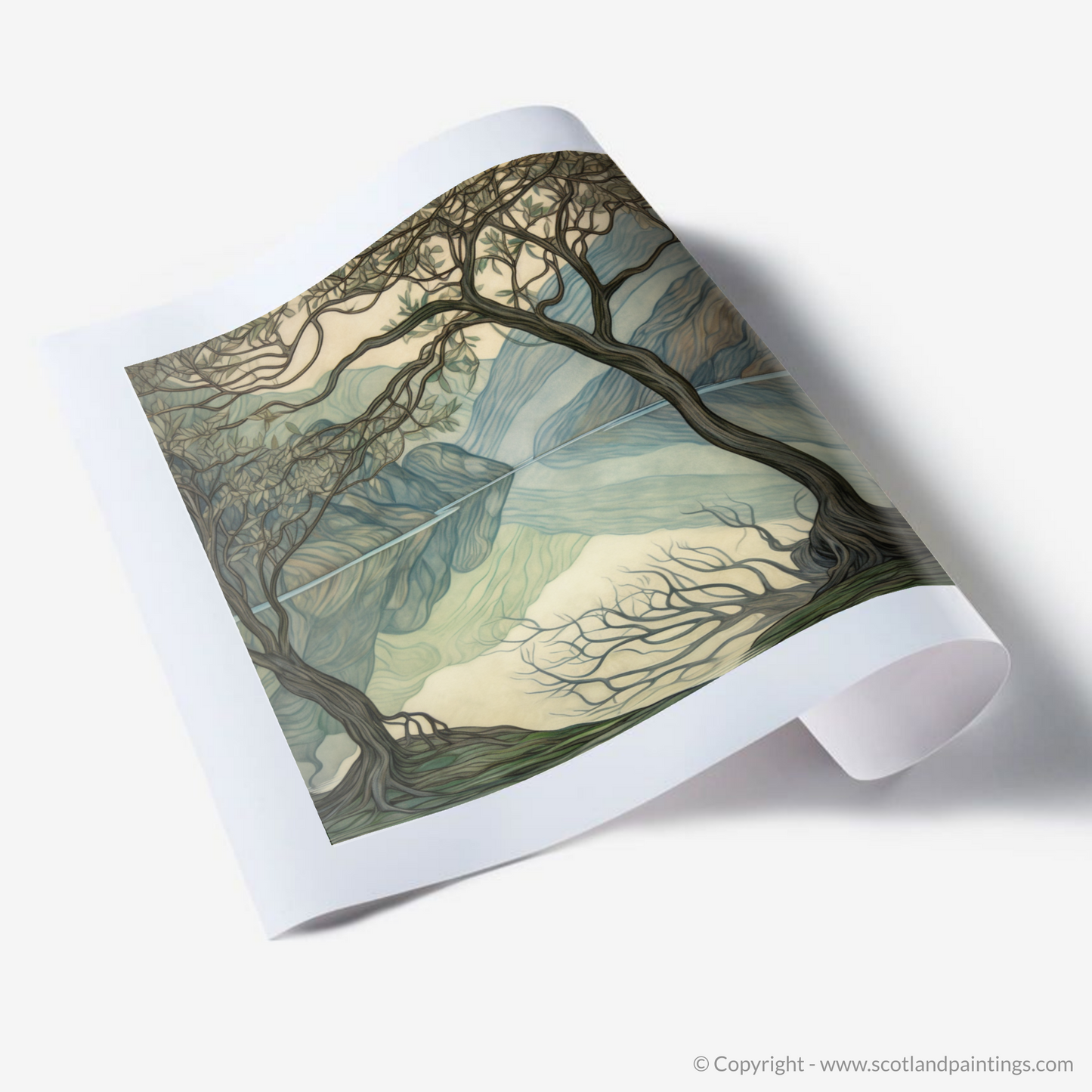 Capturing the serene beauty of Loch Voil, this exquisite print transports the viewer into a world suffused with tranquil shades and sinuous lines that epitomise the Art Nouveau style. The piece features an enchanting composition where intertwined branches gracefully frame the mystical waters, evoking a sense of harmony and natural elegance.