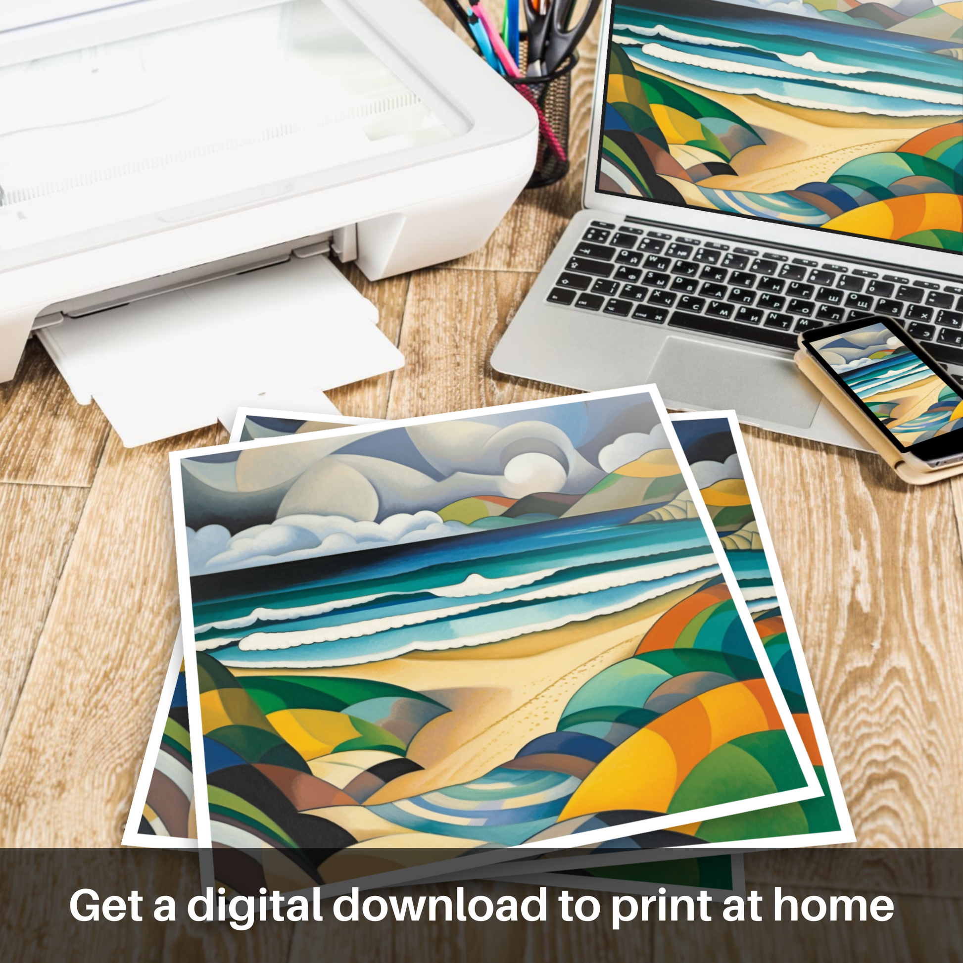 This exquisite print, part of the 'Scottish Beaches' collection, serves both as a homage to the inherent beauty of the Scottish coastline and as a testament to the mesmerising potential of cubist interpretation. It is sure to spark conversations and capture imaginations, making it a perfect addition to any space that cherishes both the beauty of nature and the power of innovative artistry.