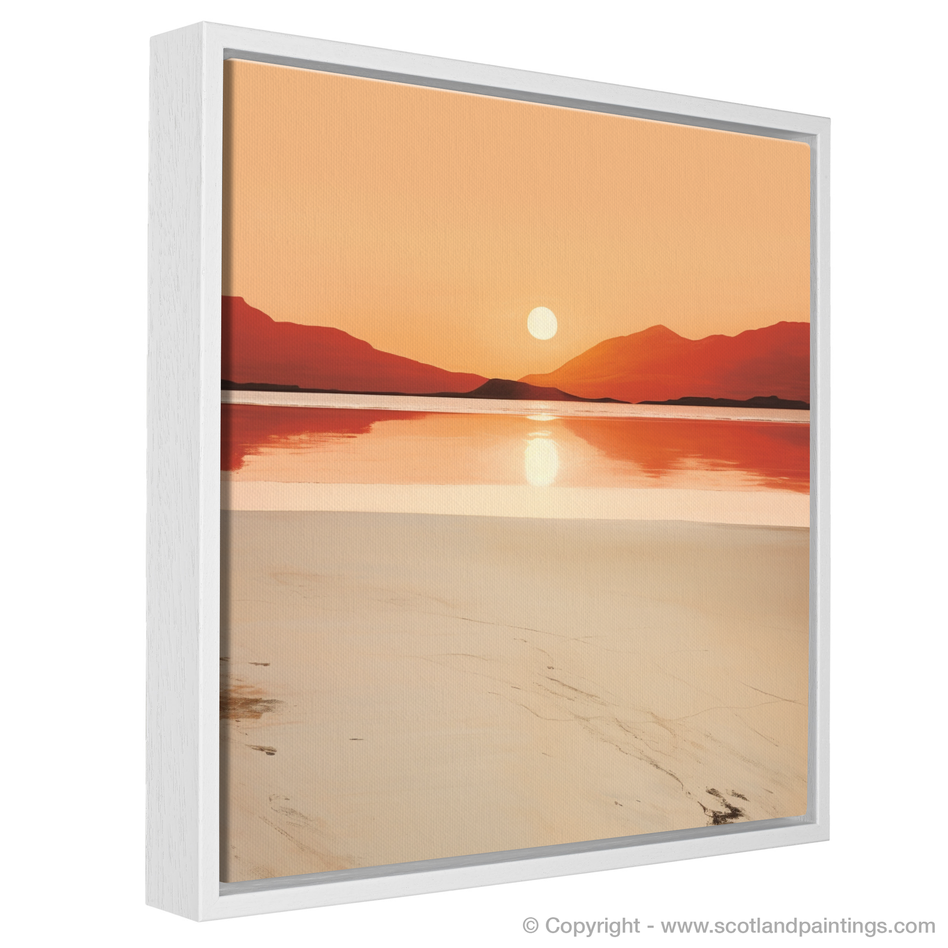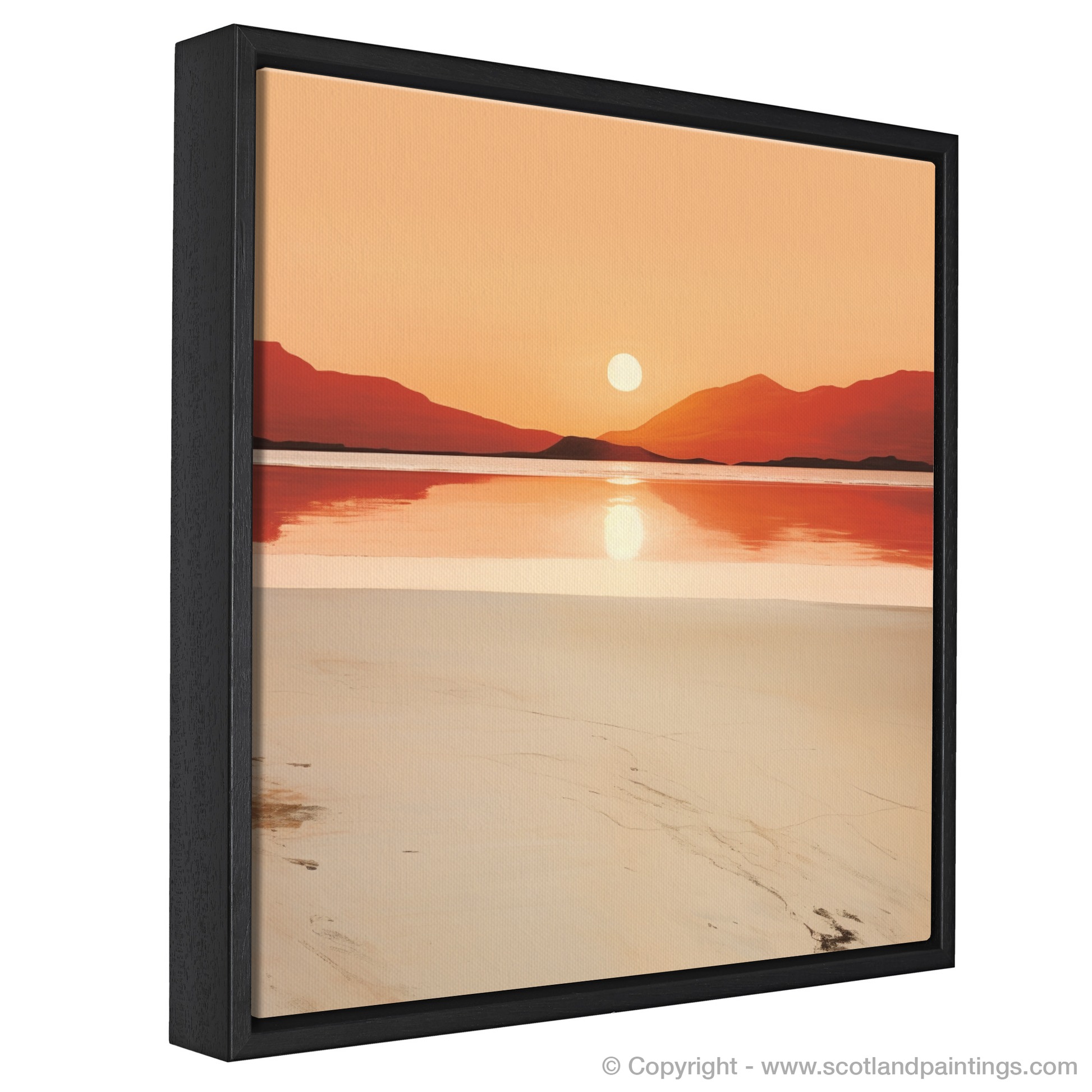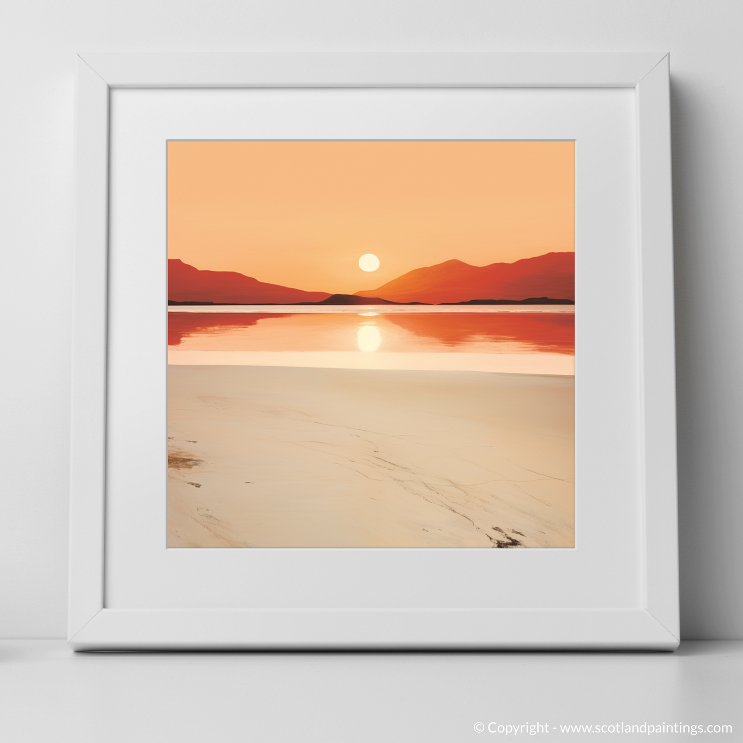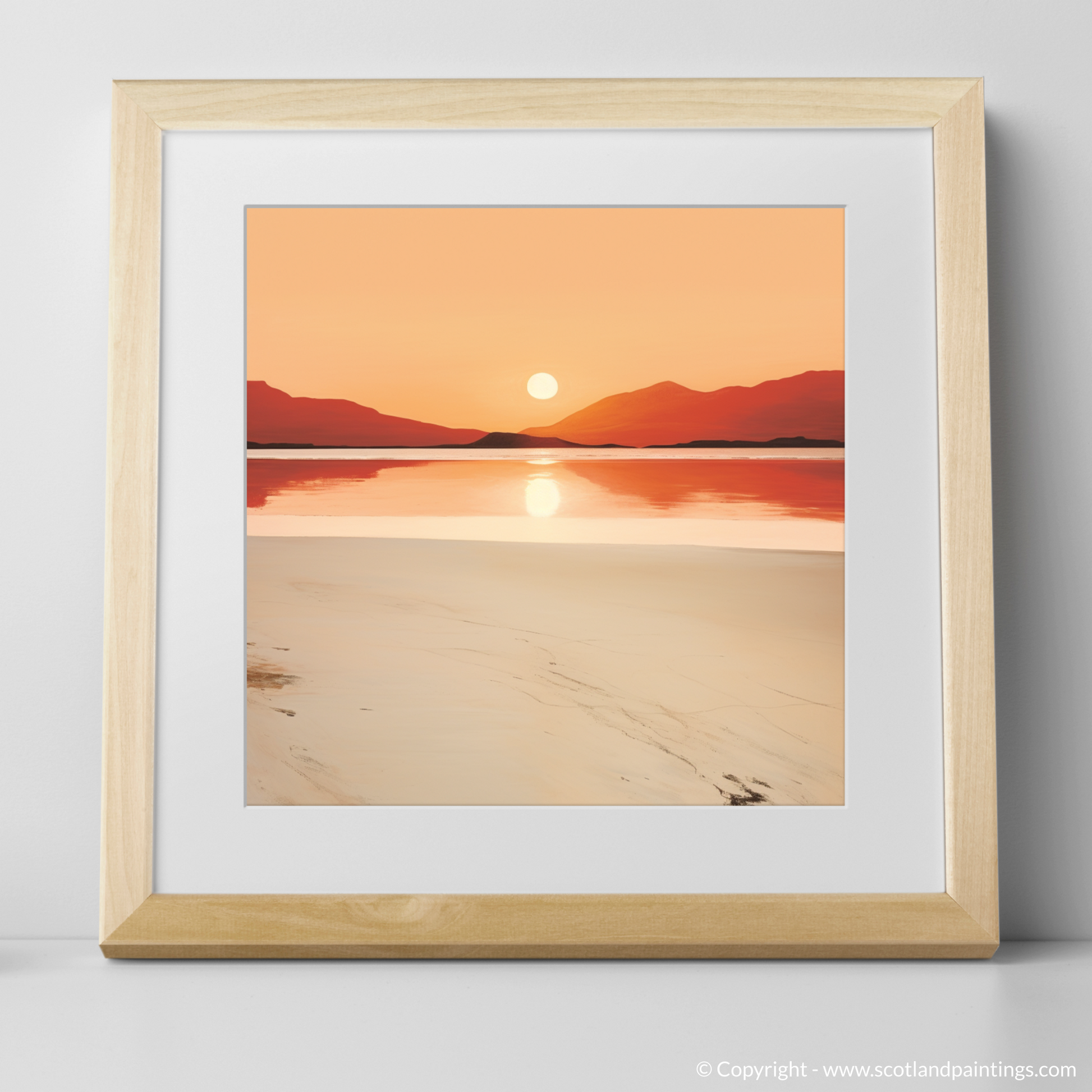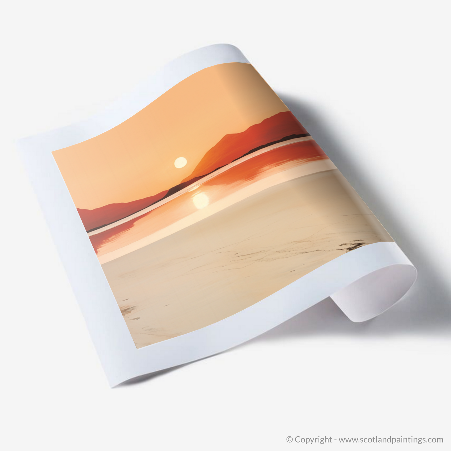 As the day draws to a peaceful close, immerse yourself in the serene splendour of the Scottish coastline with this evocative print. Capturing the tranquil essence of Mellon Udrigle Beach at sunset, this piece of art is a study in minimalist elegance, where simplicity speaks volumes.