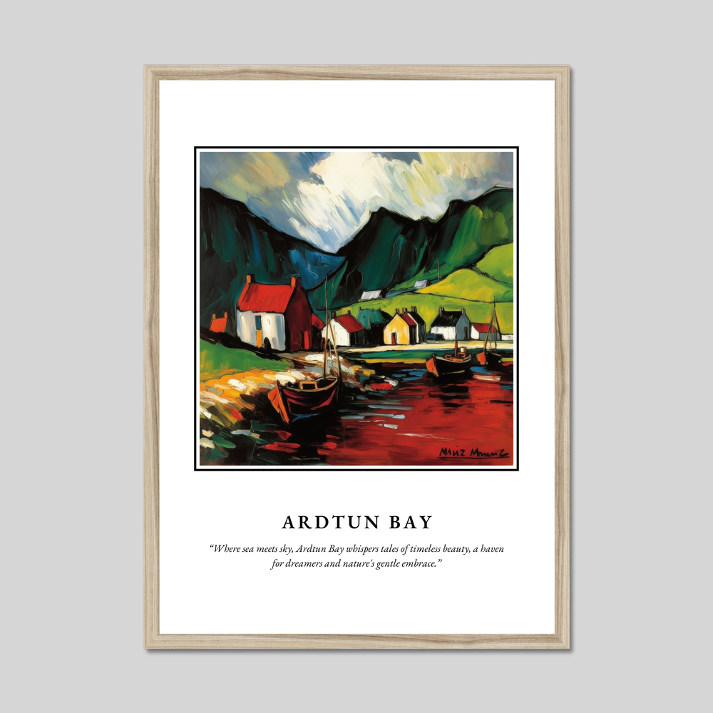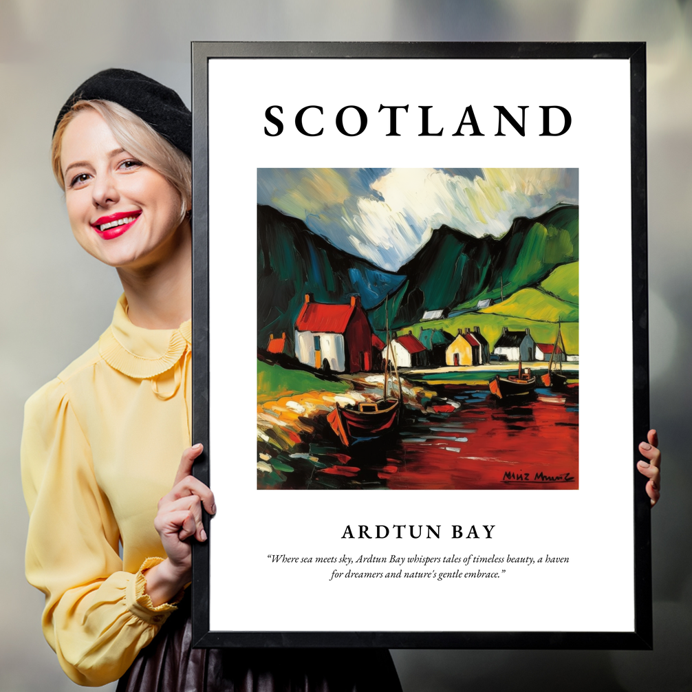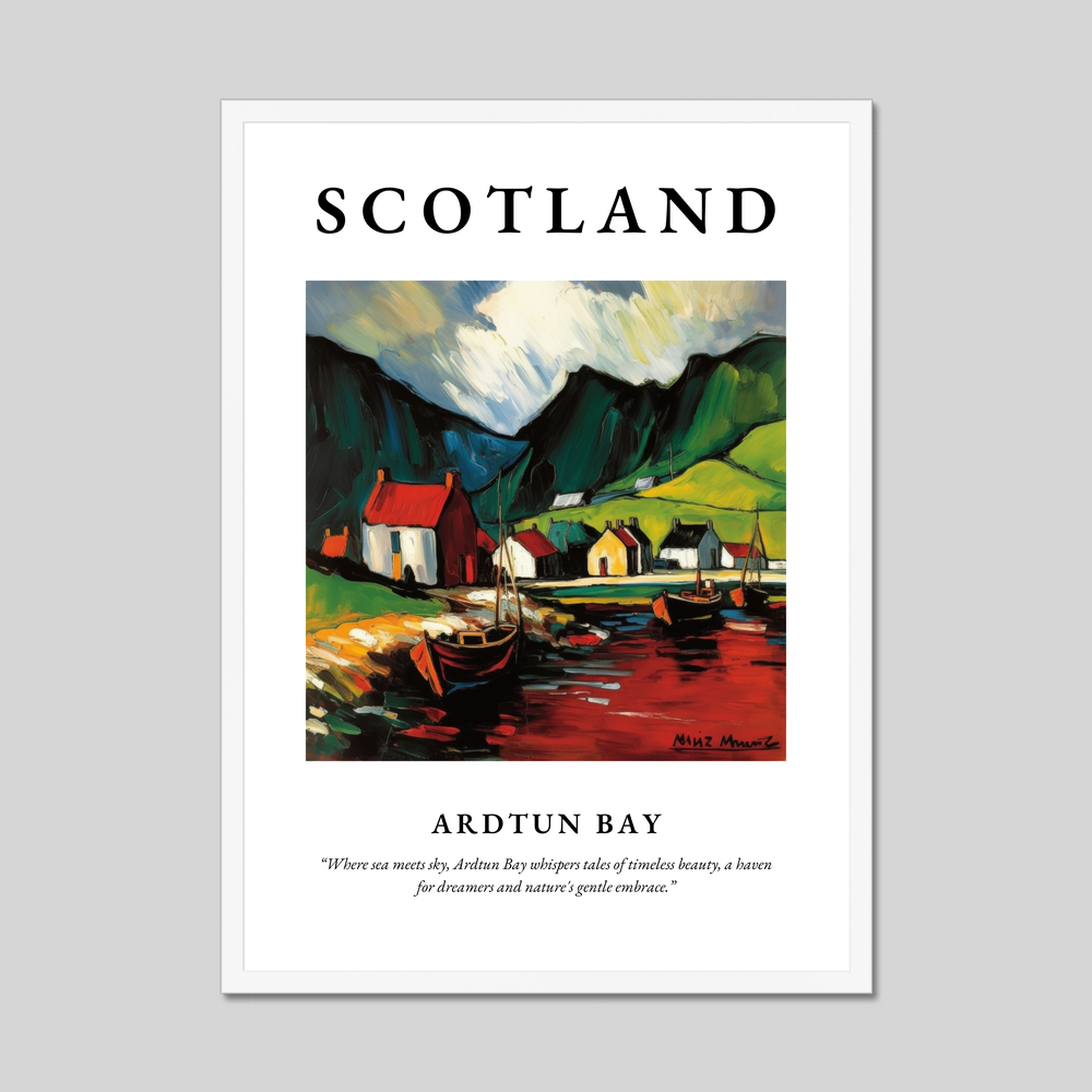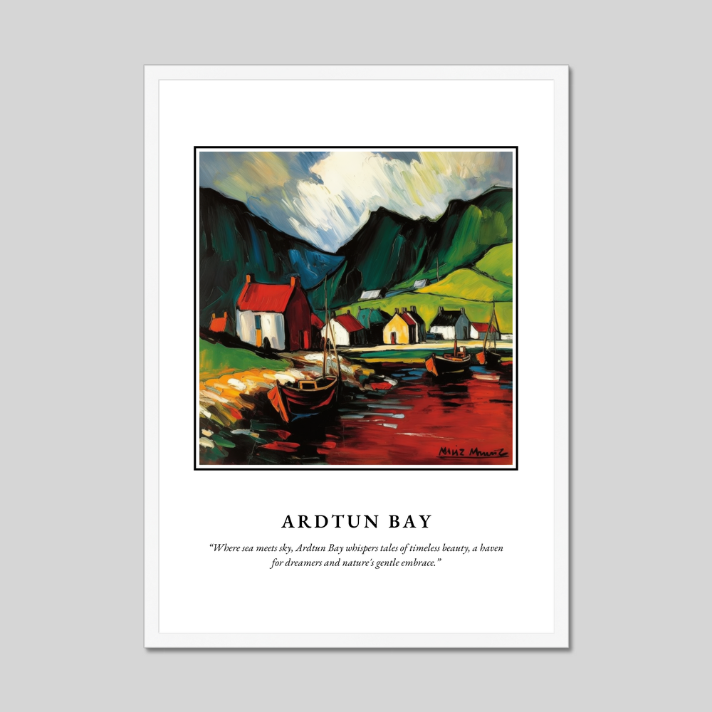 Underneath the captivating painting, a quote whispers to the soul: “Where sea meets sky, Ardtun Bay whispers tales of timeless beauty, a haven for dreamers and nature's gentle embrace.” This poetic touch enhances the allure for travellers who hold Ardtun Bay close to their heart, art lovers enchanted by Fauvism, or anyone who cherishes a connection to the Scottish landscape.