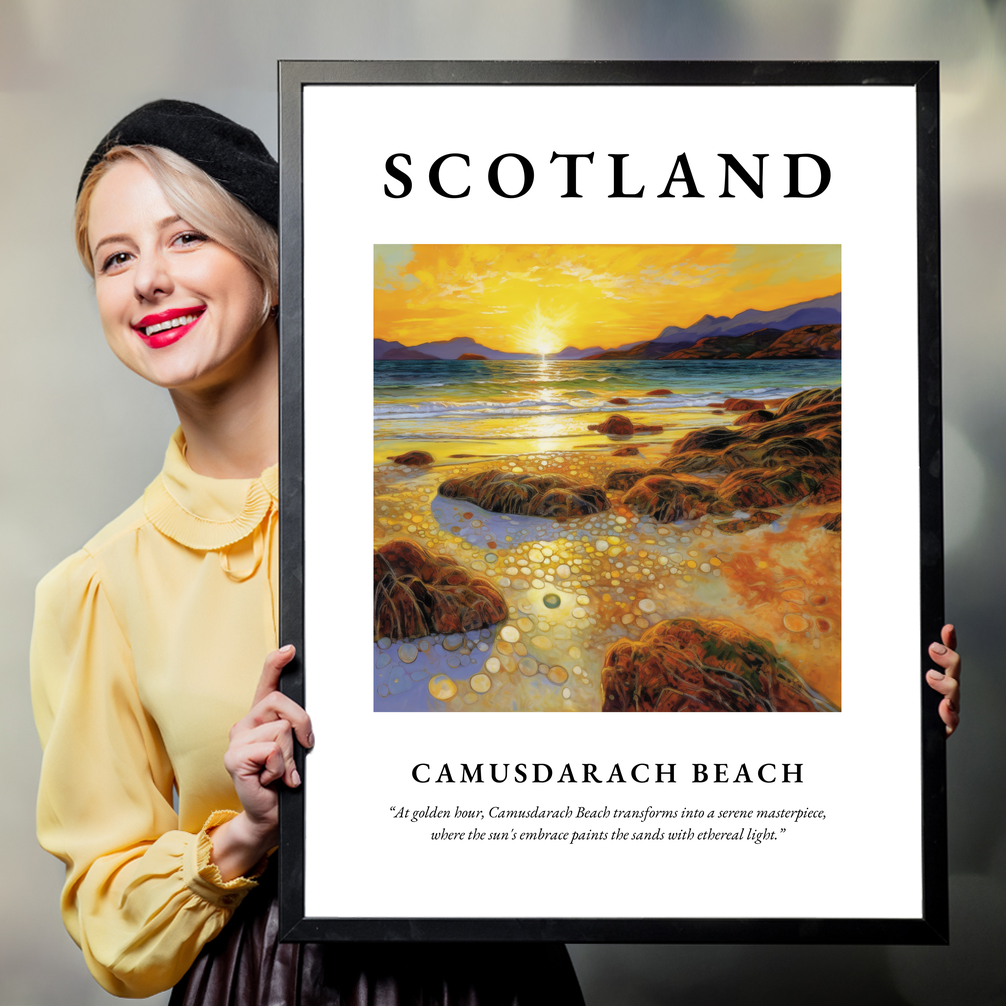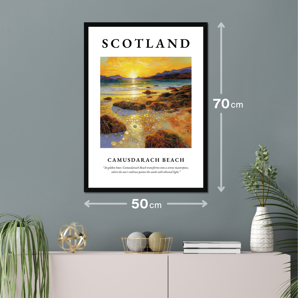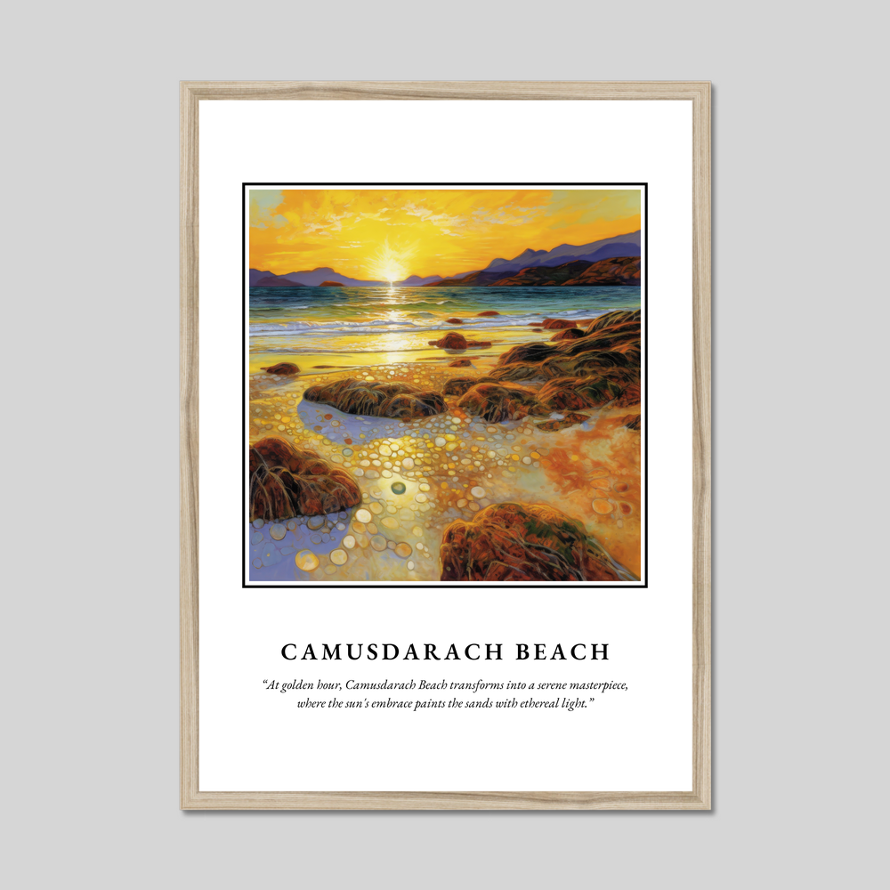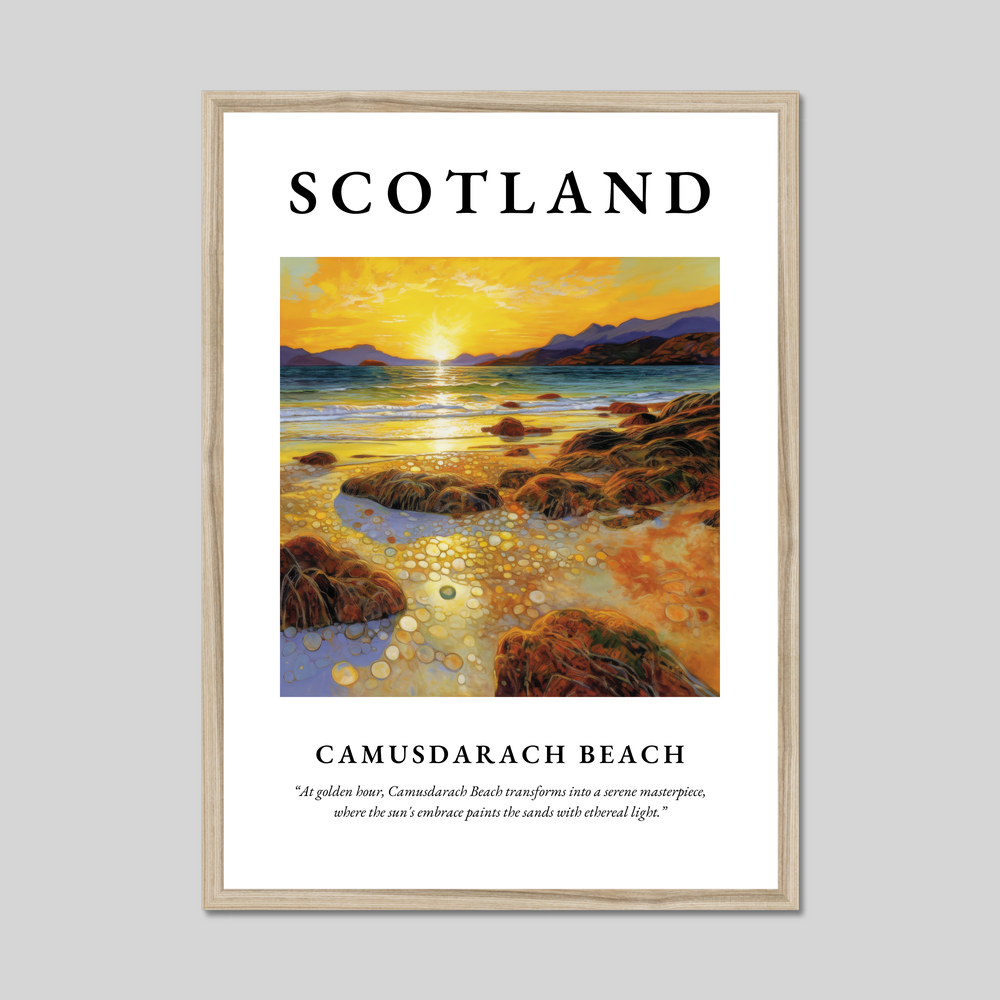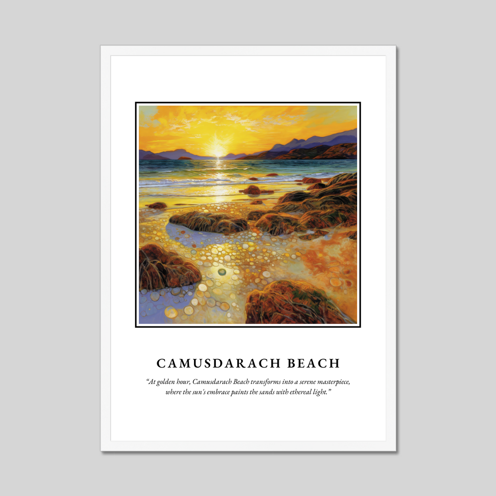 Whether you have strolled along its sweeping sands, embraced its calming tides, or simply dream of the scenic beauty it offers, this poster serves as a timeless tribute to Camusdarach Beach. Ideal for those with ties to this special place or admirers of artistic landscapes, this framed print is a perfect addition to your home or office, bringing a piece of Scotland’s natural artistry into your everyday life.