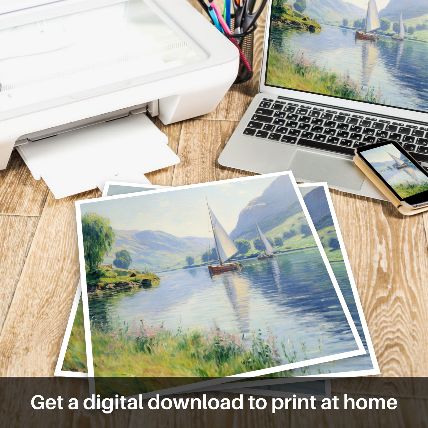 As the gentle breeze skirts across the surface of the water, this enchanting depiction invites you to experience the serene beauty of Loch Awe. The impressionistic brushstrokes caress the scene with a softness that captures the tranquil essence of one of Scotland's most picturesque locales.
