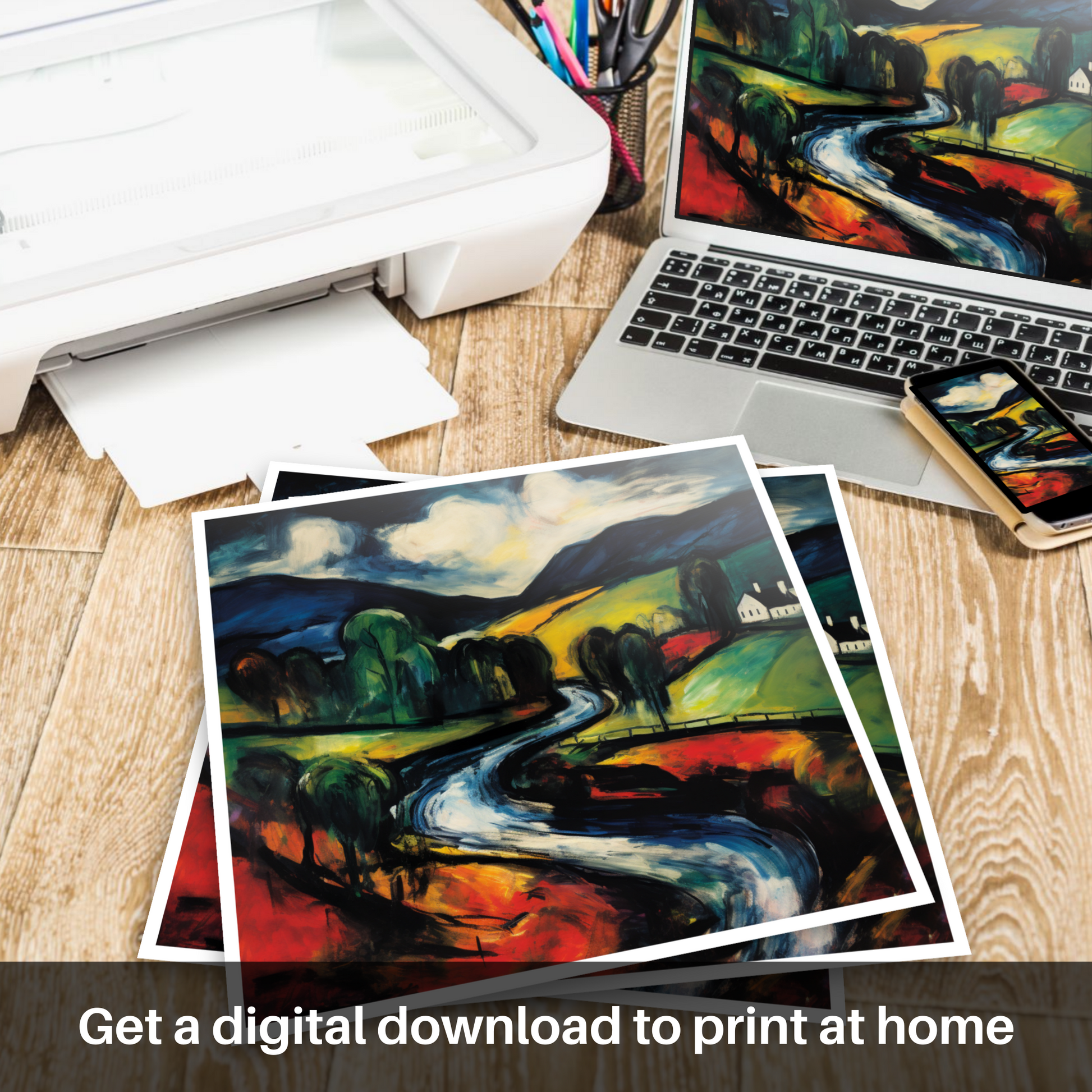 Immerse yourself in the vibrant swirl of colours that brings the essence of the River Nith to life on your walls. This exquisite print, inspired by the untamed beauty of Dumfries and Galloway, is a feast for the eyes that captures the wild spirit of Scottish landscapes.
