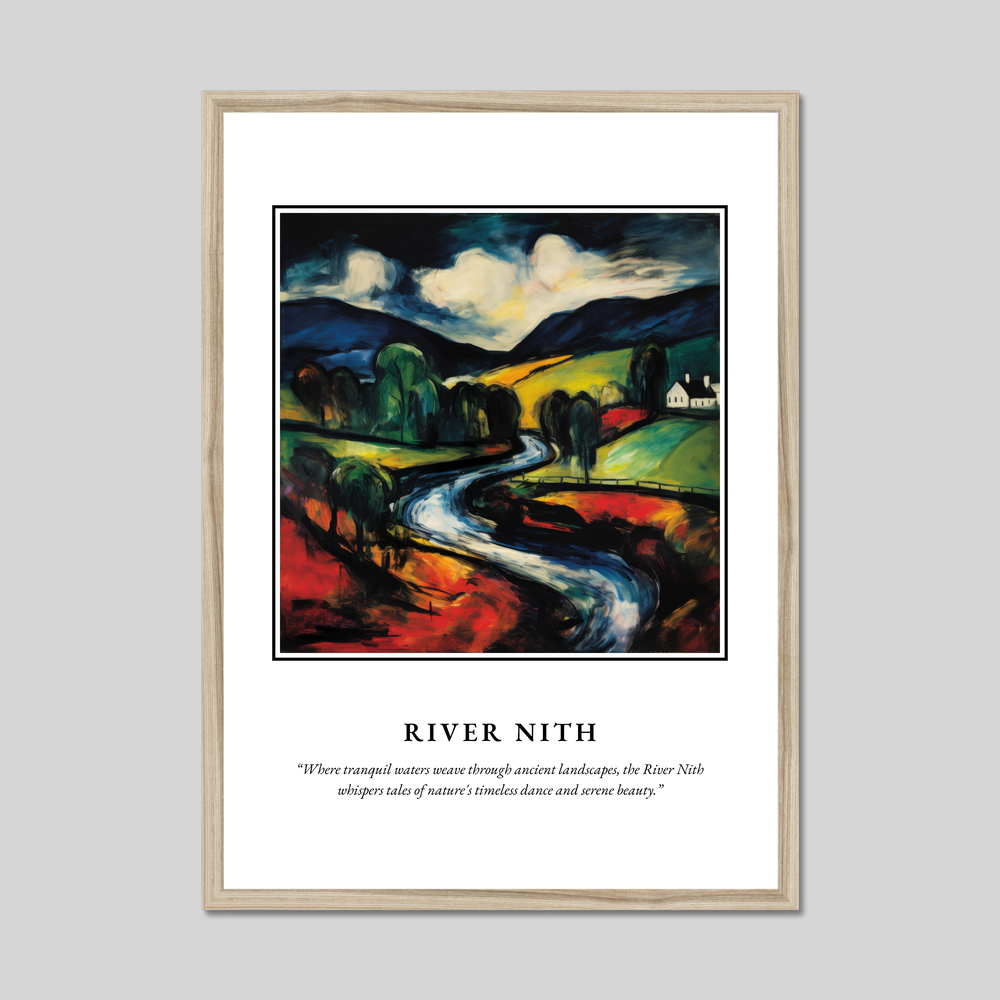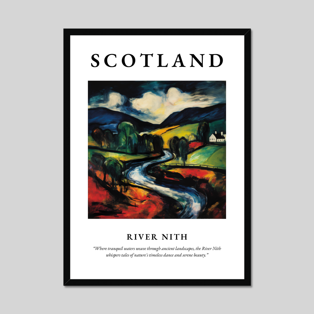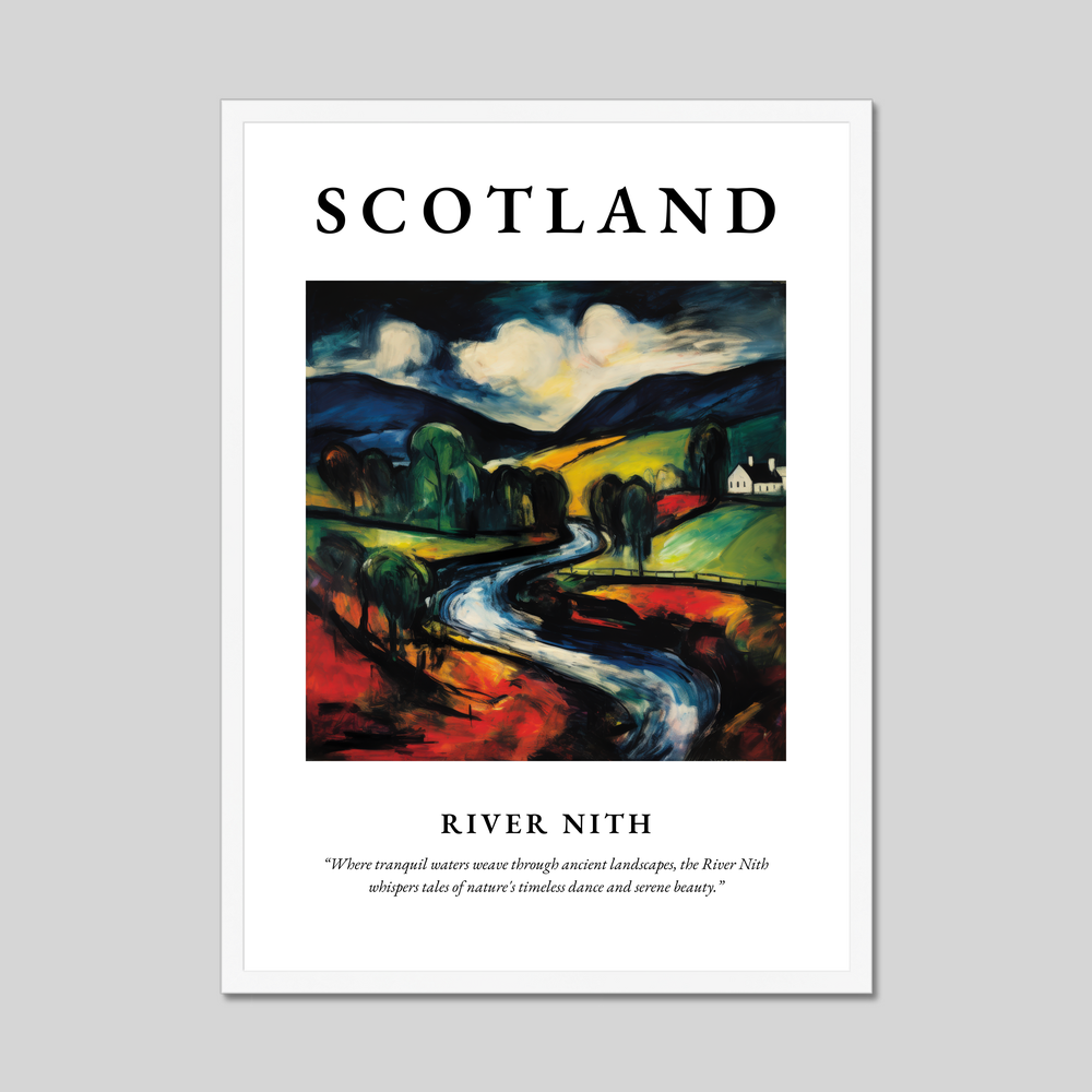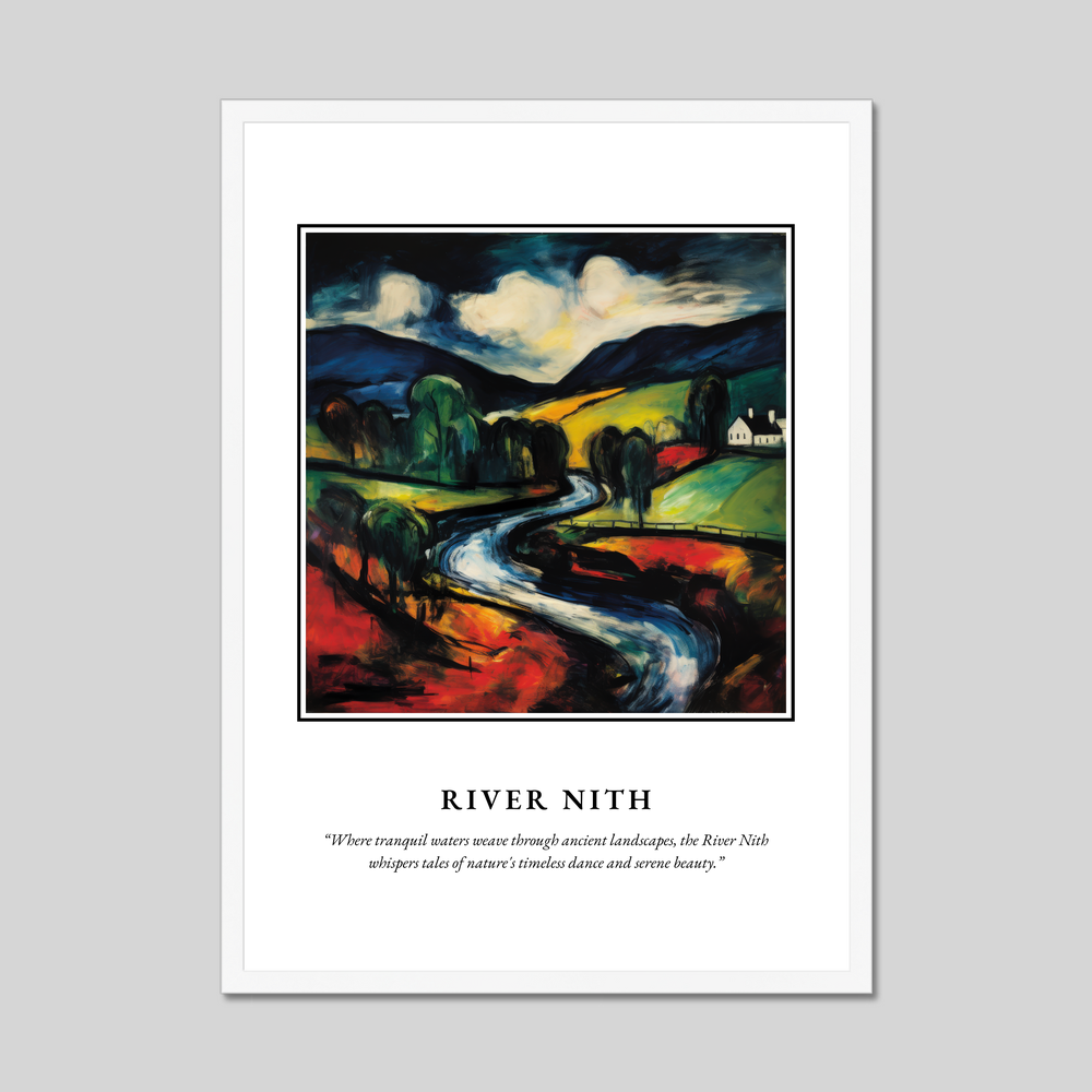 Below the painting, the quote “Where tranquil waters weave through ancient landscapes, the River Nith whispers tales of nature's timeless dance and serene beauty” serves as a poetic reminder of Scotland's majestic landscapes. This poster is an ideal acquisition for art lovers, Fauvism aficionados, or those with a deep connection to Scotland. Whether you’ve visited the River Nith, dream of its tranquil allure, or simply appreciate stunning artwork, this piece promises to be a cherished addition to your space.