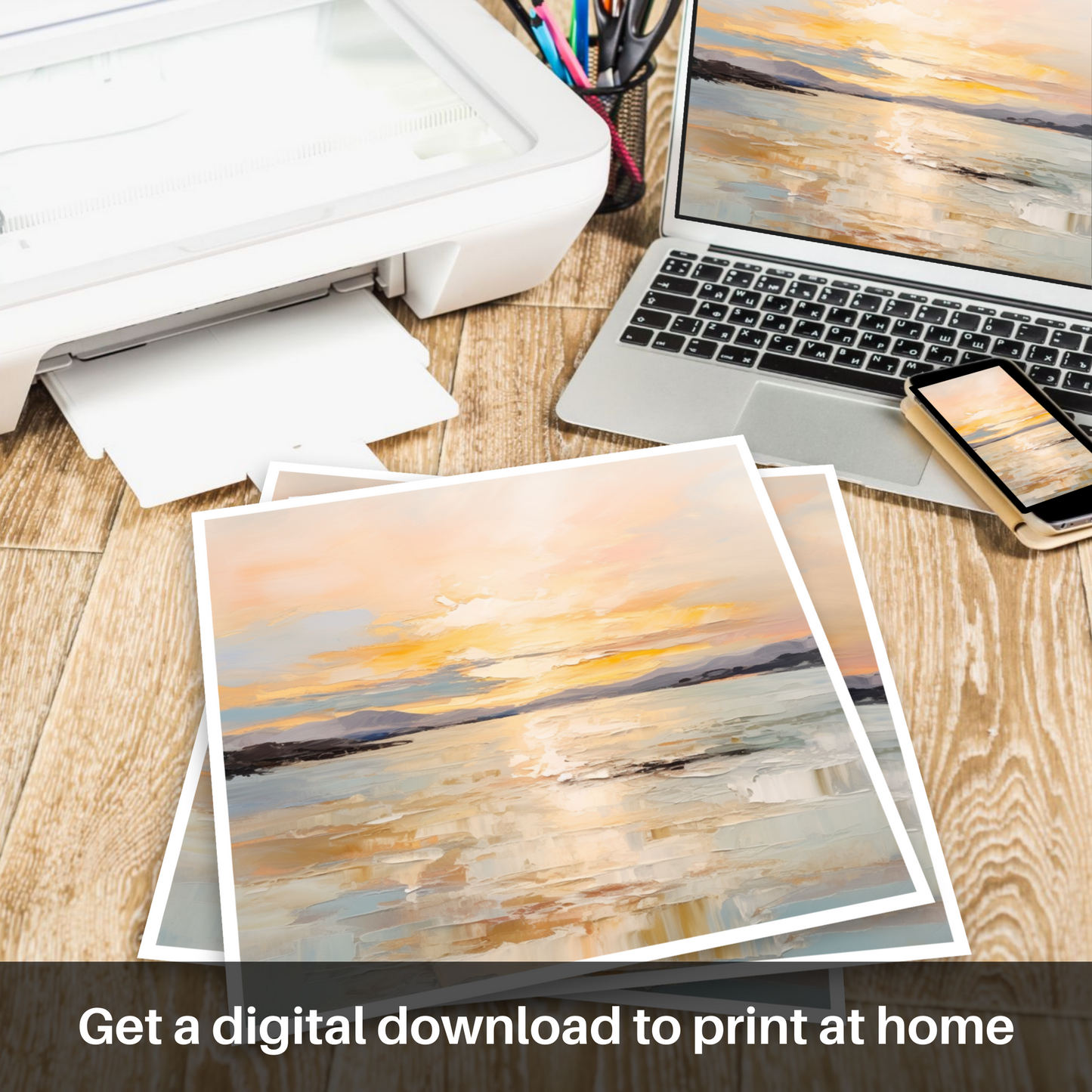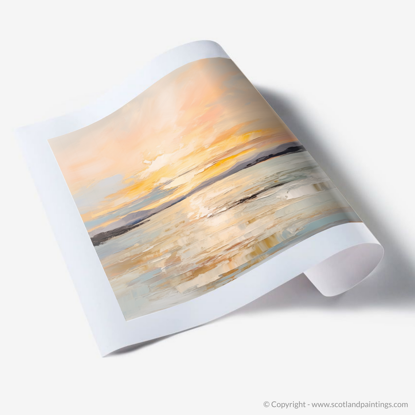 Immerse yourself in the serene beauty of Ardalanish Bay, captured at the moment when the day gives way to dusk. This evocative print transports viewers to the peaceful Scottish Cove, elegantly rendered through the understated grace of Minimalism. Subtle brushstrokes coax out the soft glow of the sunset, with warm hues of amber, gold, and rose suffusing the skies above and their reflections dancing on the tranquil waters below.
