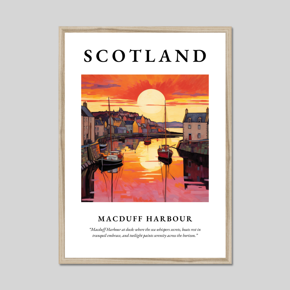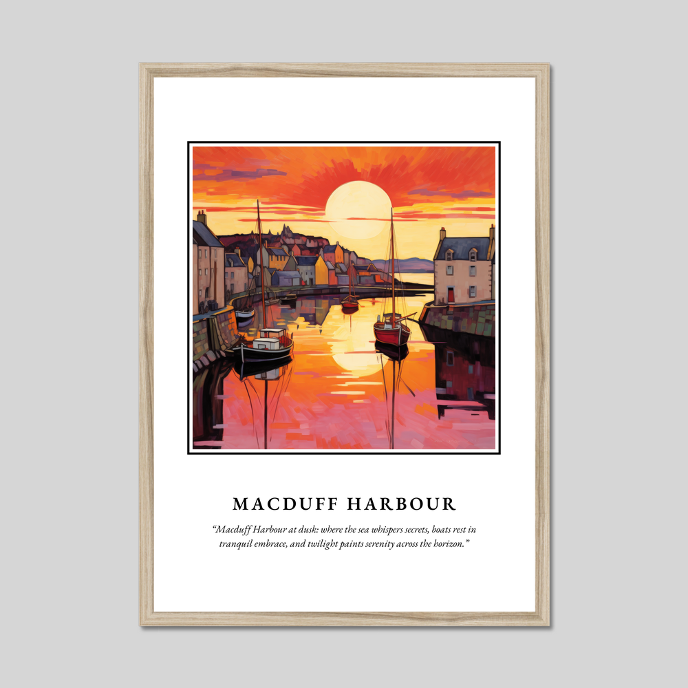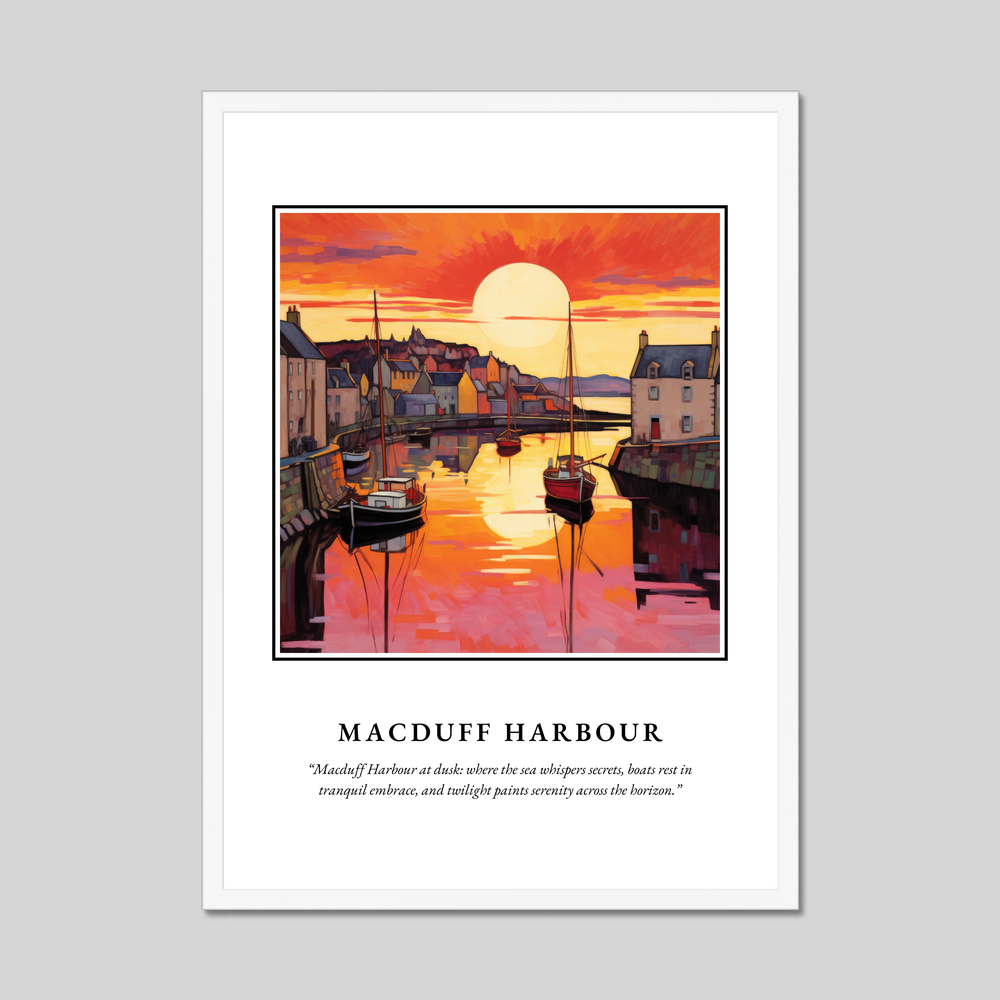 In this tranquil artwork, one can almost hear the distant call of the sea and feel the cool, gentle breeze of the Scottish evening. Whether you've wandered its docks or simply dream of visiting, Macduff Harbour offers a unique glimpse into Scotland's coastal life—making this framed print not only a piece of art but a journey to a place where serenity meets the sea.