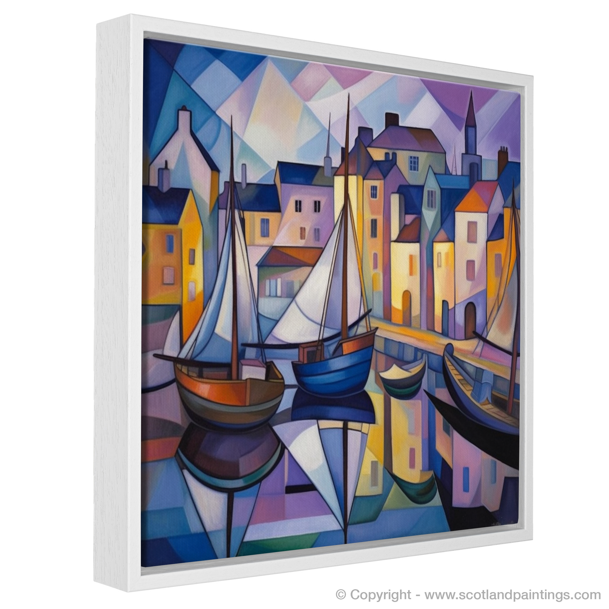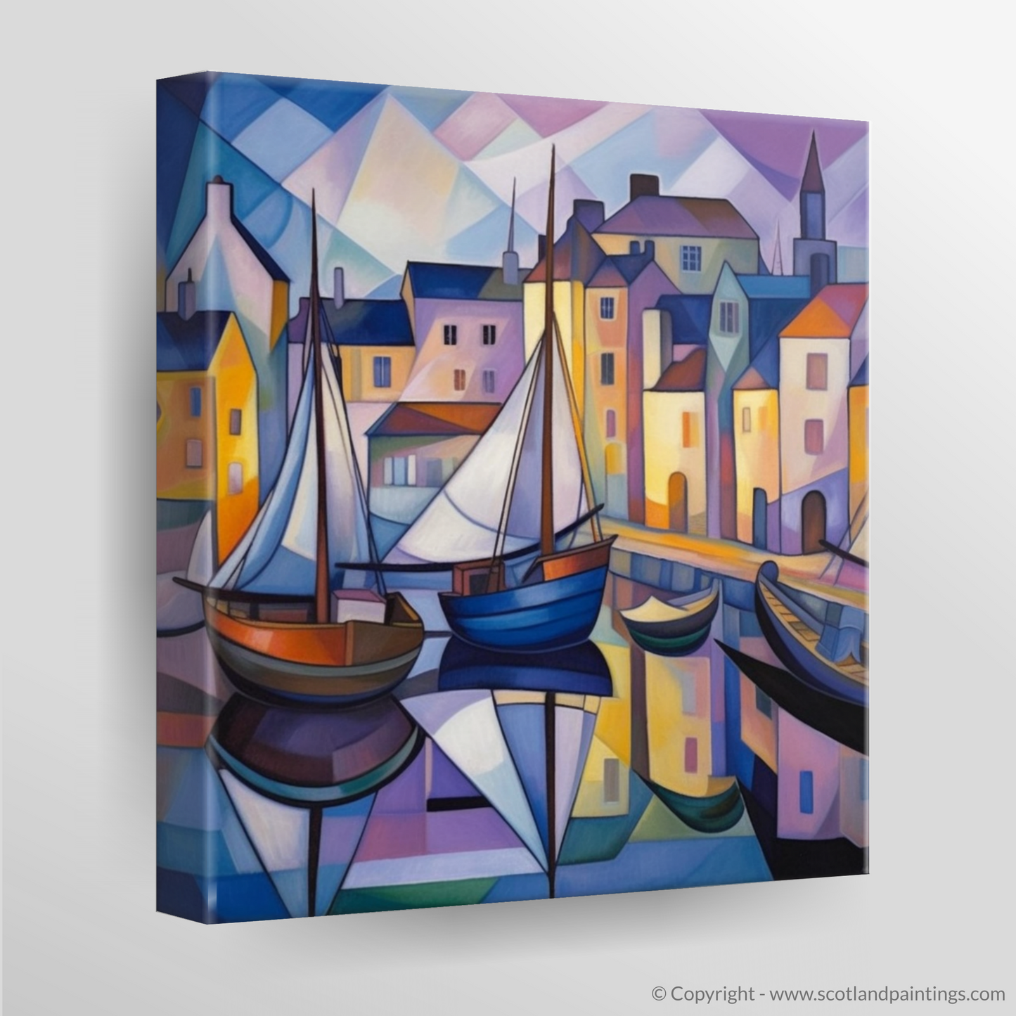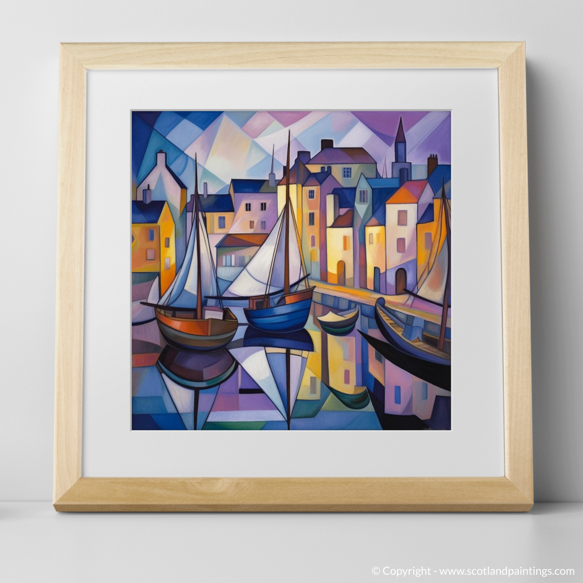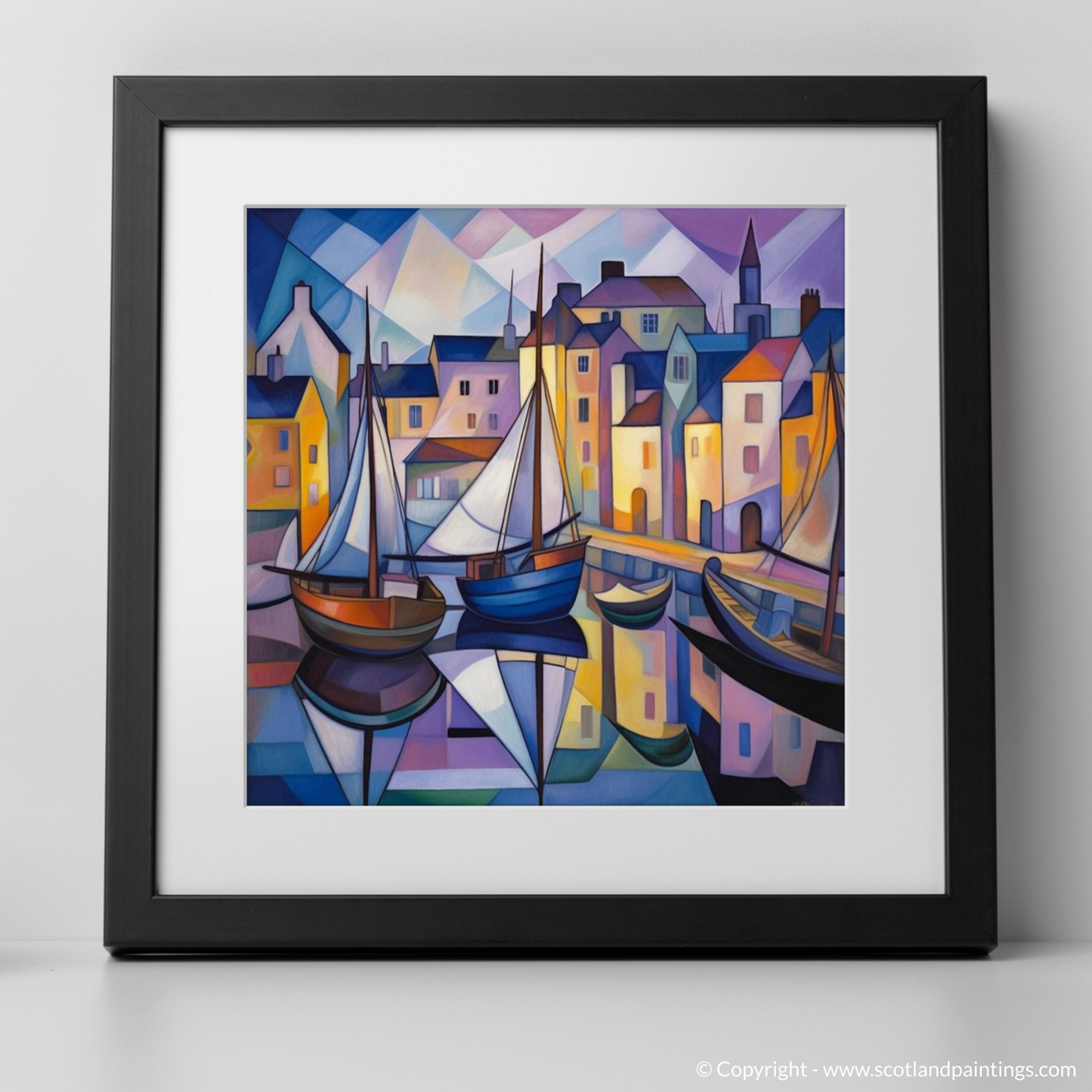 Escape into the geometric embrace of Cromarty Harbour at dusk, where shapes and colours converge in a symphony of cubist charm. This exquisite print brings to life the serene Scottish waterside with an avant-garde twist, offering a visually stimulating portrayal of the historic harbour. In this masterful depiction, angular lines dissect the scene, creating dynamic and abstract forms that imbue the tranquil setting with a palpable energy.