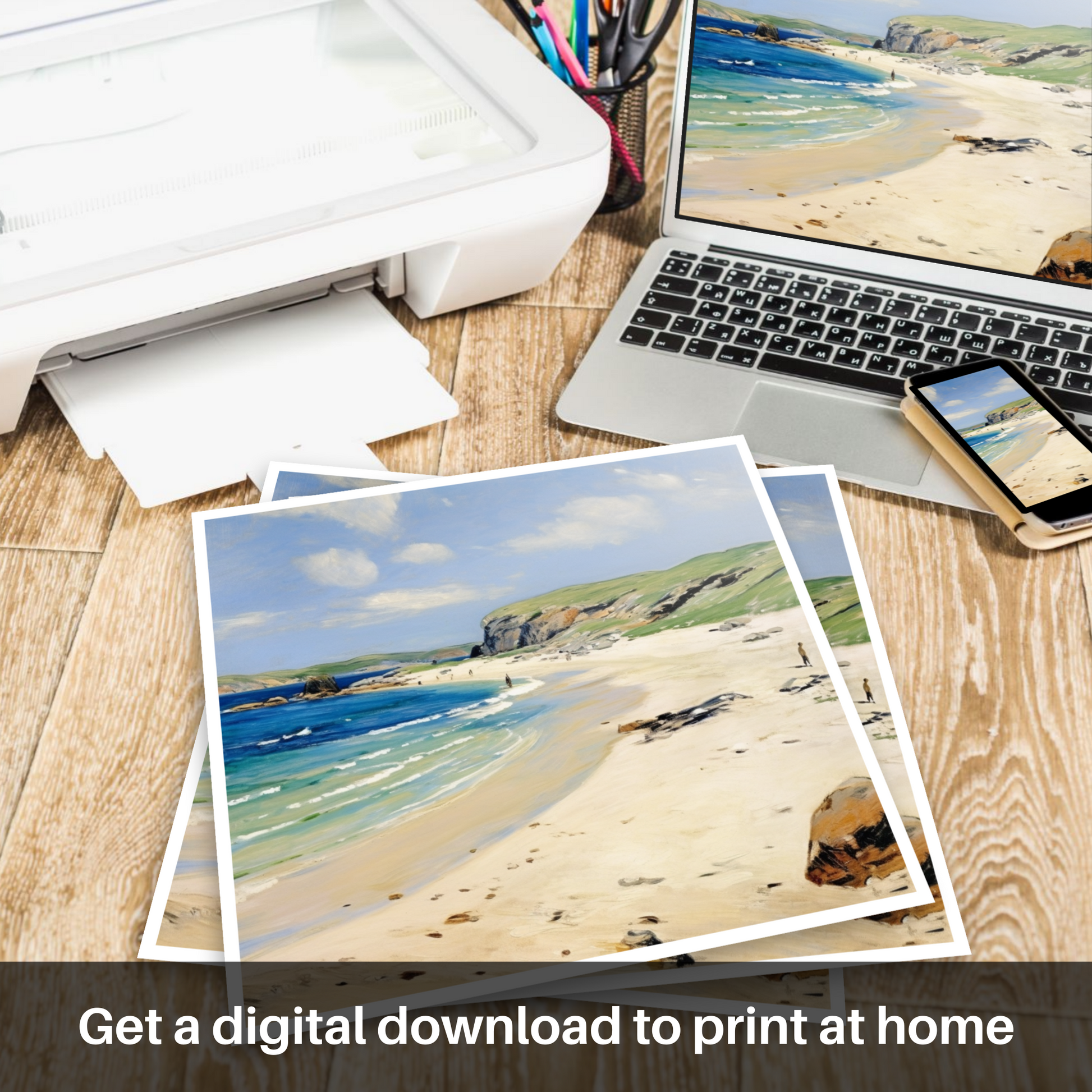 This impressionistic print from our 'Scottish Beaches' collection is a celebration of nature's untouched splendour and the timeless allure of Scotland's shores. Invite the spirit of Sandwood Bay into your space, and let the peaceful essence of this enchanting coastal retreat resonate through your home.