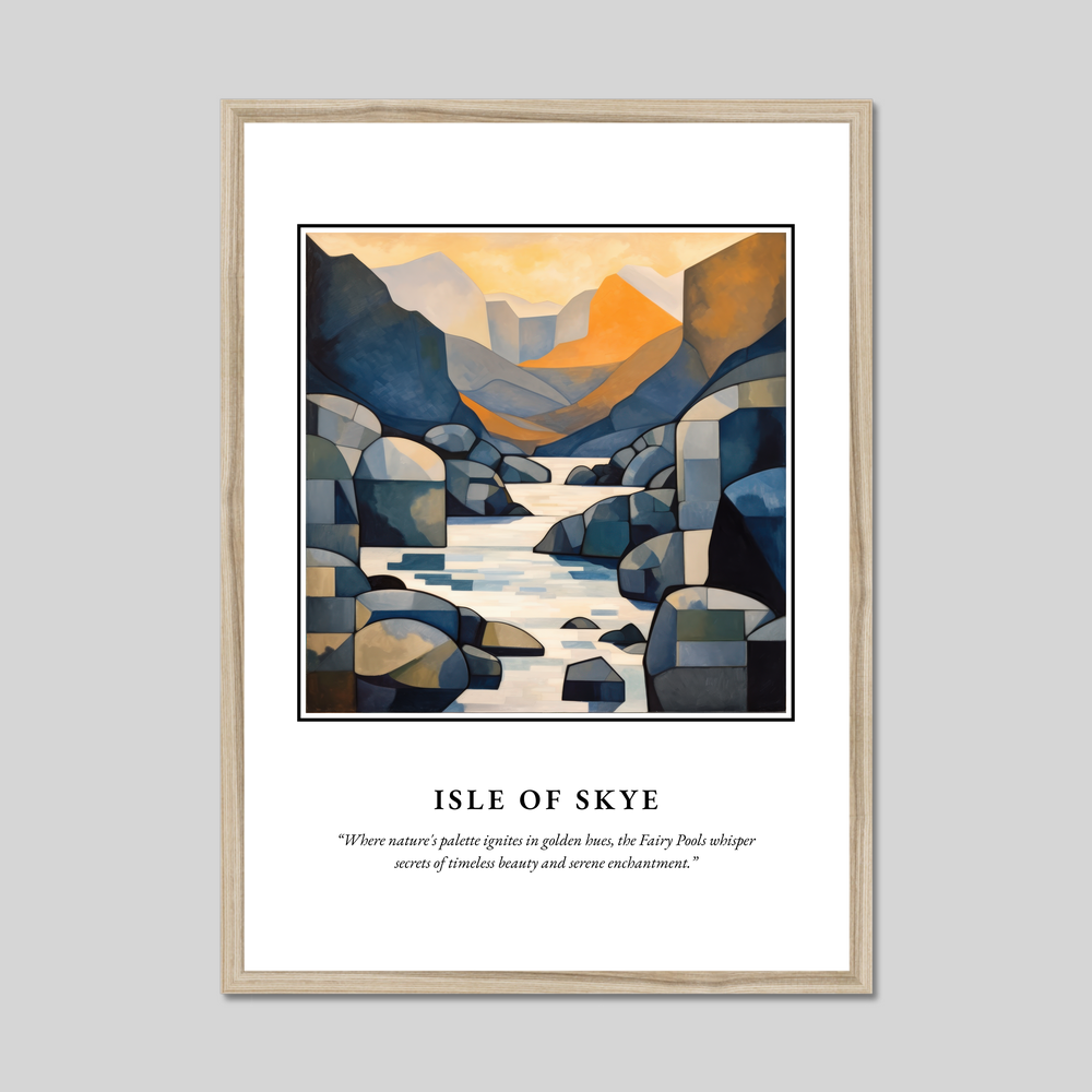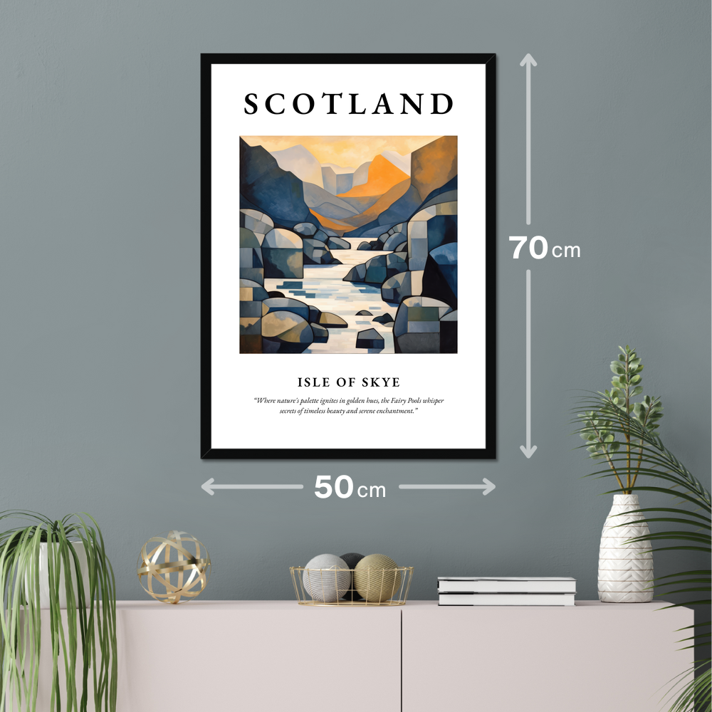 Bring a touch of Scotland's rugged beauty into your home with our stunning framed poster print, a striking tribute to the Isle of Skye. Standing at an impressive 50cm x 70cm, this large, vibrant piece transforms any room, making a grand statement without stretching your budget. Available in a choice of sleek black, crisp white, or a charming natural wood-effect frame, it effortlessly complements any decor.