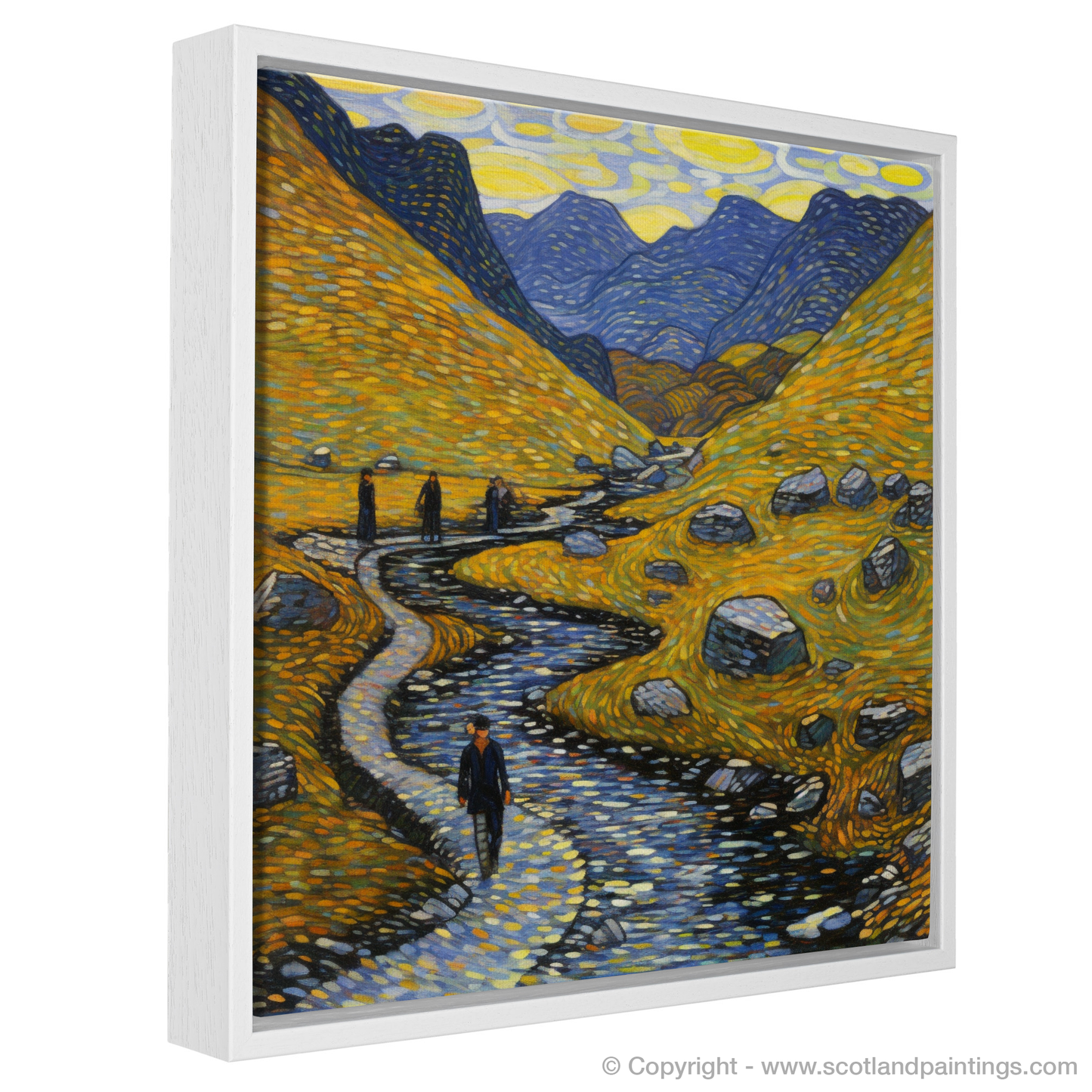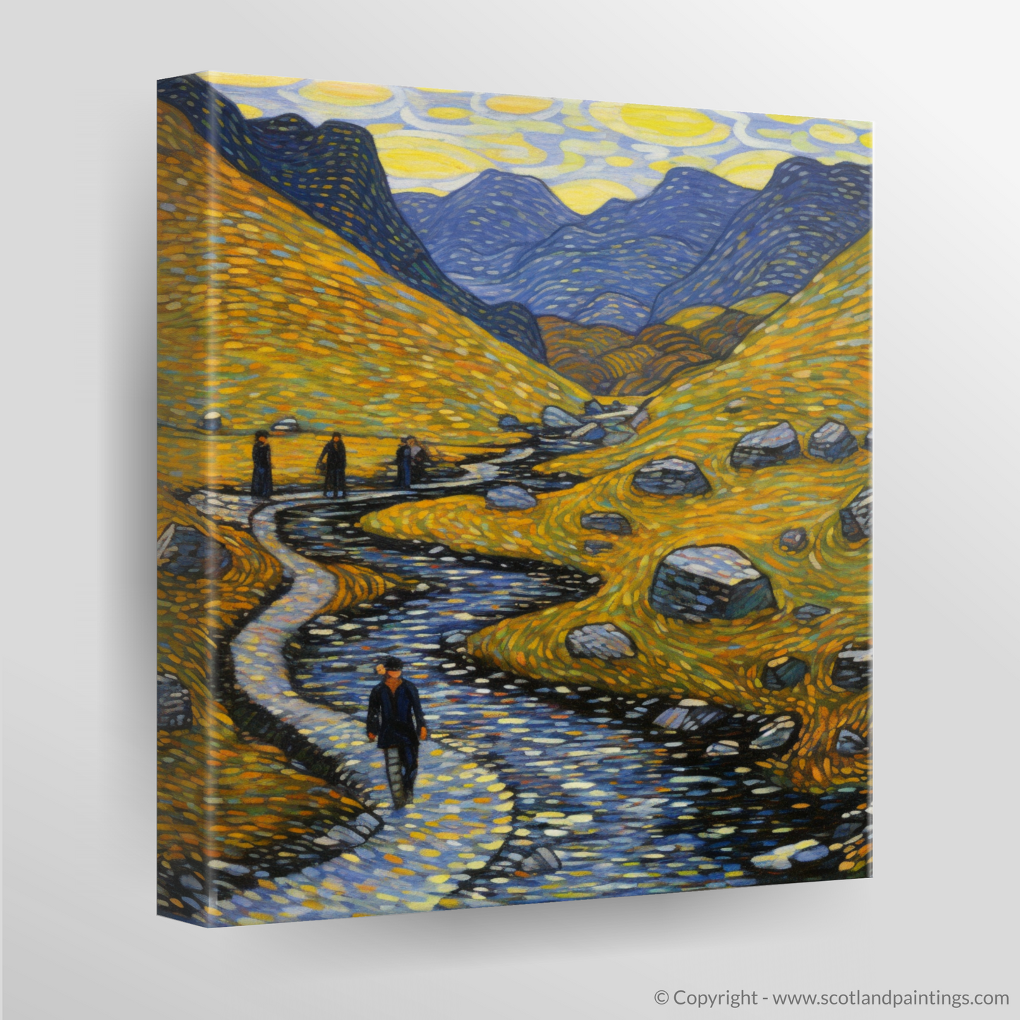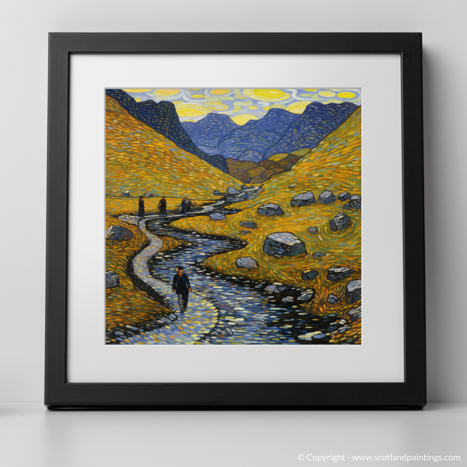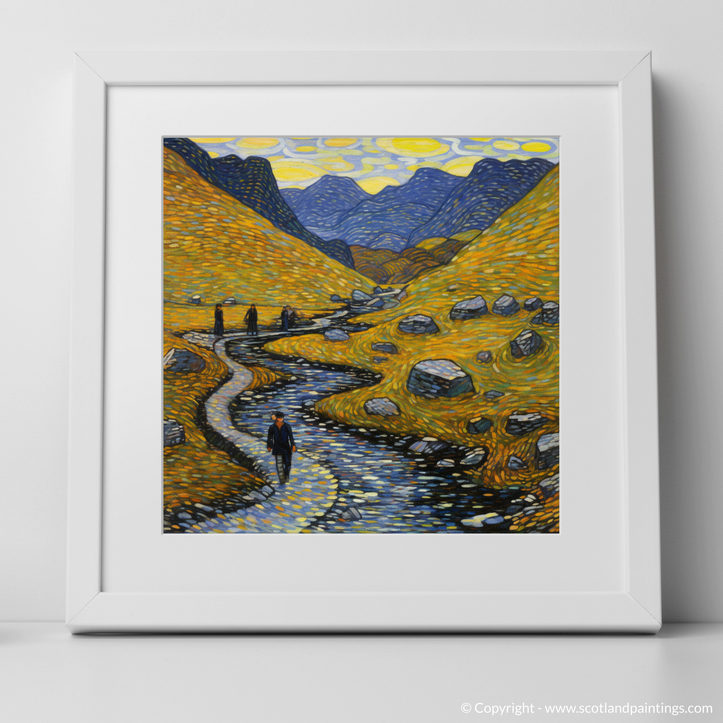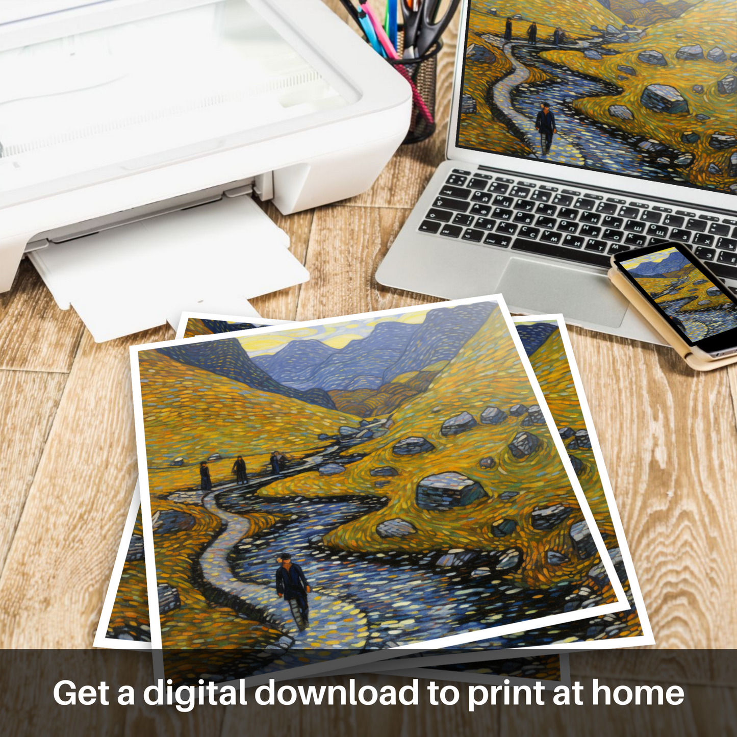 Immerse yourself in the enchanting atmosphere of the Scottish Highlands with this exquisite print inspired by the idyllic Fairy Pools on the Isle of Skye. The scene is rendered with the inspired touch of Art Nouveau, inviting the observer to a world where nature's fluid forms and vibrant patterns are celebrated.