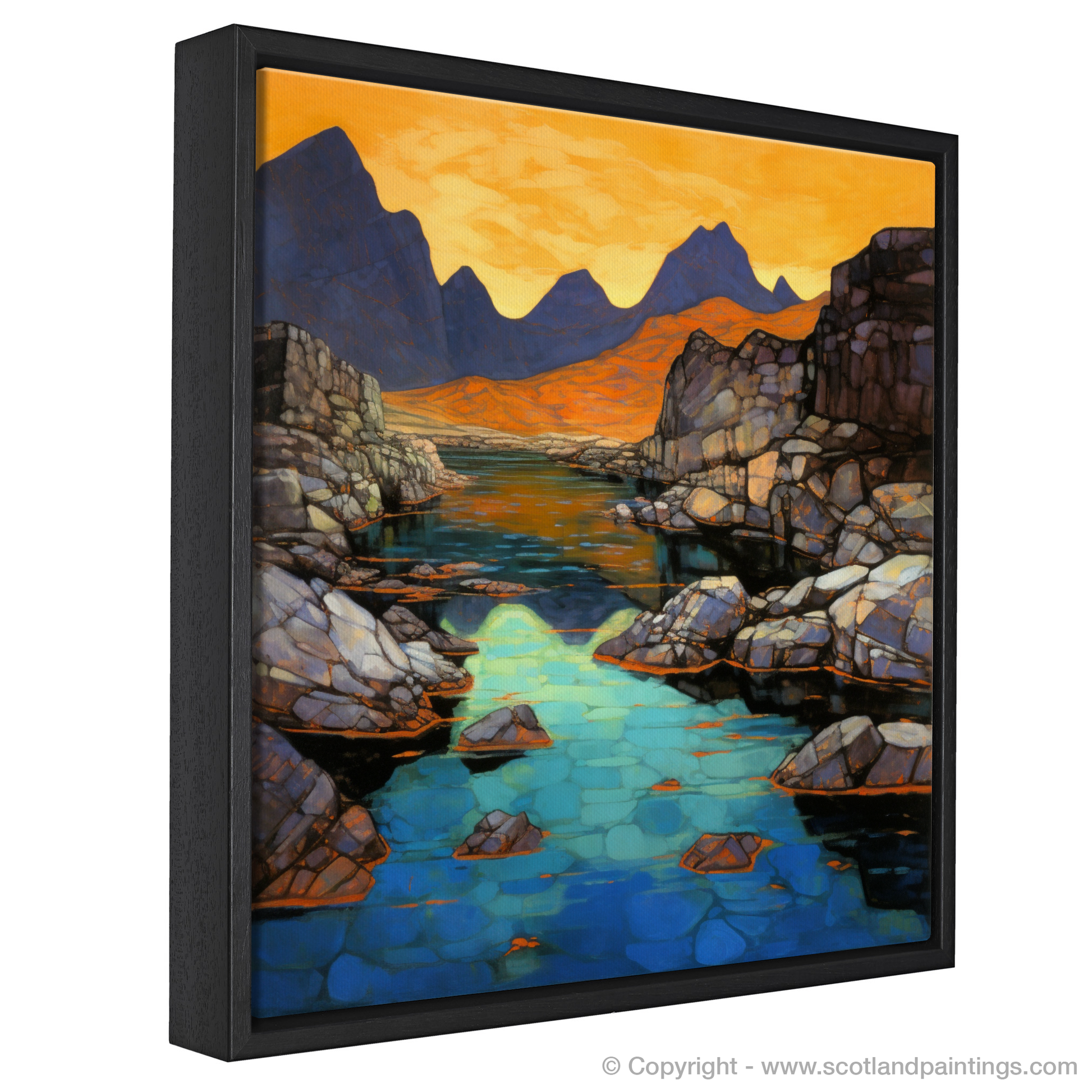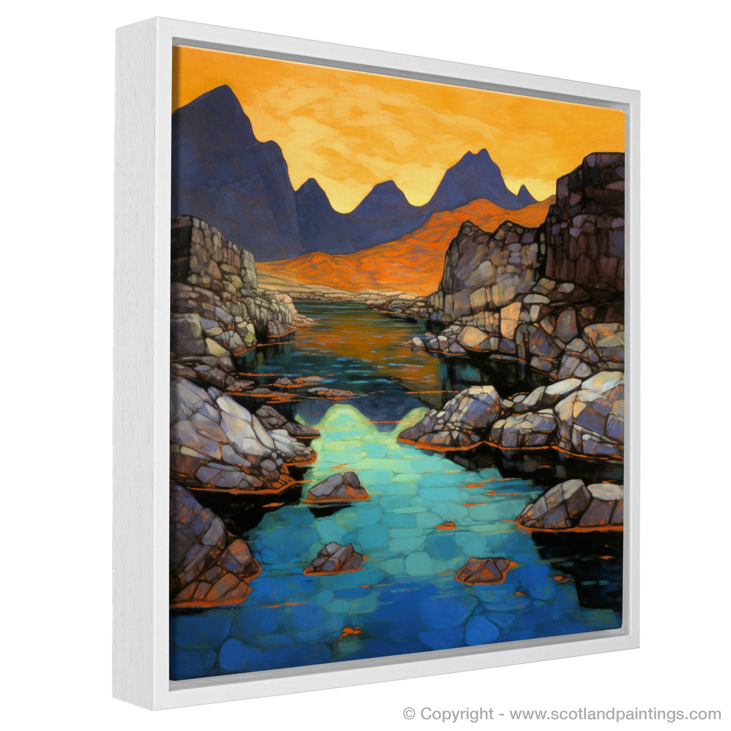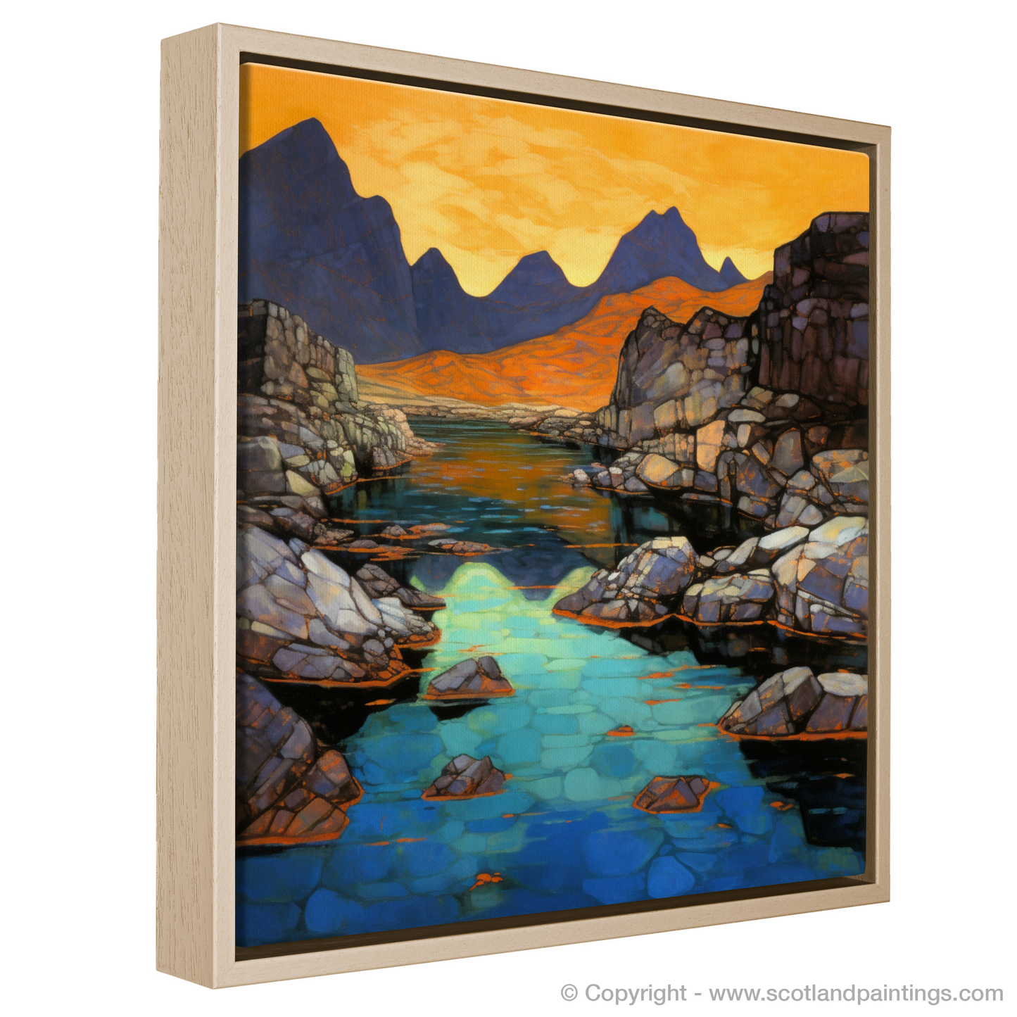 Immerse yourself in the enchanted ambience of the Isle of Skye's Fairy Pools with this exquisite print, basking in the serene glow of the golden hour. Captured in a striking Art Nouveau style, the print offers a mesmerising vista of one of Scotland's most breathtaking natural landscapes, brought to life with an otherworldly allure.