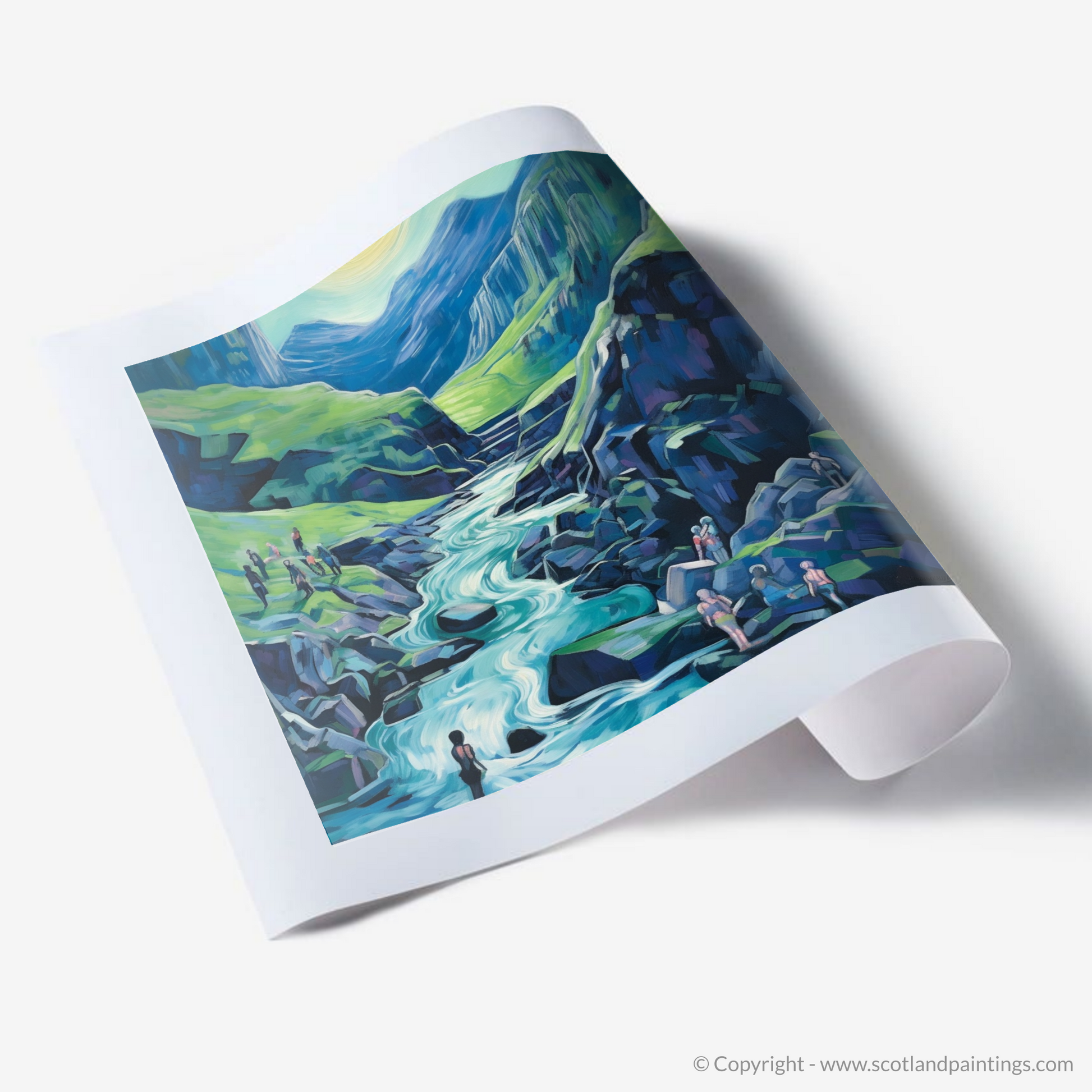Embark on a visual journey to the Scottish isles where the vibrant hues of the Fairy Pools of the Isle of Skye come alive in lush, exaggerated colours, beckoning the explorer within. This exquisite print captures an idyllic scene reminiscent of the Fauvist movement, where untamed brushwork and bold shades free the landscape from the constraints of realism.