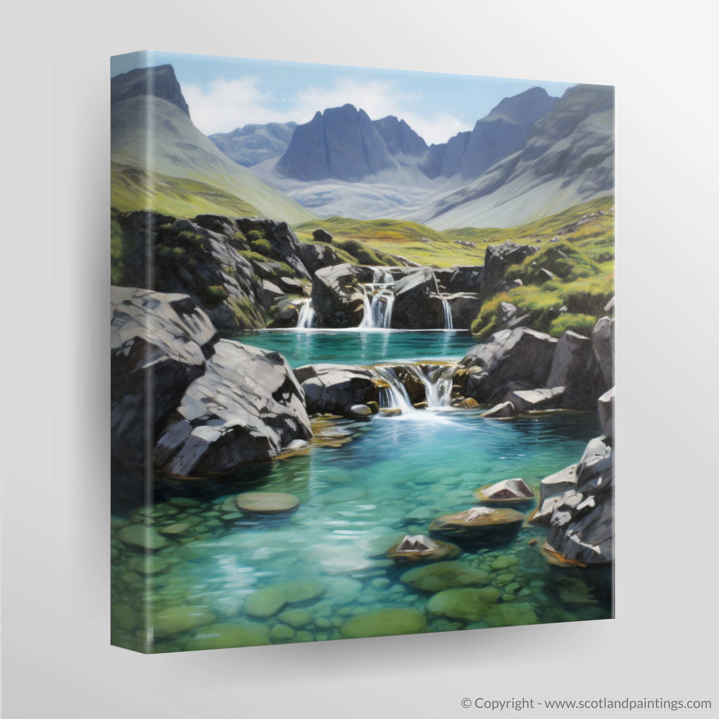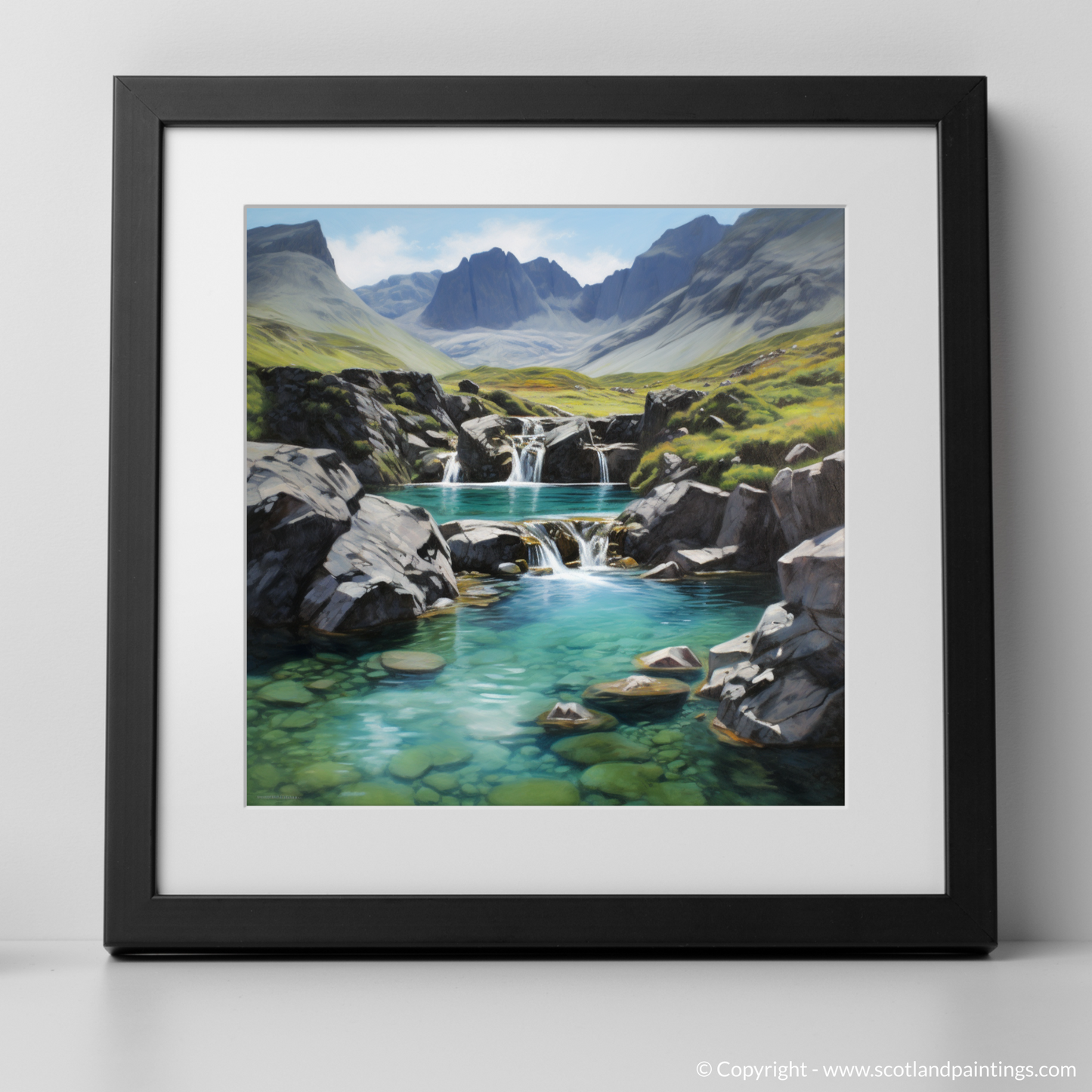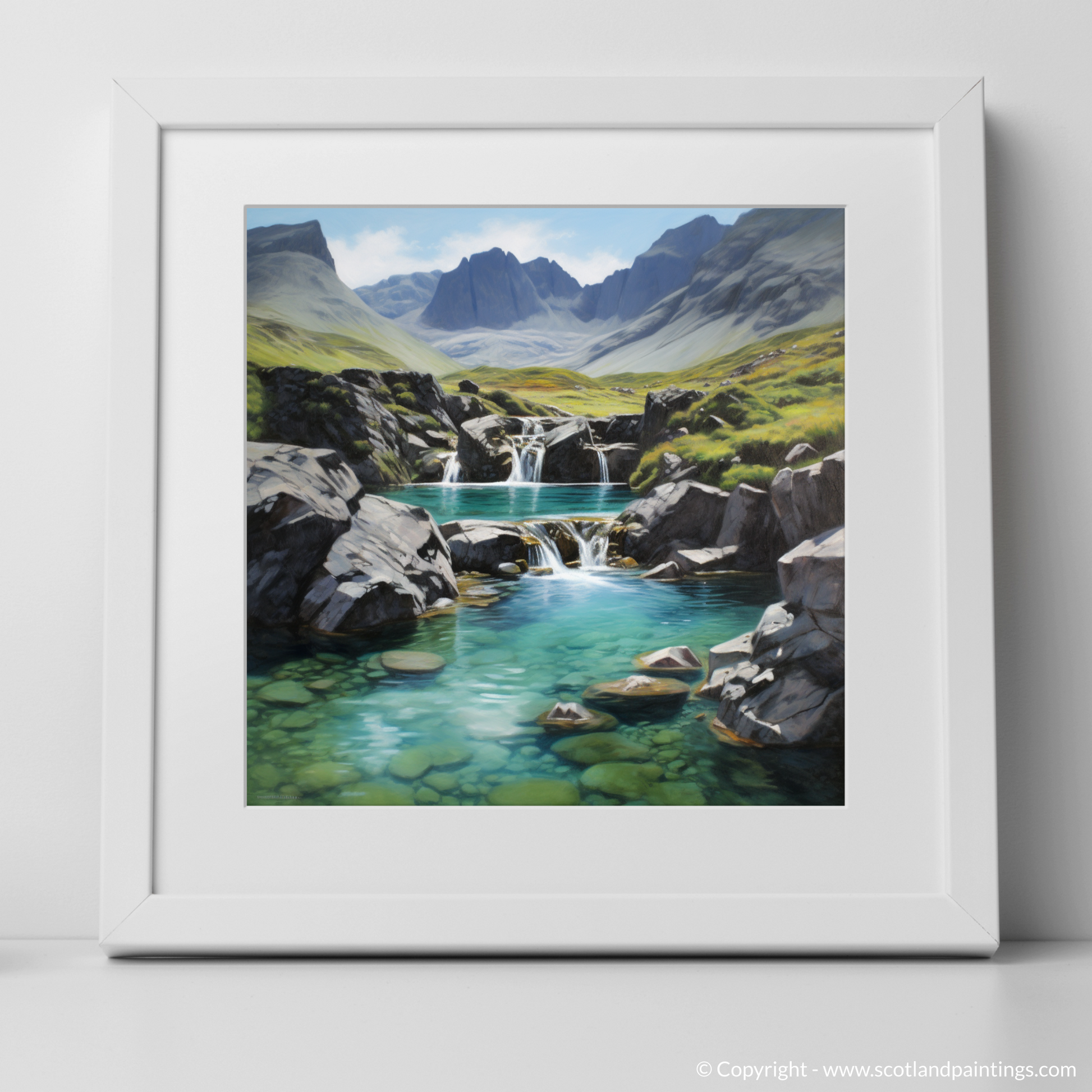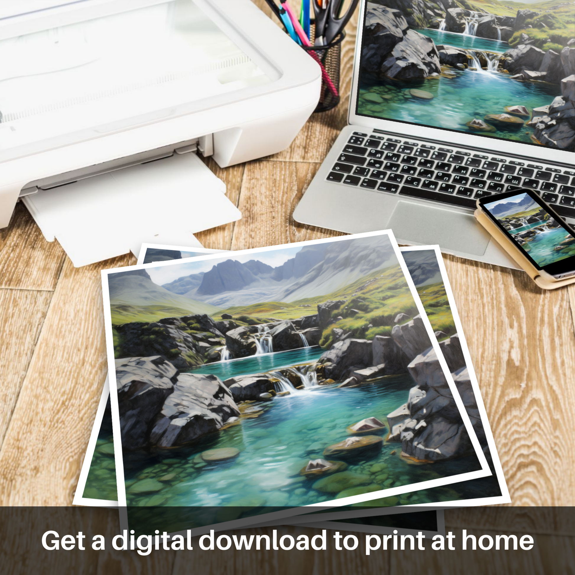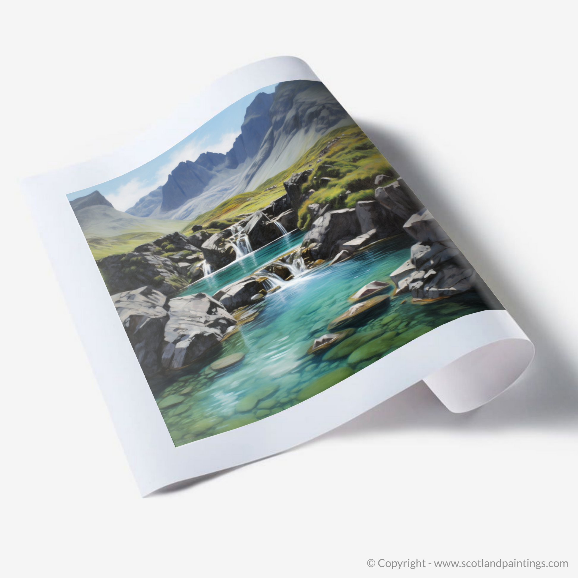 Immerse yourself in the serene beauty of the Isle of Skye with this enchanting impressionistic portrayal of The Fairy Pools. This exquisite print captures the mystical allure of Skye's famed natural wonder, inviting the viewer to a world where nature's artistry reigns supreme.