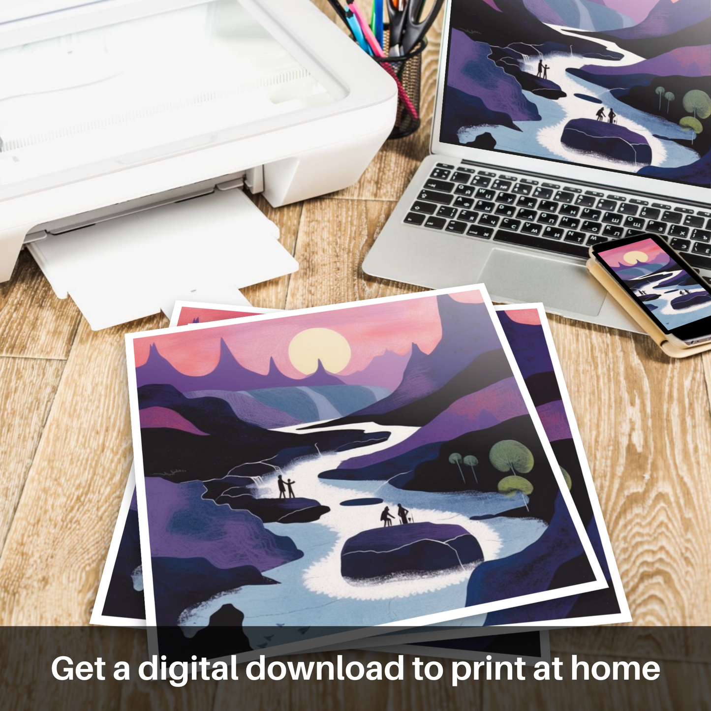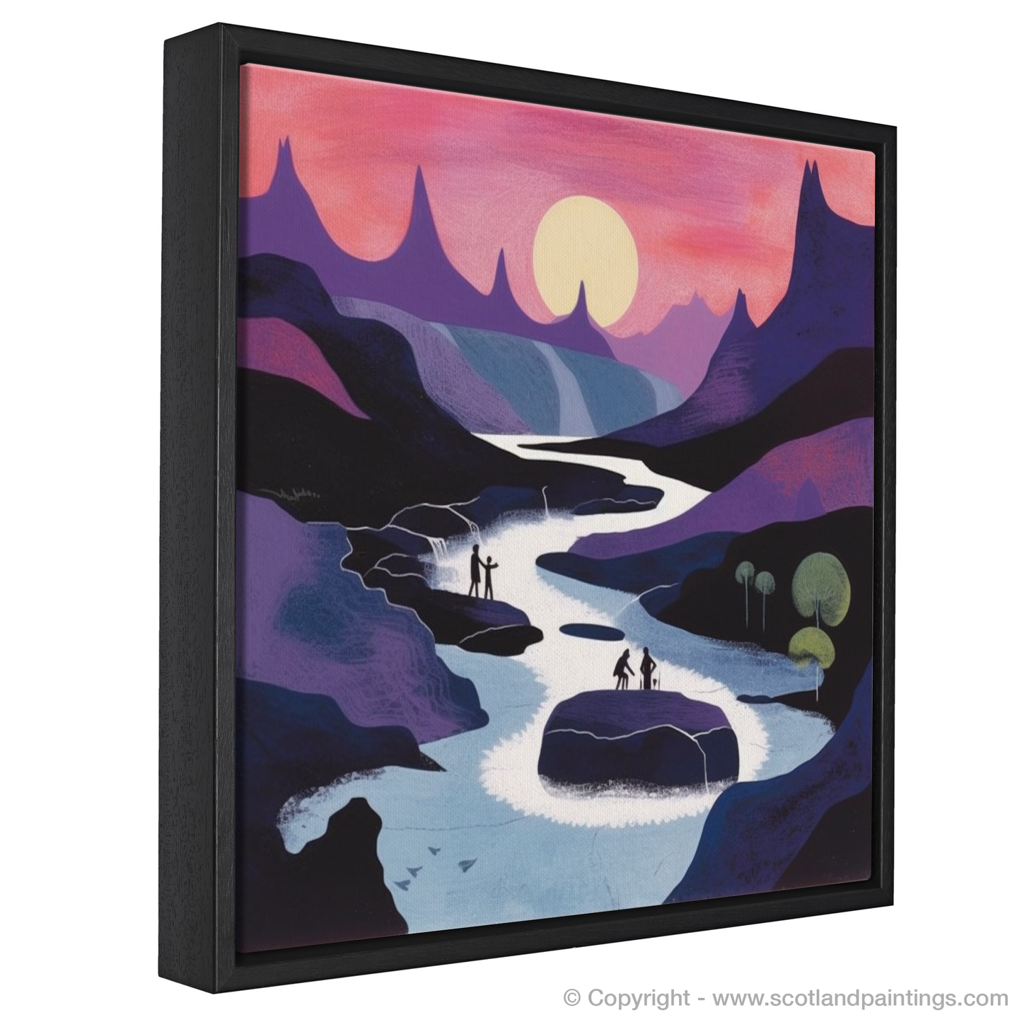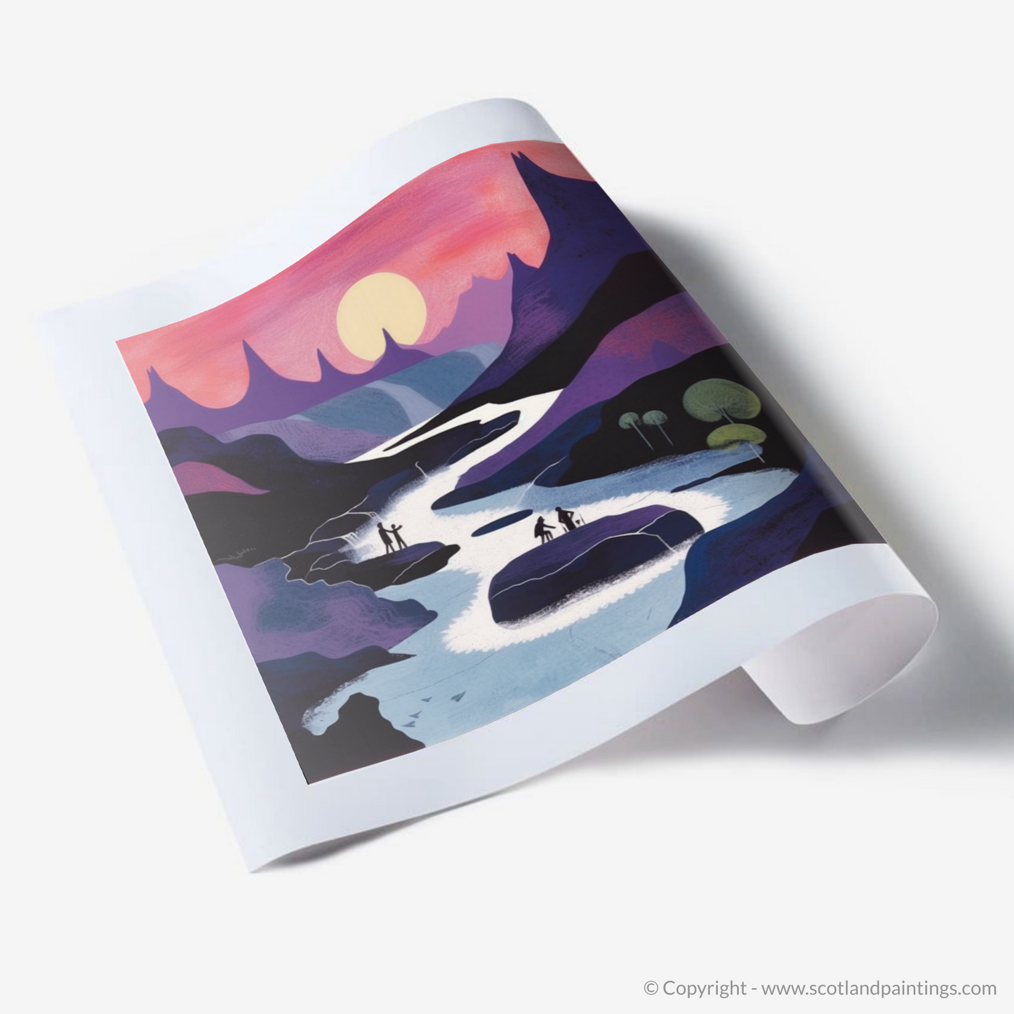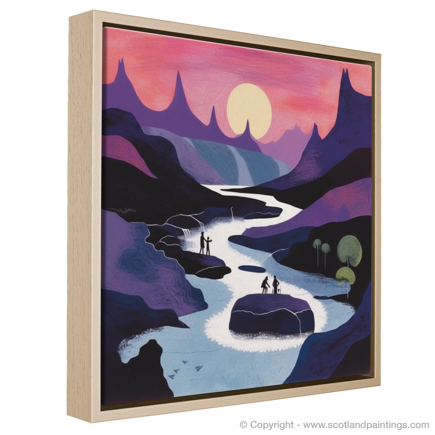 Capture the enchanting serenity of the Isle of Skye's Fairy Pools with this captivating print, which exudes the charm and simplicity of naive art. Embrace the tranquil beauty of Scotland's natural wonders through bold colour palettes and a playful perspective.