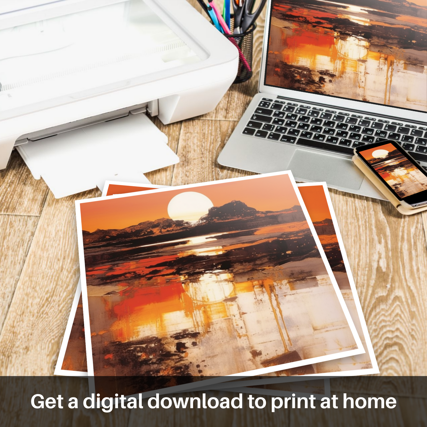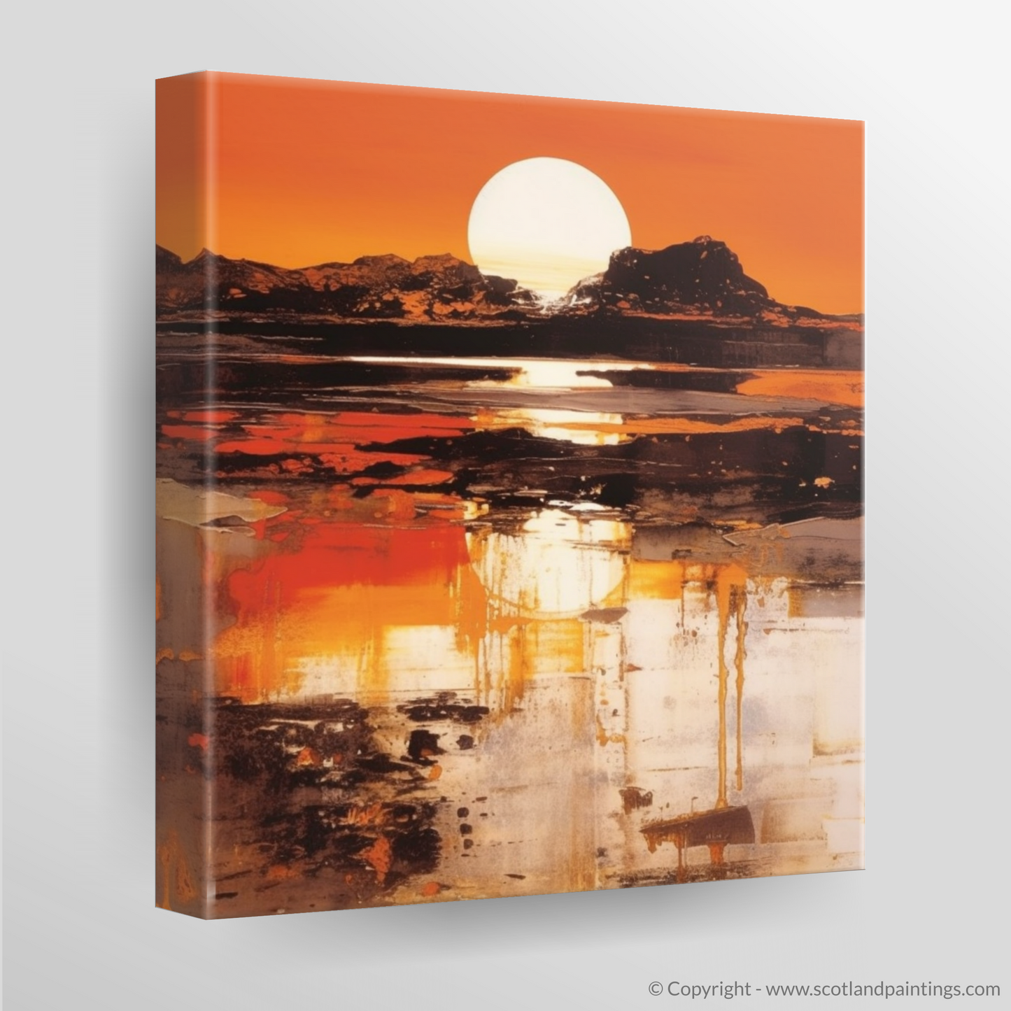 Let the warmth of a radiant Scottish sunset embrace your space with this striking print, inspired by the enchanting Silver Sands of Morar. It captures the magic of golden hour, where the world seems to pause and bask in the amber glow of the setting sun. Bold with a distinctive pop art flair, this piece brings the drama of the bold Morar landscape to striking life.