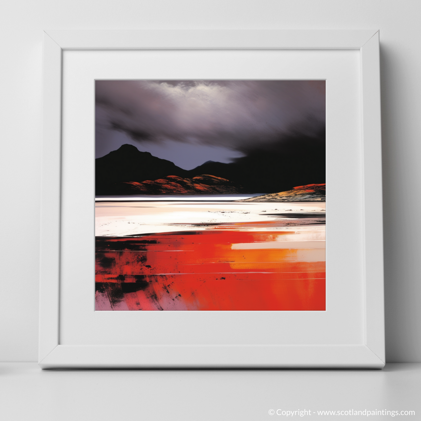 Immerse your senses in the vivid hues and dynamic atmosphere captured in this striking piece inspired by the iconic Silver Sands of Morar. Blending the boundary between land and sky, the artwork depicts an emotionally charged scene where the wild spirit of Scotland’s coast is poignantly framed.
