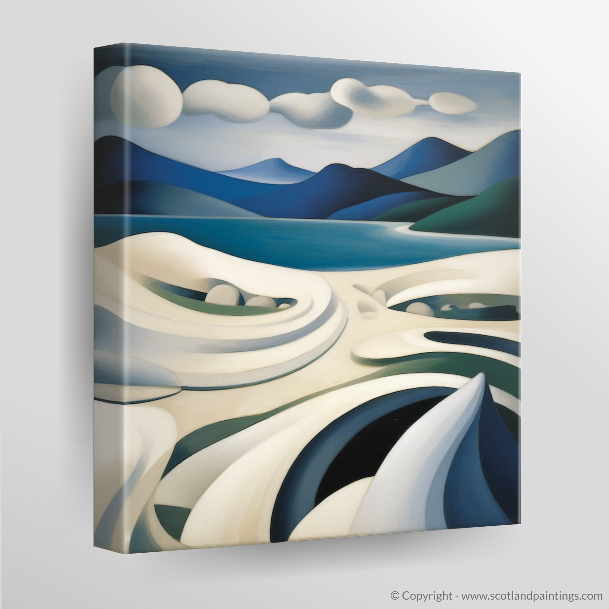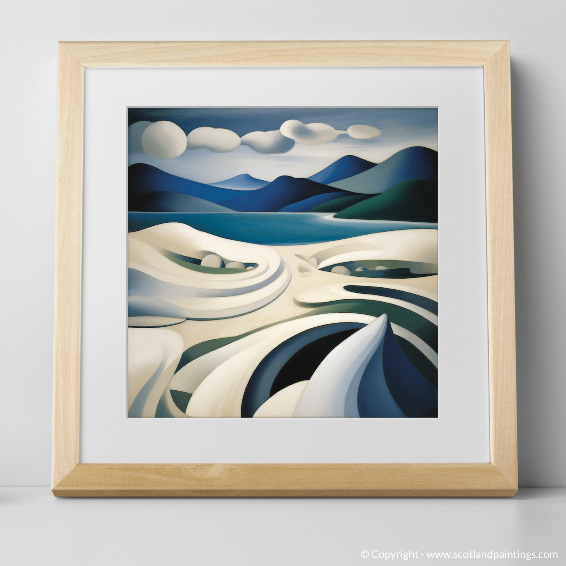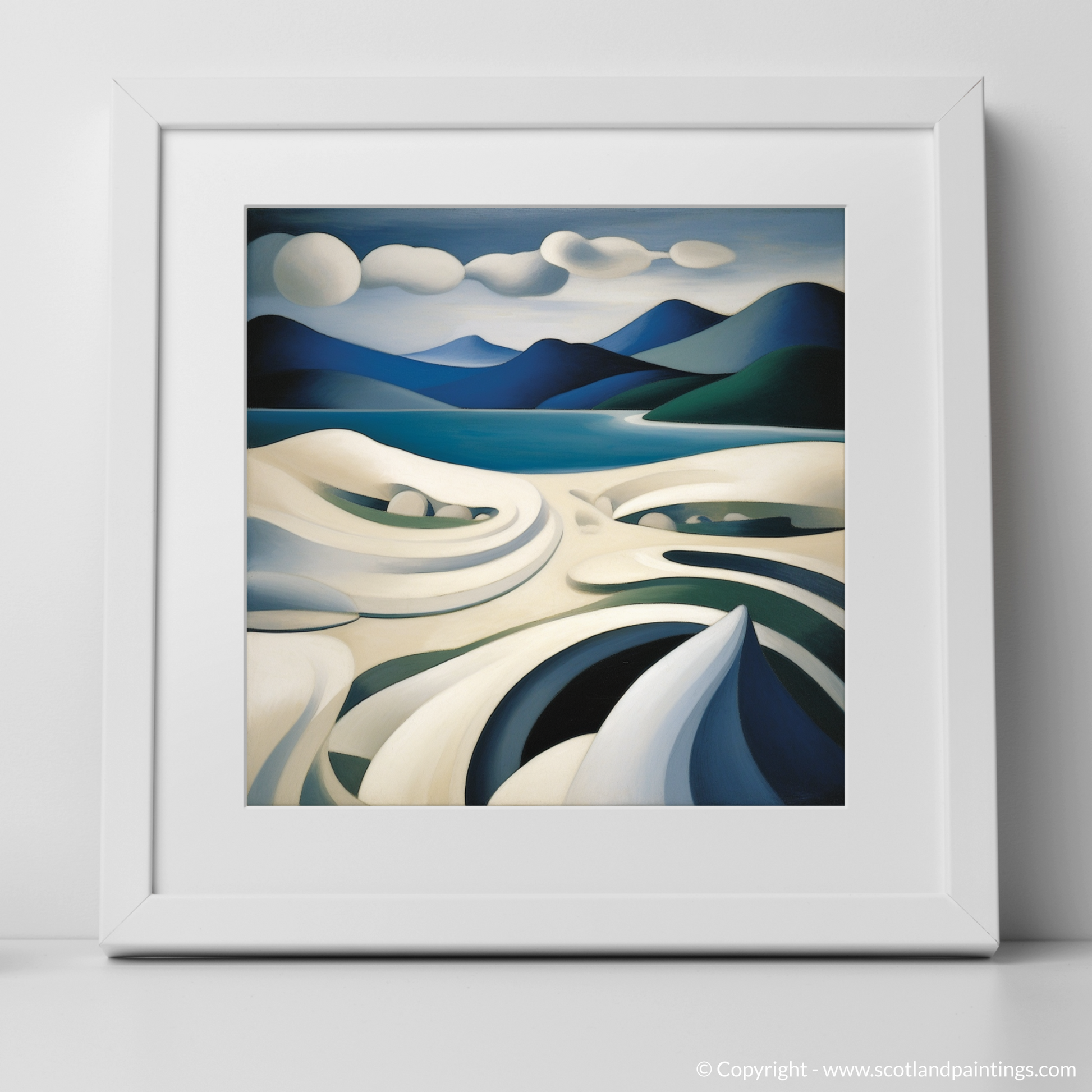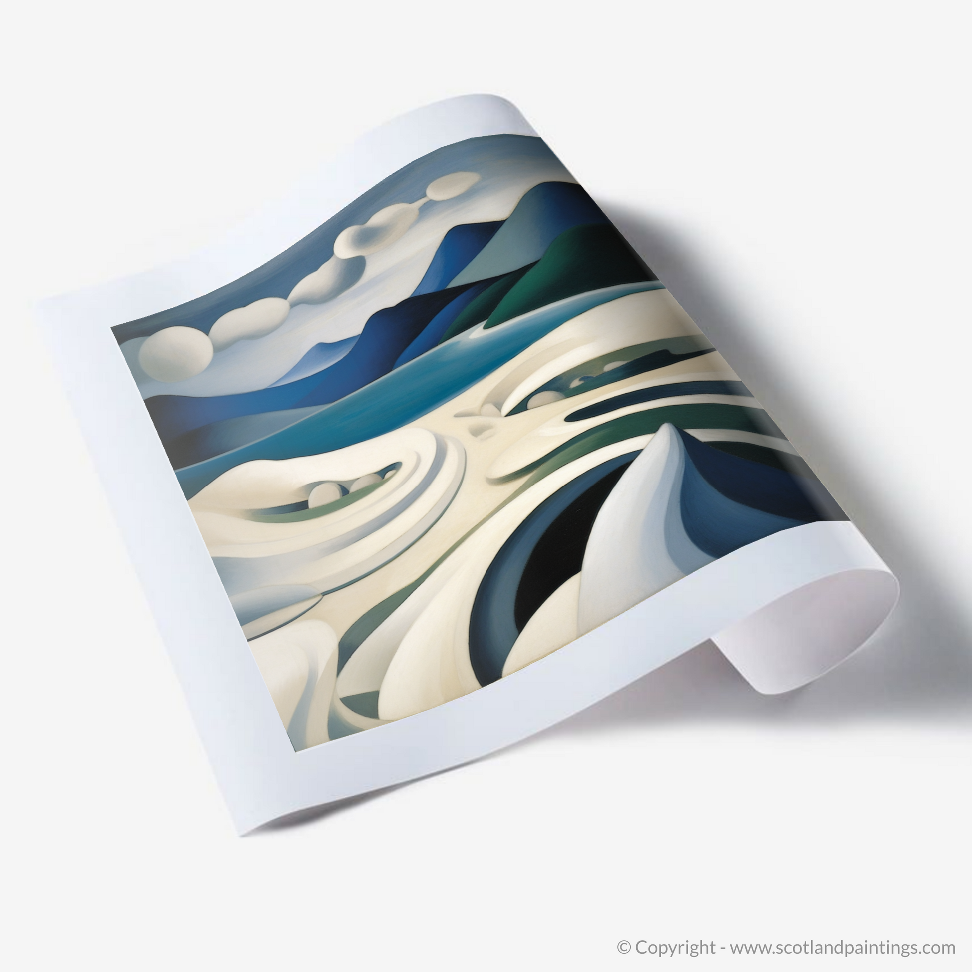 Immerse yourself in the stirring tranquility of our abstract portrayal inspired by the Silver Sands of Morar, a jewel nestled along the windswept coast of Scotland. The soothing symphony of curvilinear forms encapsulates the essence of this blissful beachscape, where the unrefined beauty of nature is distilled into a serene canvas.