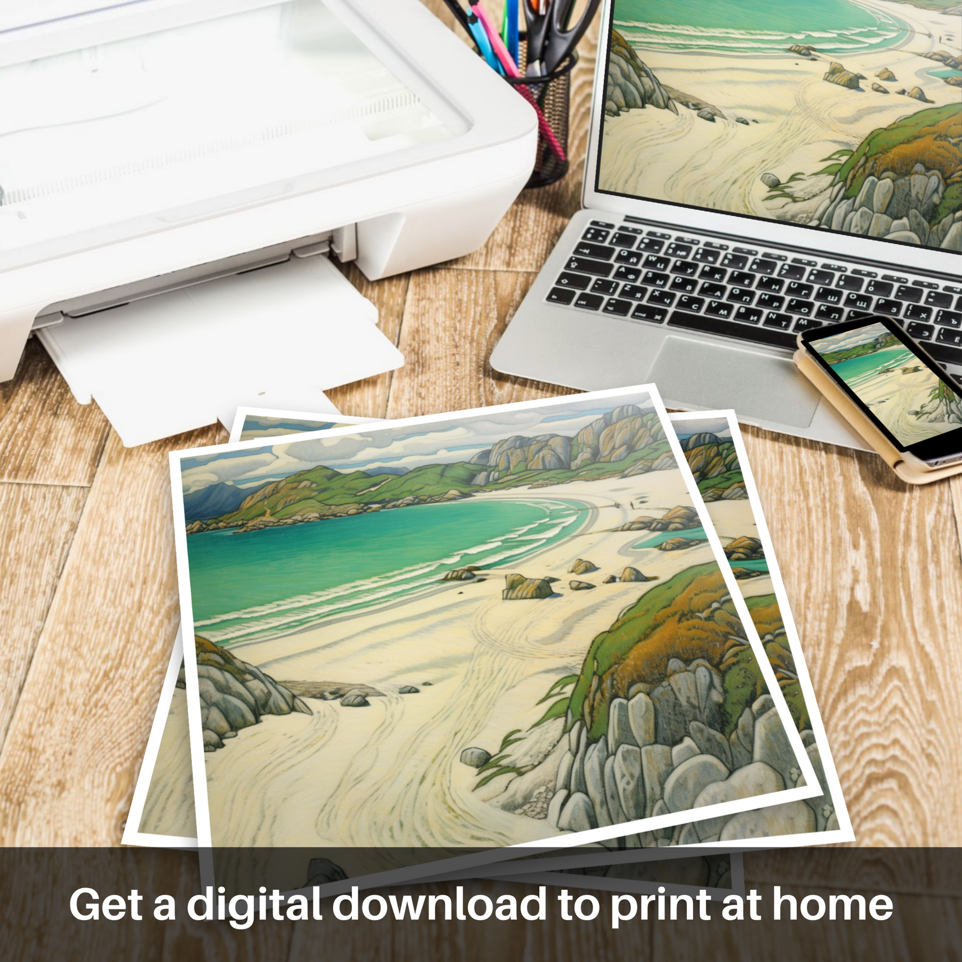 Adding this print to your space means inviting a breath of Scottish seaside air into your home, a reminder of nature's quiet grandeur and the timeless allure of its landscapes. Whether you’ve strolled these shores yourself or simply long to capture their essence, this print serves as a joyful celebration of Scotland's natural beauty and the unassuming charm embedded within its beaches.