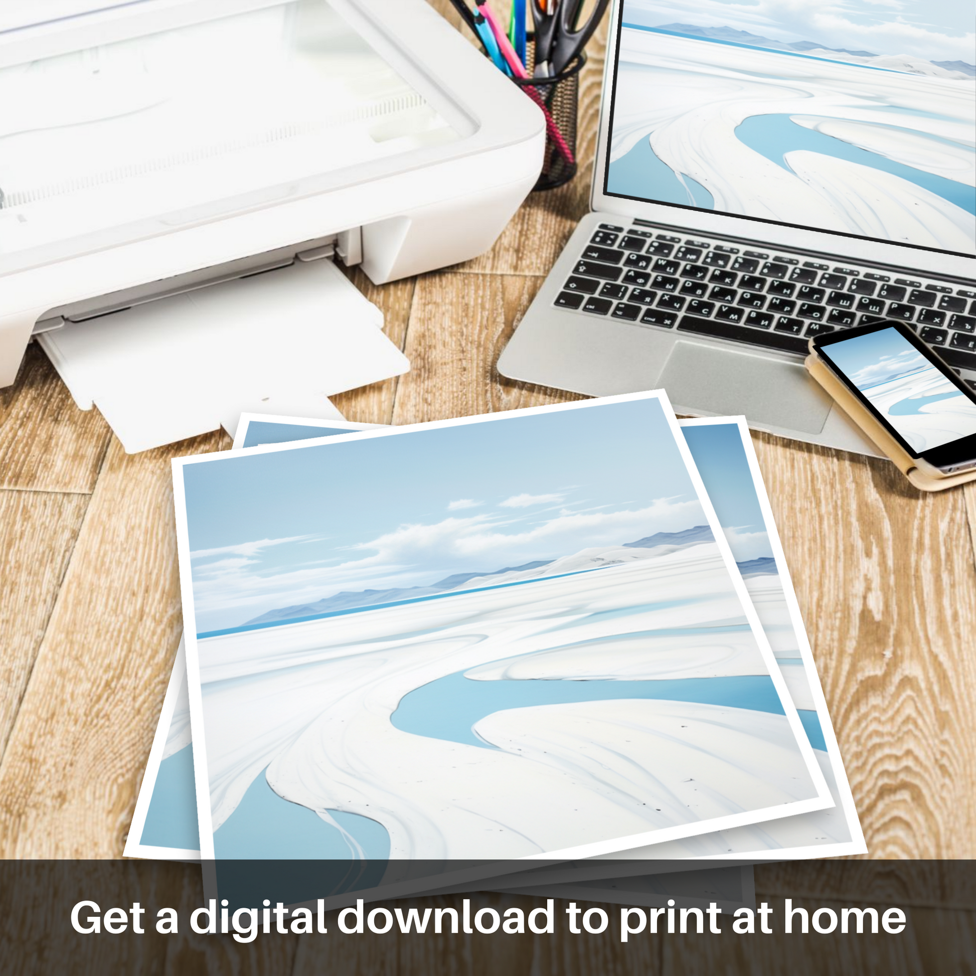 Capturing the serene essence of the Silver Sands of Morar, this elegant print brings a slice of the Scottish coastline’s tranquility into your space. The artwork’s minimalistic approach distills the landscape’s panorama into its purest form, delivering a calming, uncluttered aesthetic that invites contemplation.