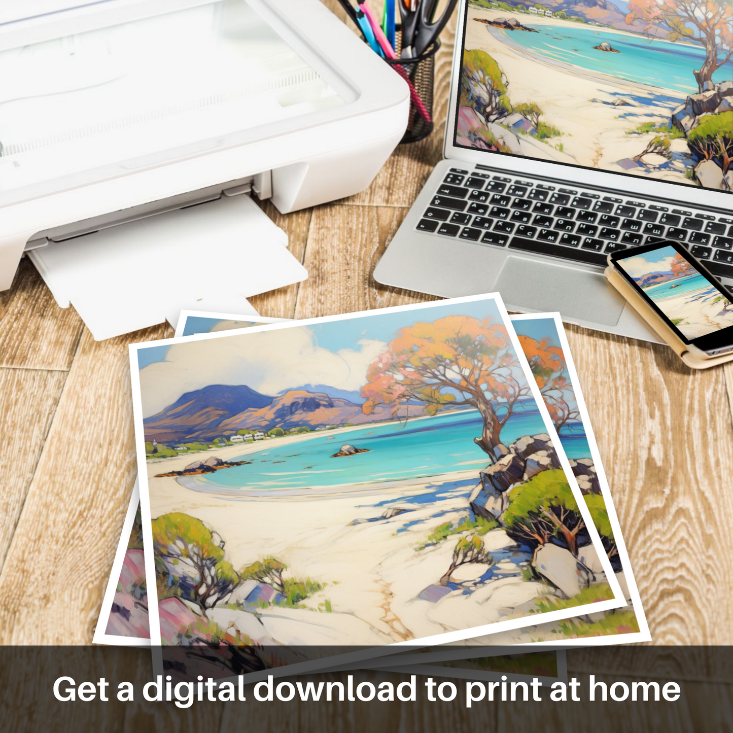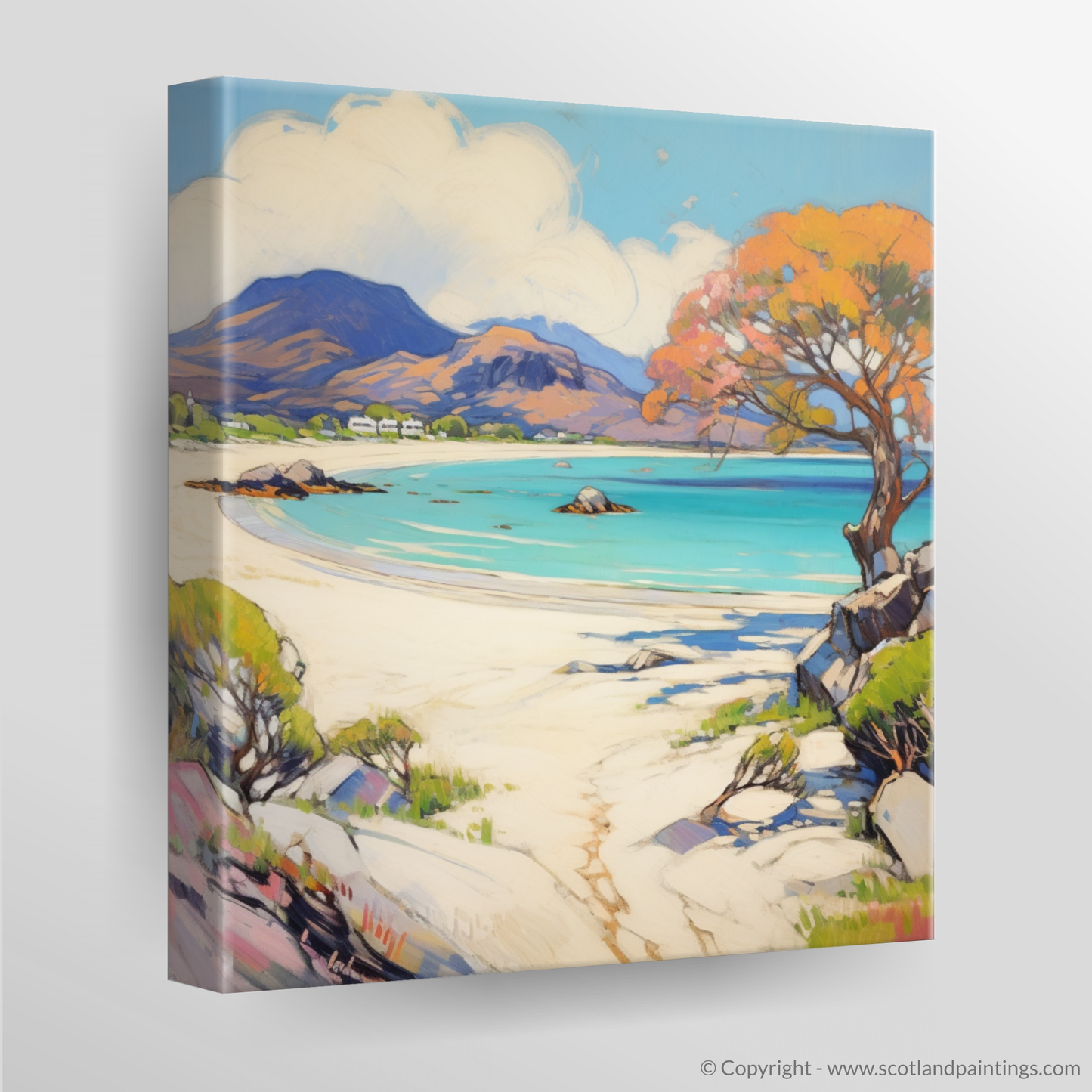 Immerse yourself in the vibrant hues and bold brushstrokes that bring the Scottish coastline to life in this enchanting piece. The Silver Sands of Morar are reimagined through the lens of Fauvism, where pure, brilliant colour is the true protagonist.