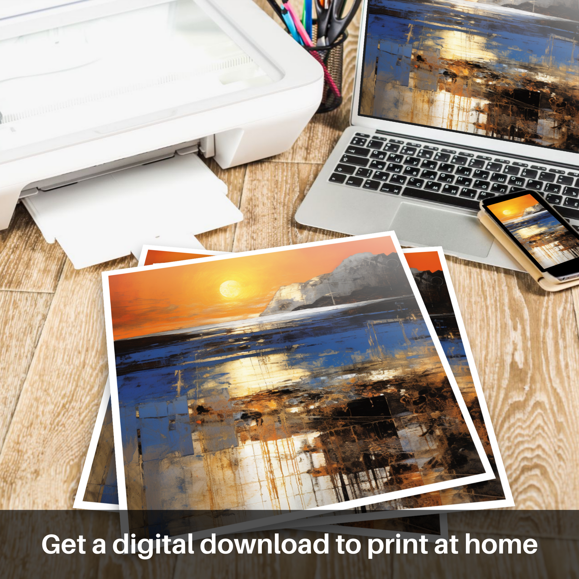 This contemporary piece infuses the viewer's space with the energy and beauty inherent in a Scottish coastal sunset, offering a modern tribute to the majestic and timeless landscape. Let your walls spark conversations of the natural world's grandeur, translated through the lens of pop art's daring vision.